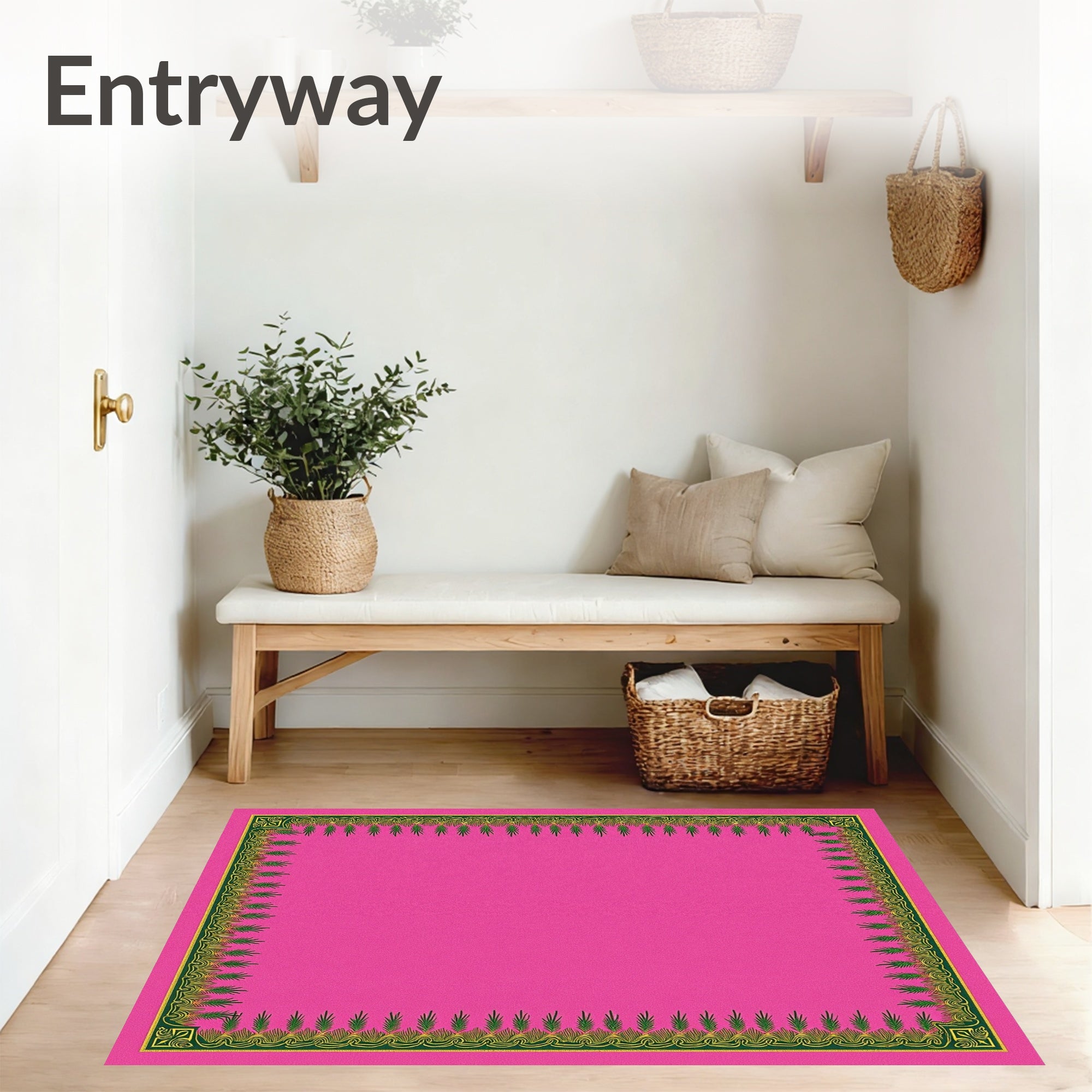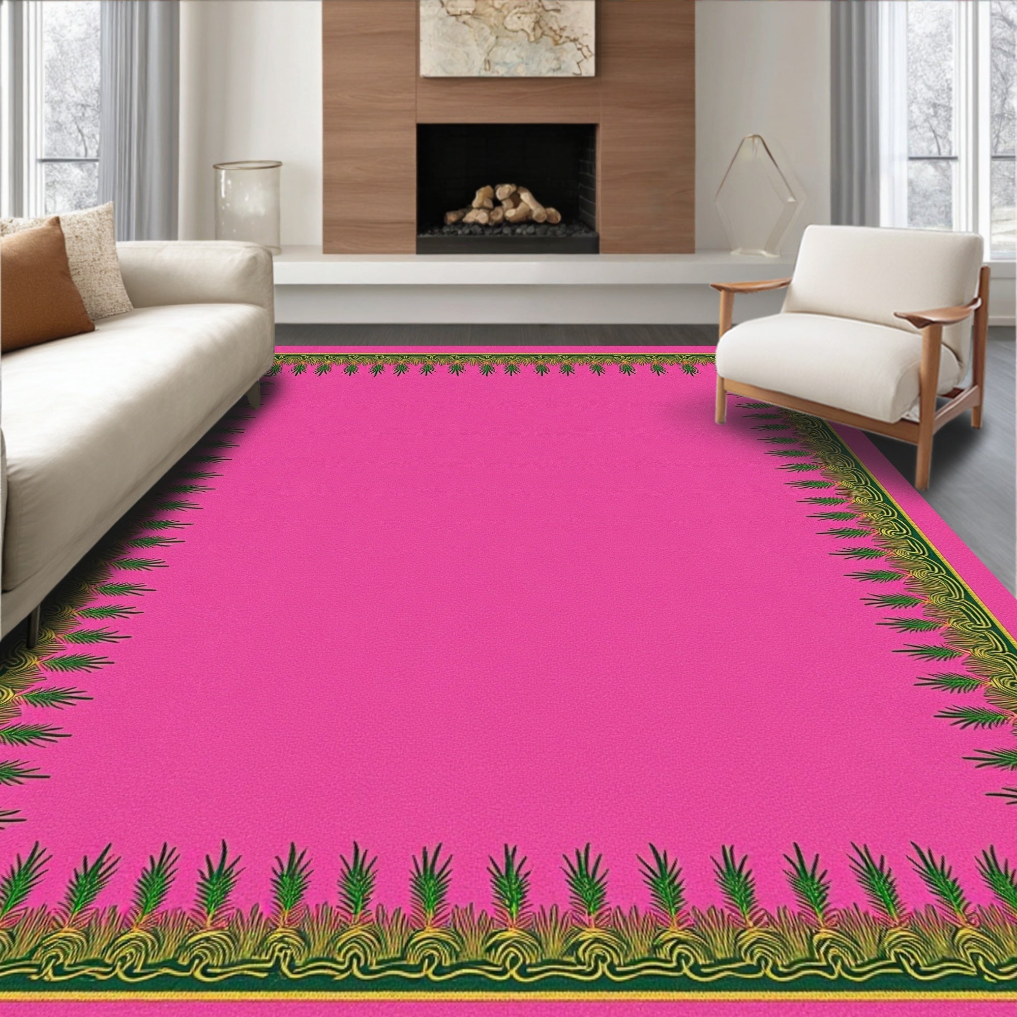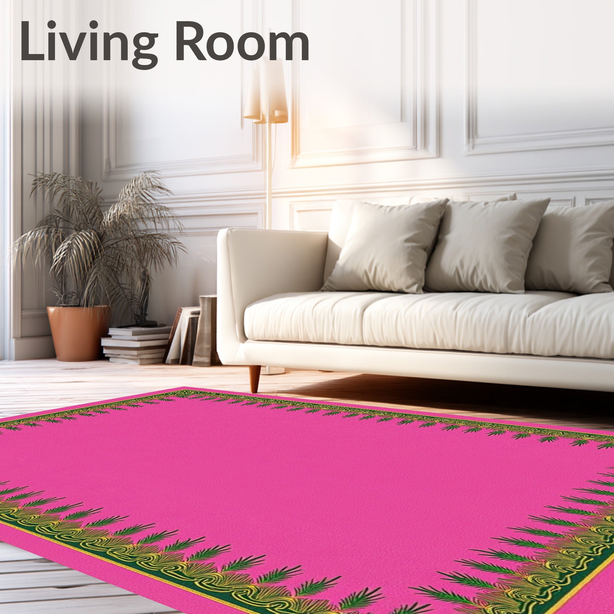 Ultra Soft Area Rug, Non Slip, Stain Resistant, Washable Area Rugs for Living Room, Bedroom, Pine Branch Motif Pile Accent with Evergreen Swirls(Pink) Overview: