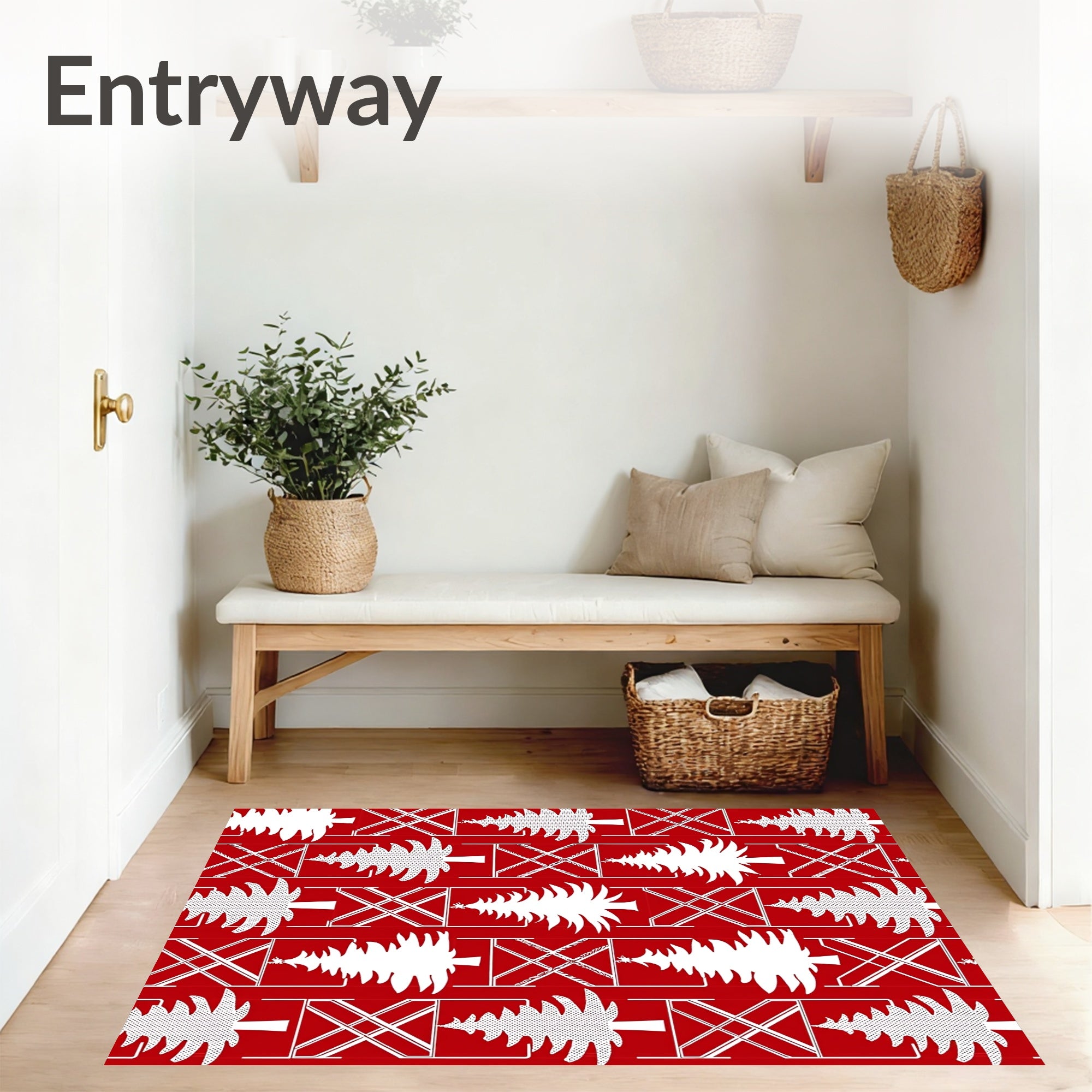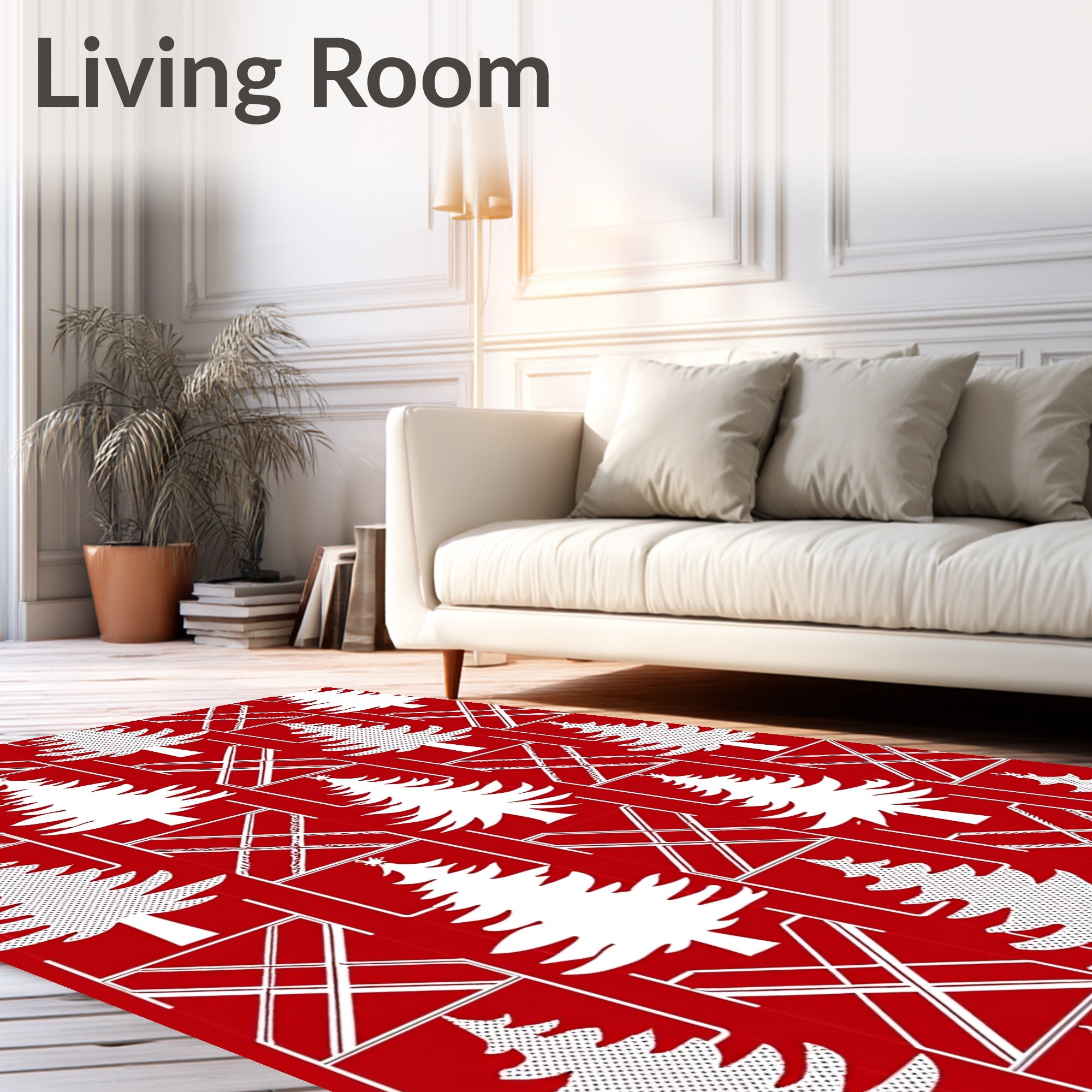 Ultra Soft Area Rug, Non Slip, Stain Resistant, Washable Area Rugs for Living Room, Bedroom, Pine Tree Interlocking Plaid Style(Red) Overview: