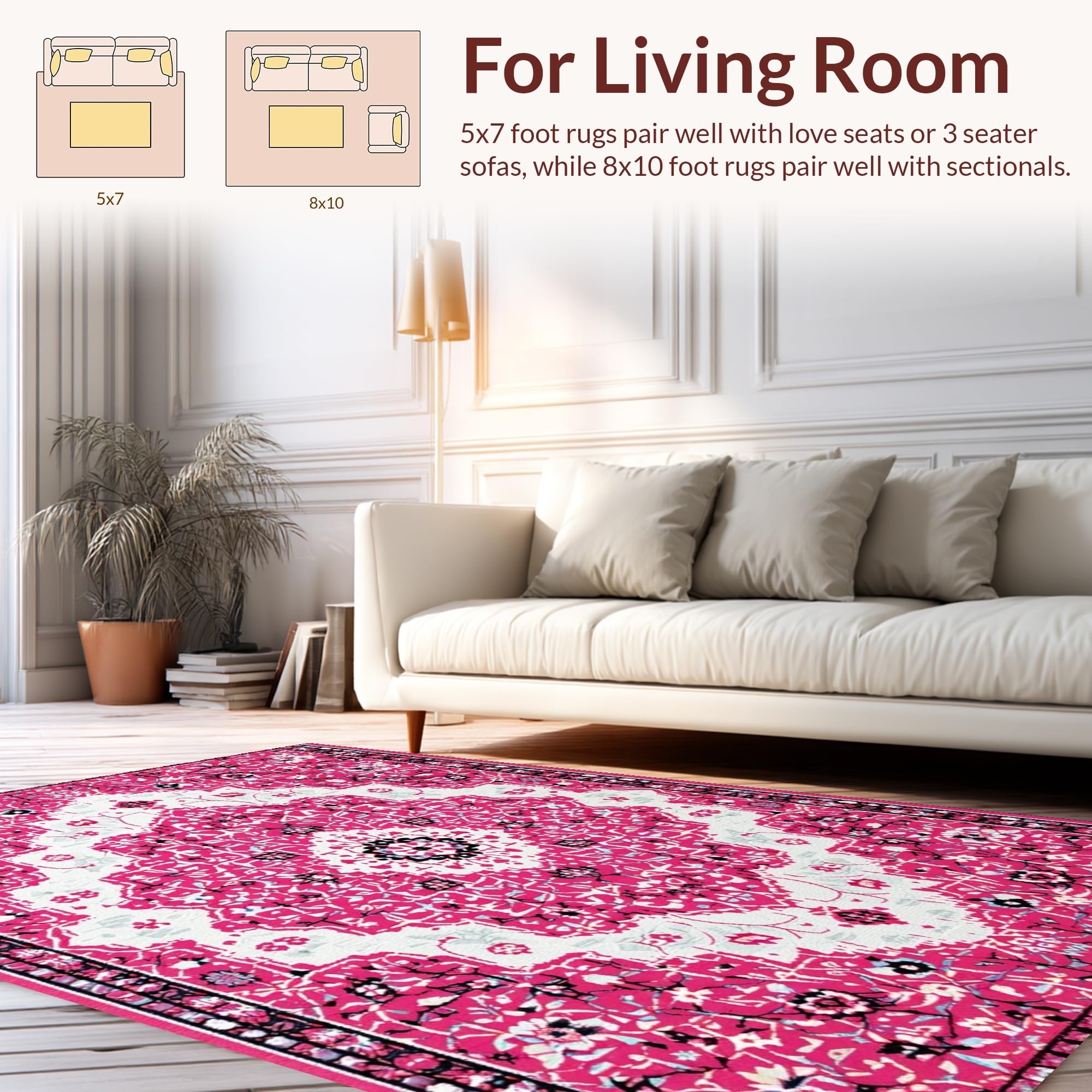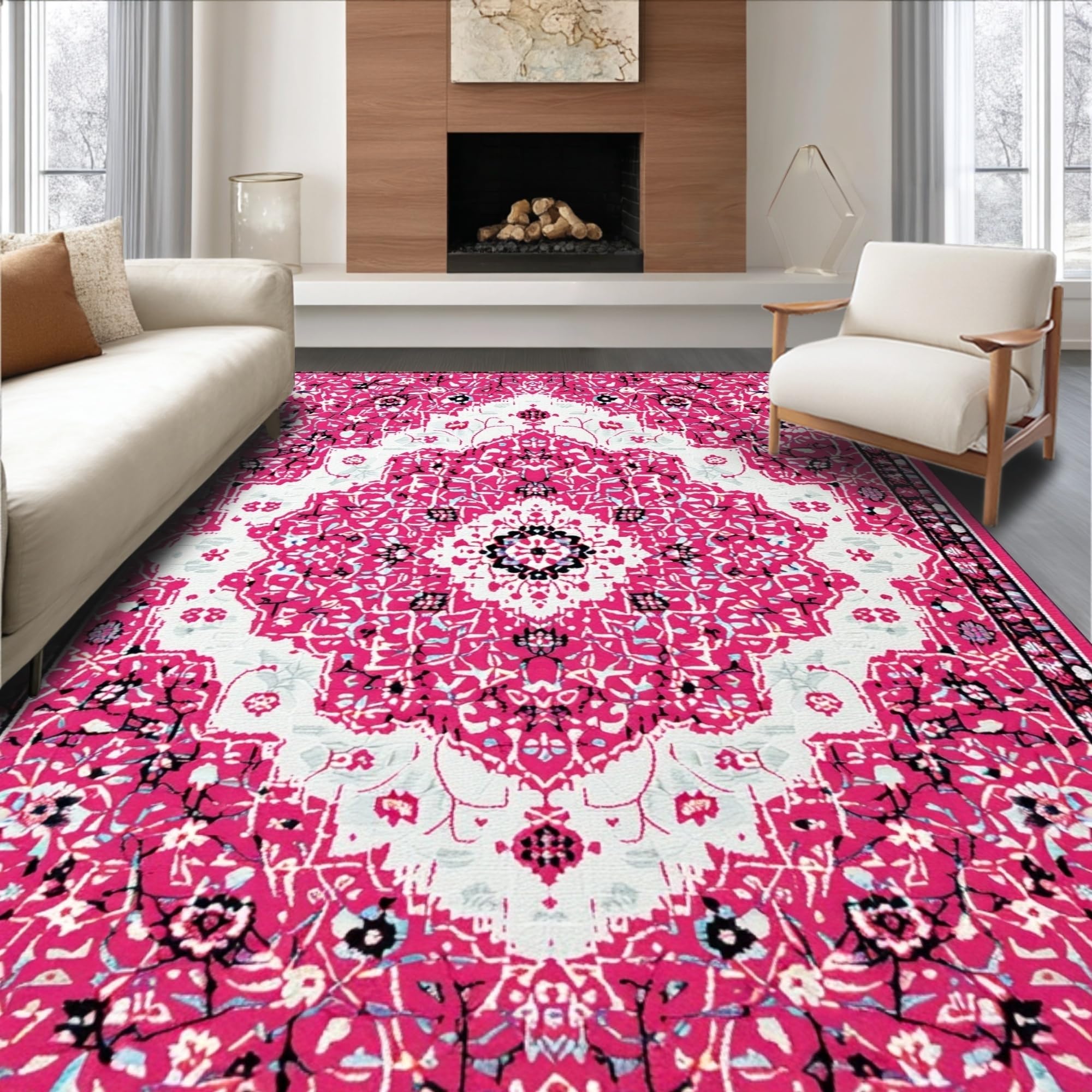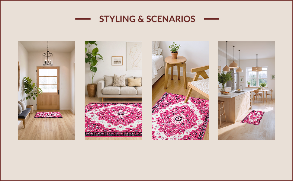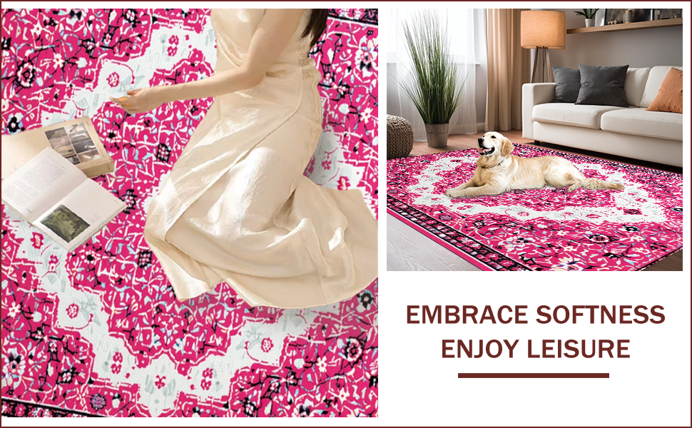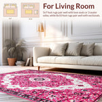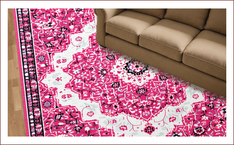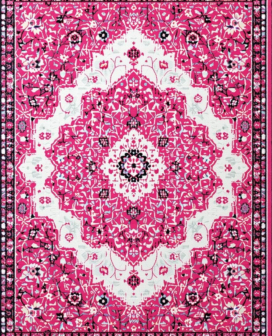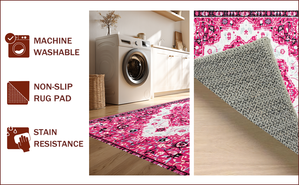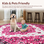 Ultra Soft Area Rug, Non Slip, Stain Resistant, Washable Area Rugs for Living Room, Bedroom, Pink Boho Vintage Playroom Carpet with Non-Slip Design(Pink) Overview: