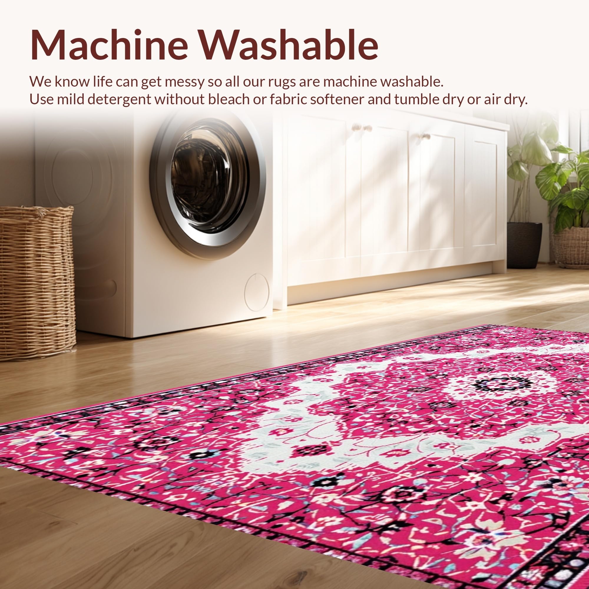 - Machine Washable: Our rugs can be easily thrown in the wash machine.
