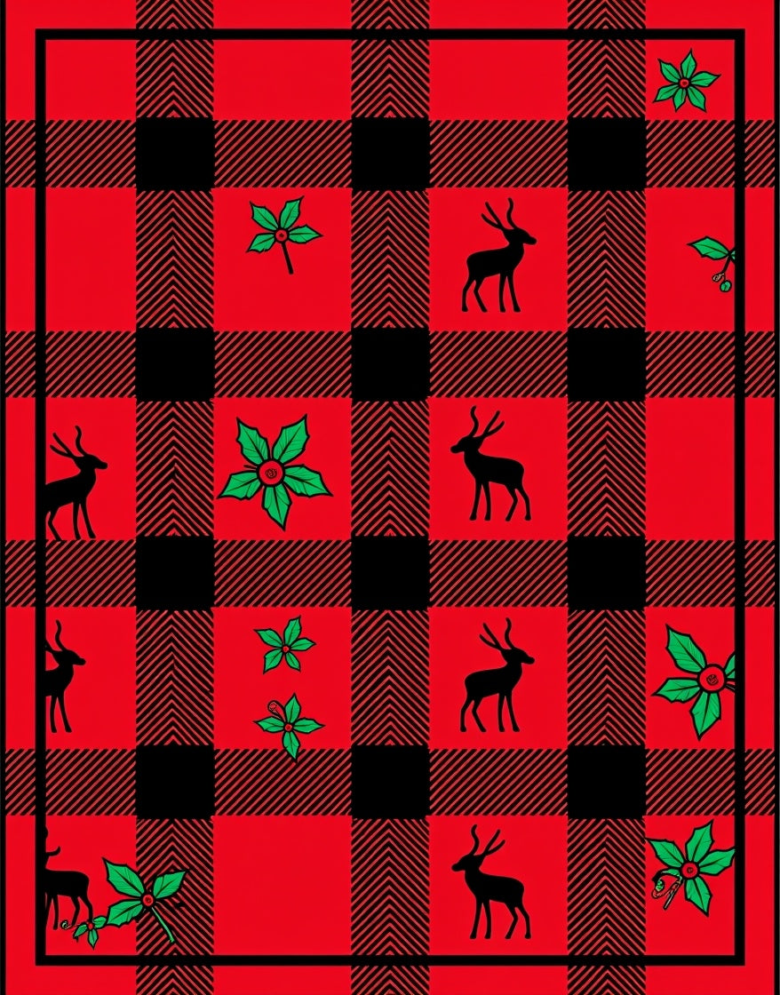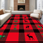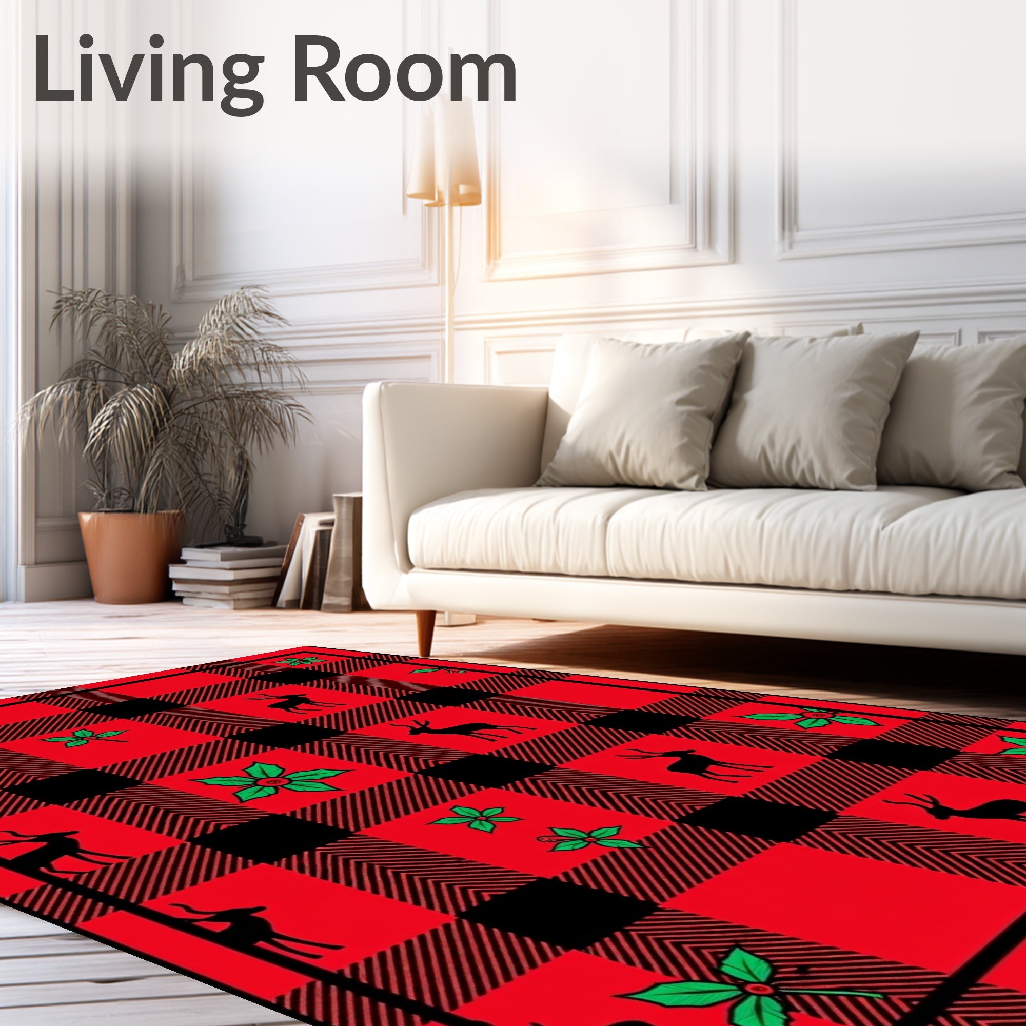 Ultra Soft Area Rug, Non Slip, Stain Resistant, Washable Area Rugs for Living Room, Bedroom, Plaid Reindeer with Holly Leaf Embellishments(Red) Overview: