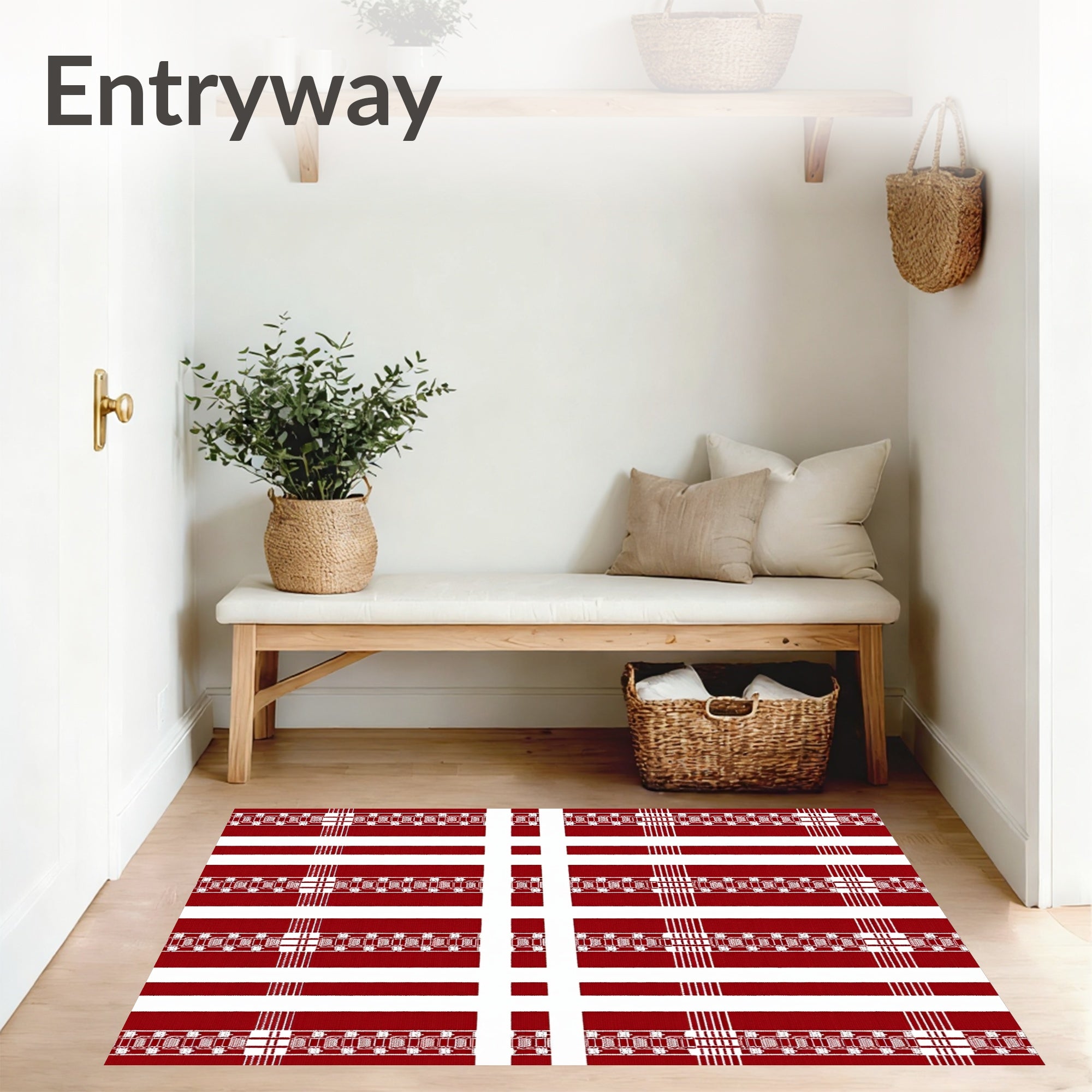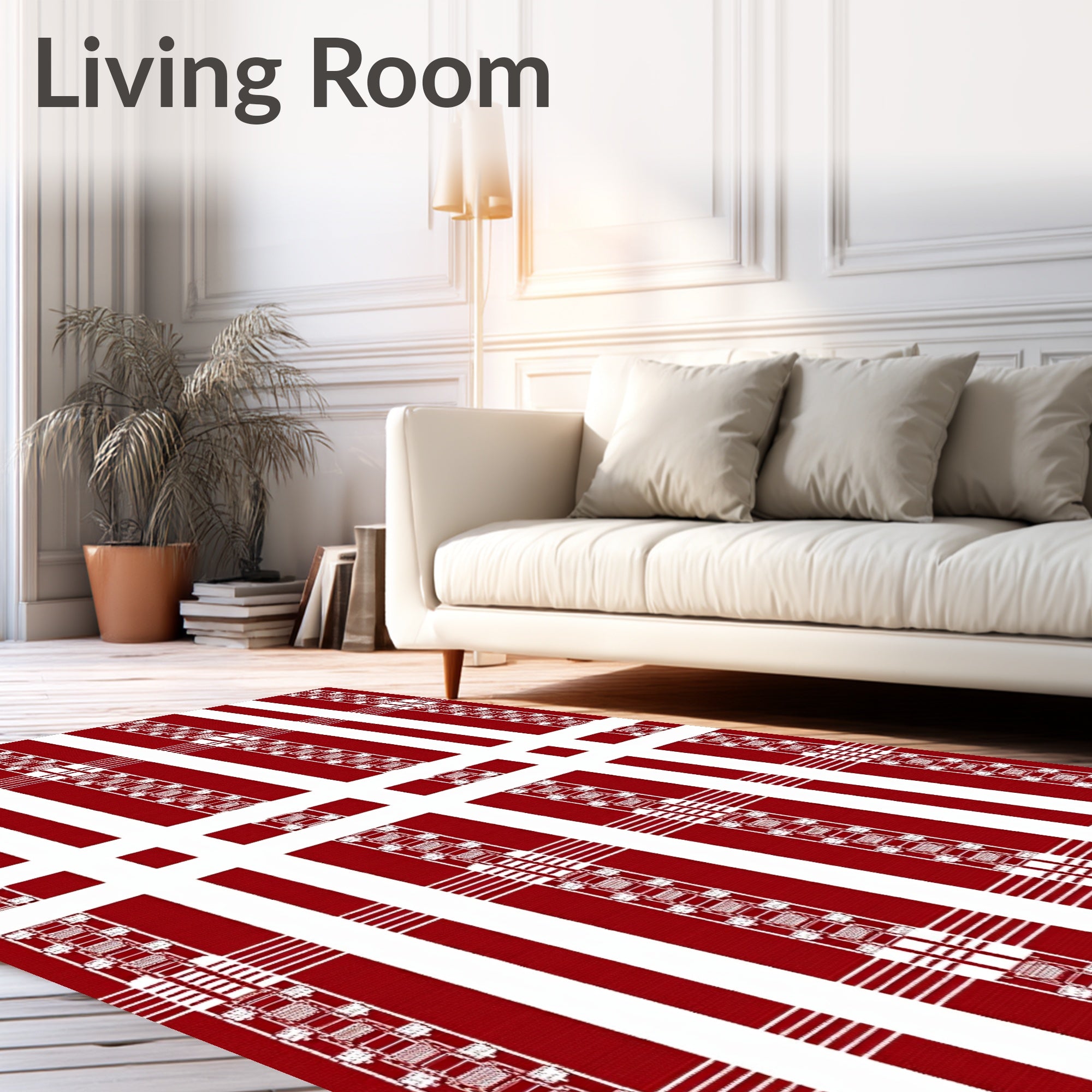 Ultra Soft Area Rug, Non Slip, Stain Resistant, Washable Area Rugs for Living Room, Bedroom, Plaid with Interwoven Evergreen and Berry Sprig Details(Red) Overview: