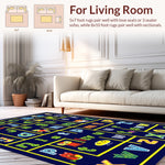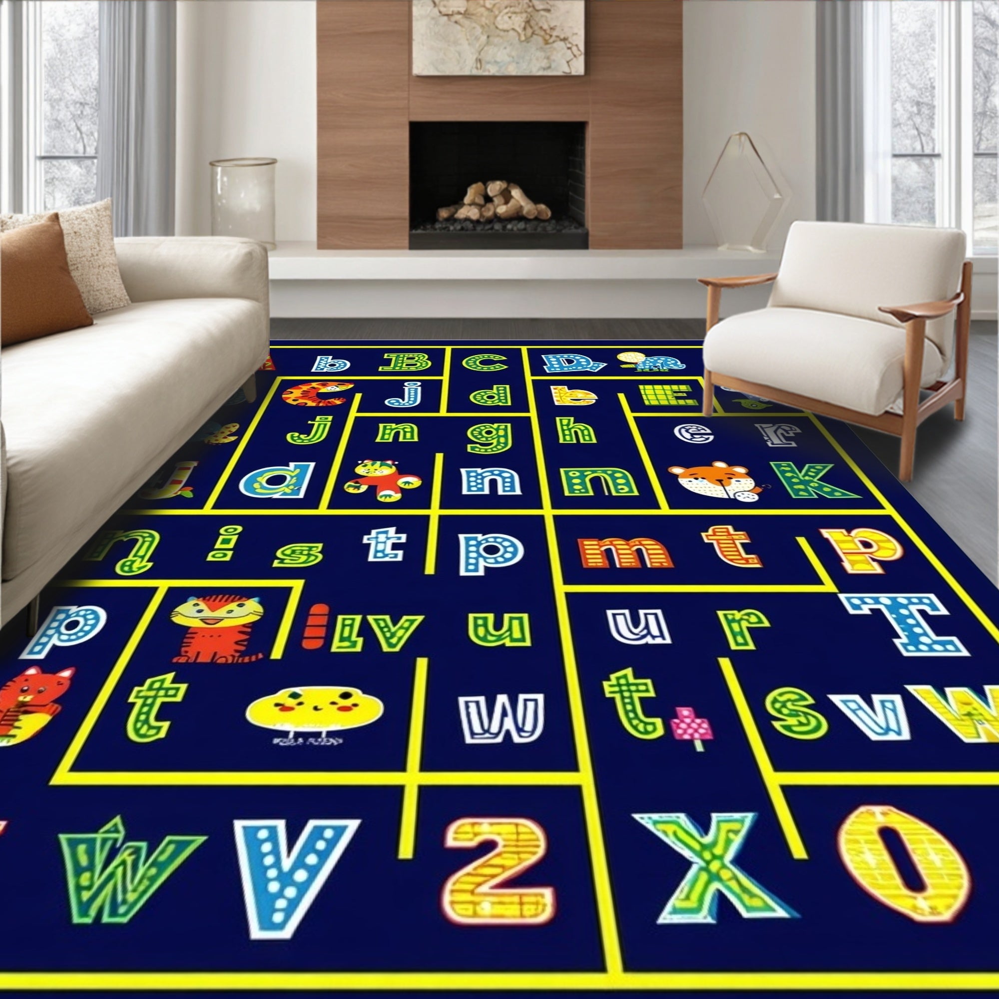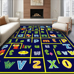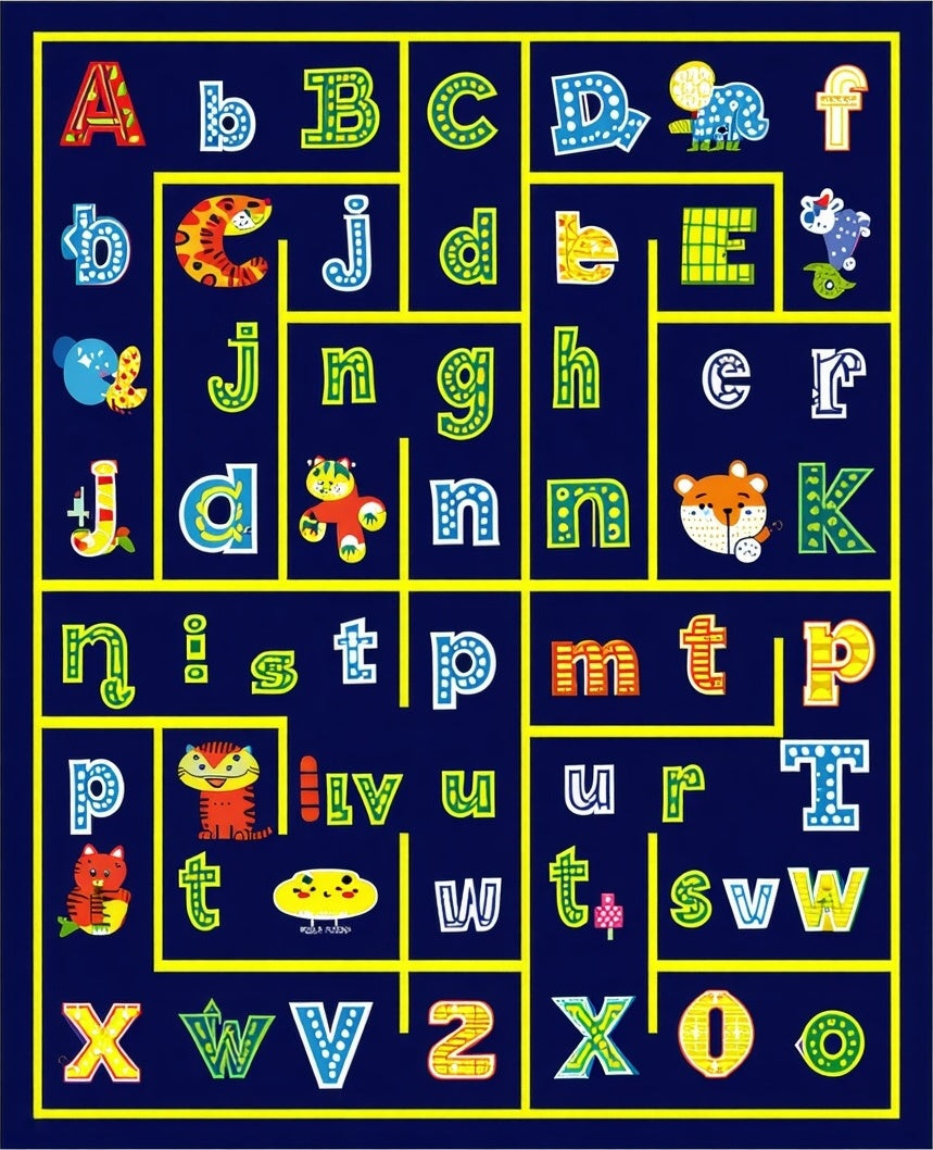 Flatwoven High Traffic Area Rug, Playful Alphabetic Circular Design, Non Slip, Stain Resistant, Washable Area Rugs for Living Room, Bedroom (Blue) Overview: