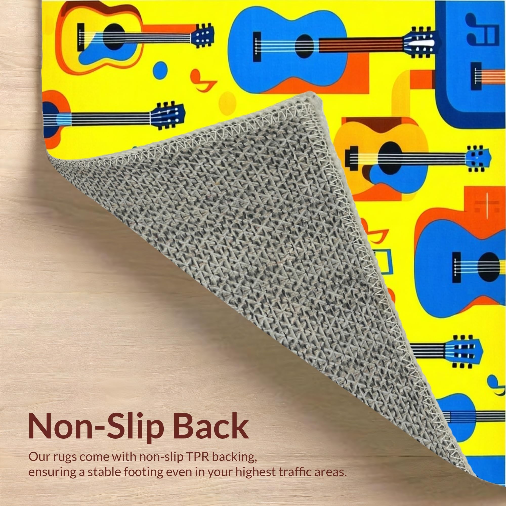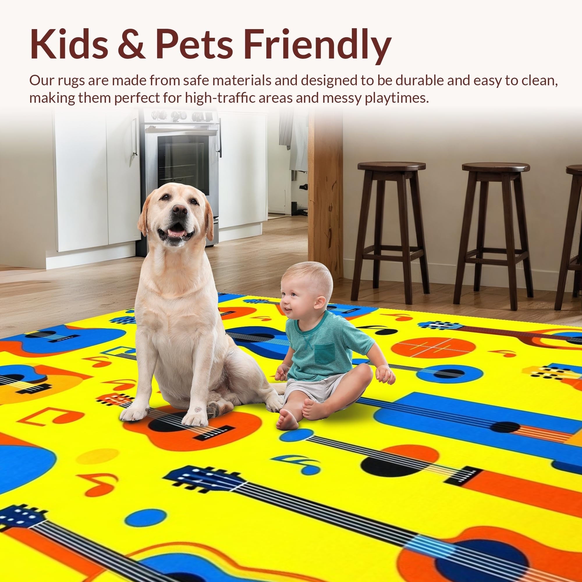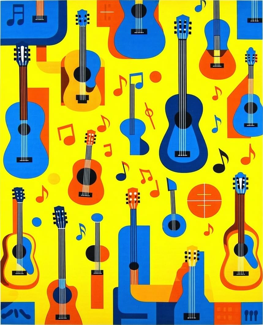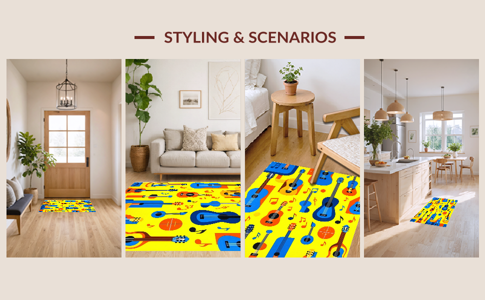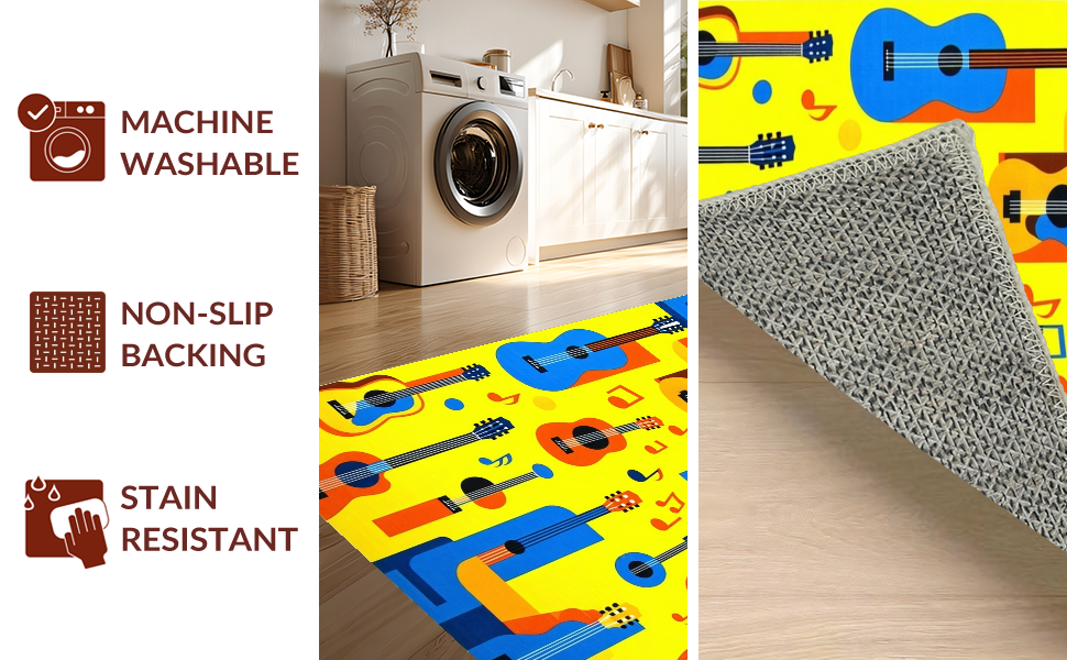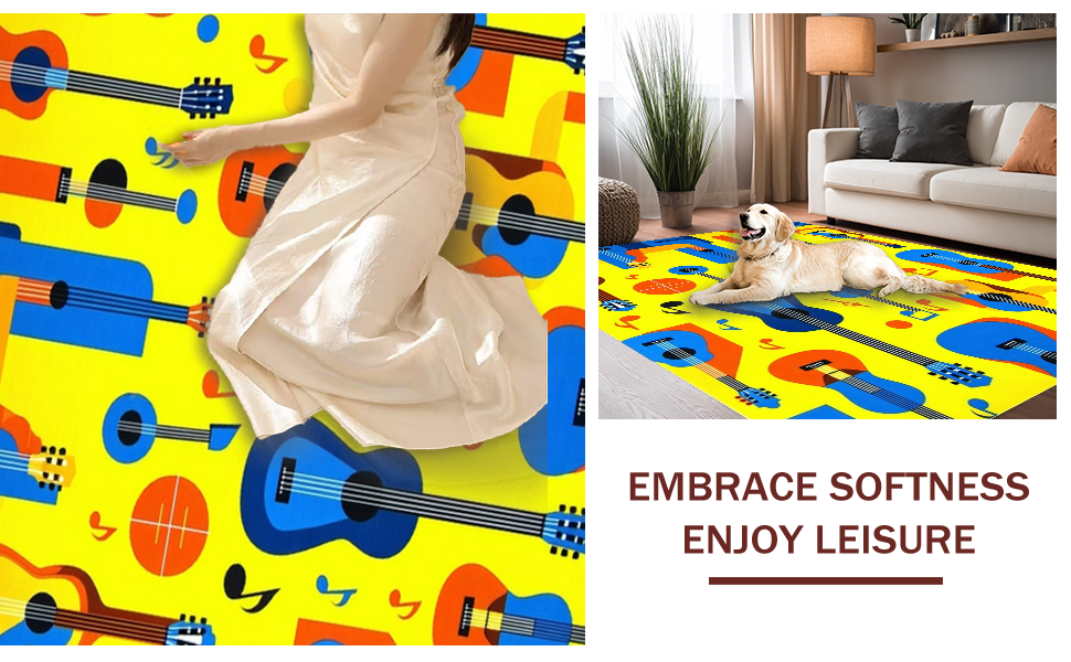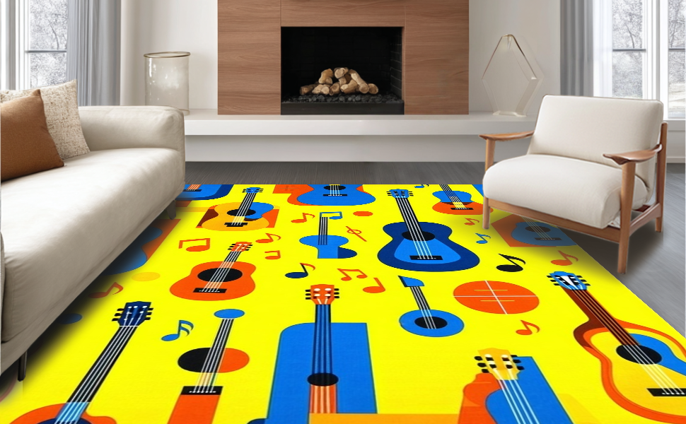 Ultra Soft Area Rug, Non Slip, Stain Resistant, Washable Area Rugs for Living Room, Bedroom, Playful Artistic Melody Design(Yellow) Overview: