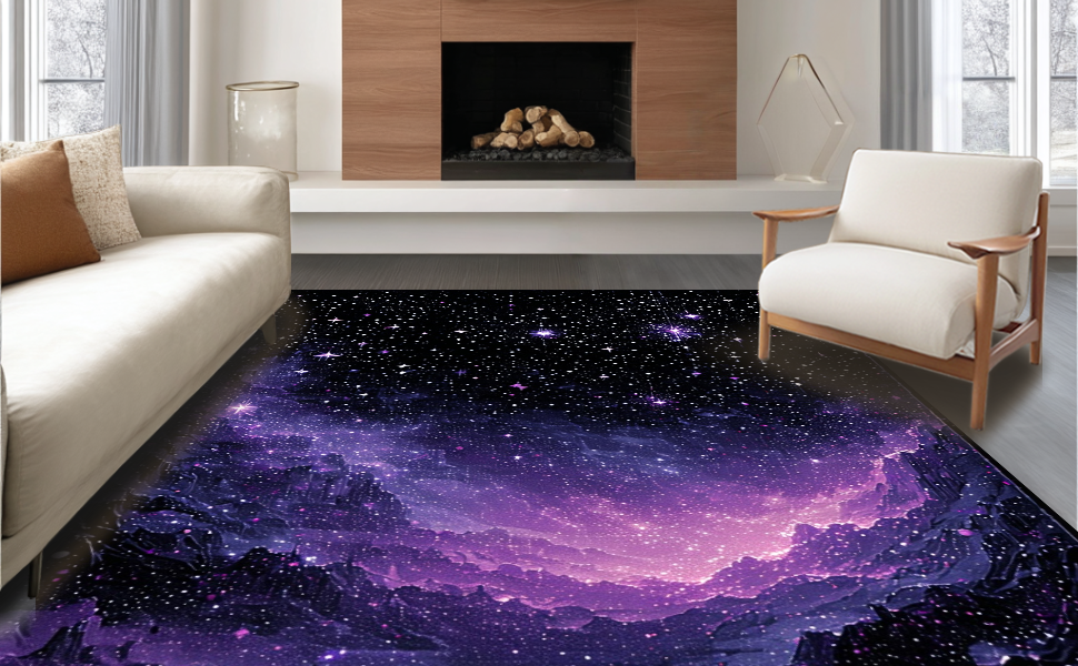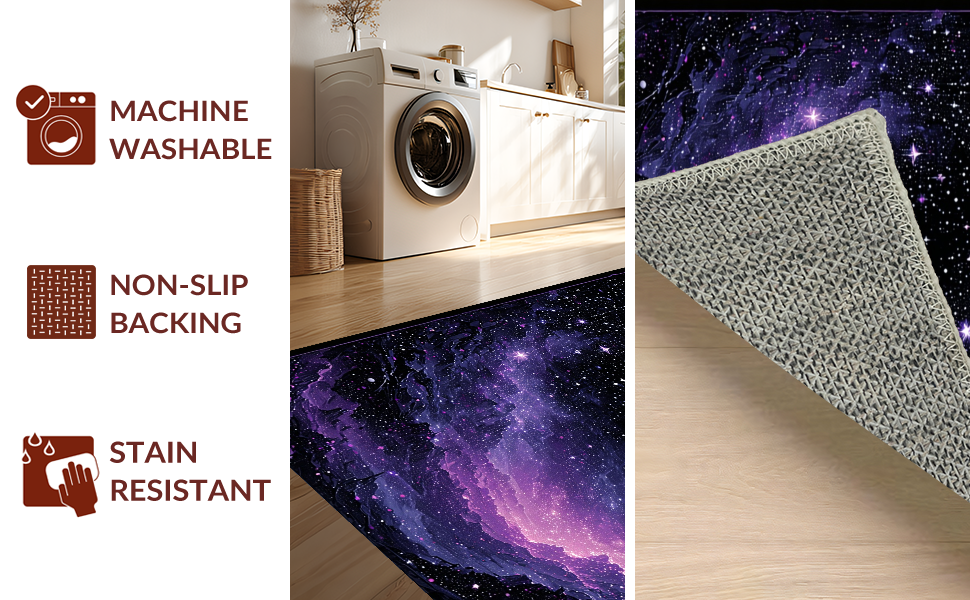 Ultra Soft Area Rug, Non Slip, Stain Resistant, Washable Area Rugs for Living Room, Bedroom, Playful Astronaut Adventure Theme(Purple) Overview: