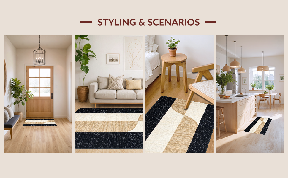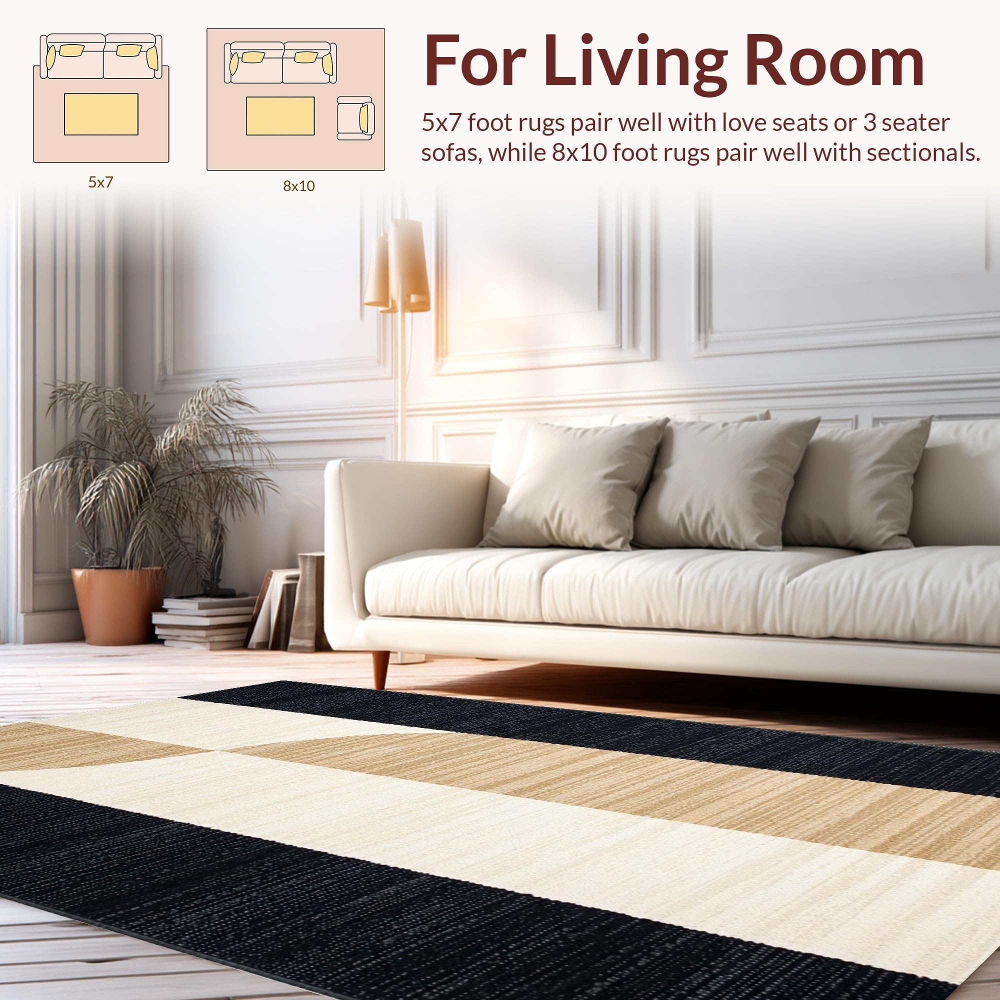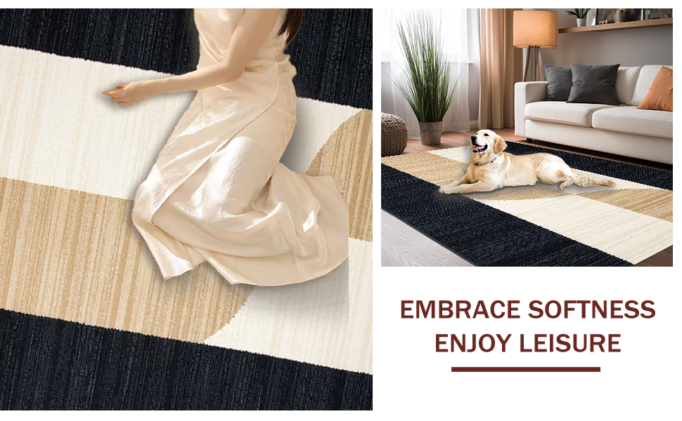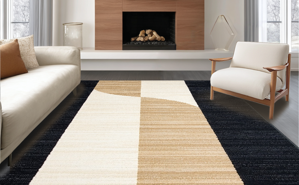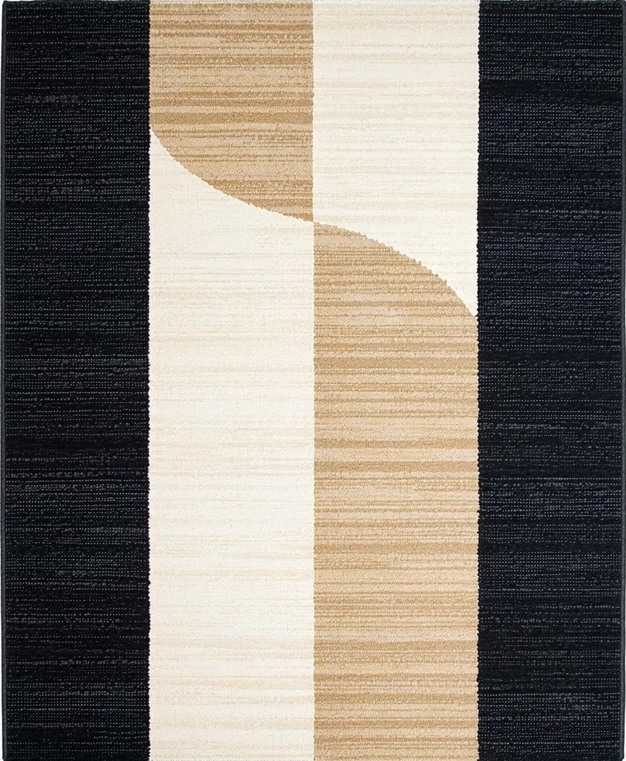 Ultra Soft Area Rug, Non Slip, Stain Resistant, Washable Area Rugs for Living Room, Bedroom, Playful Black Tan Abstract Composition(Beige) Overview: