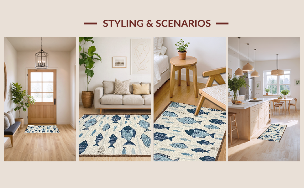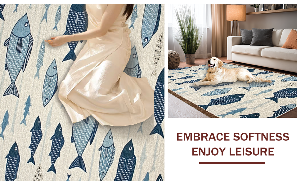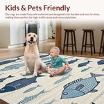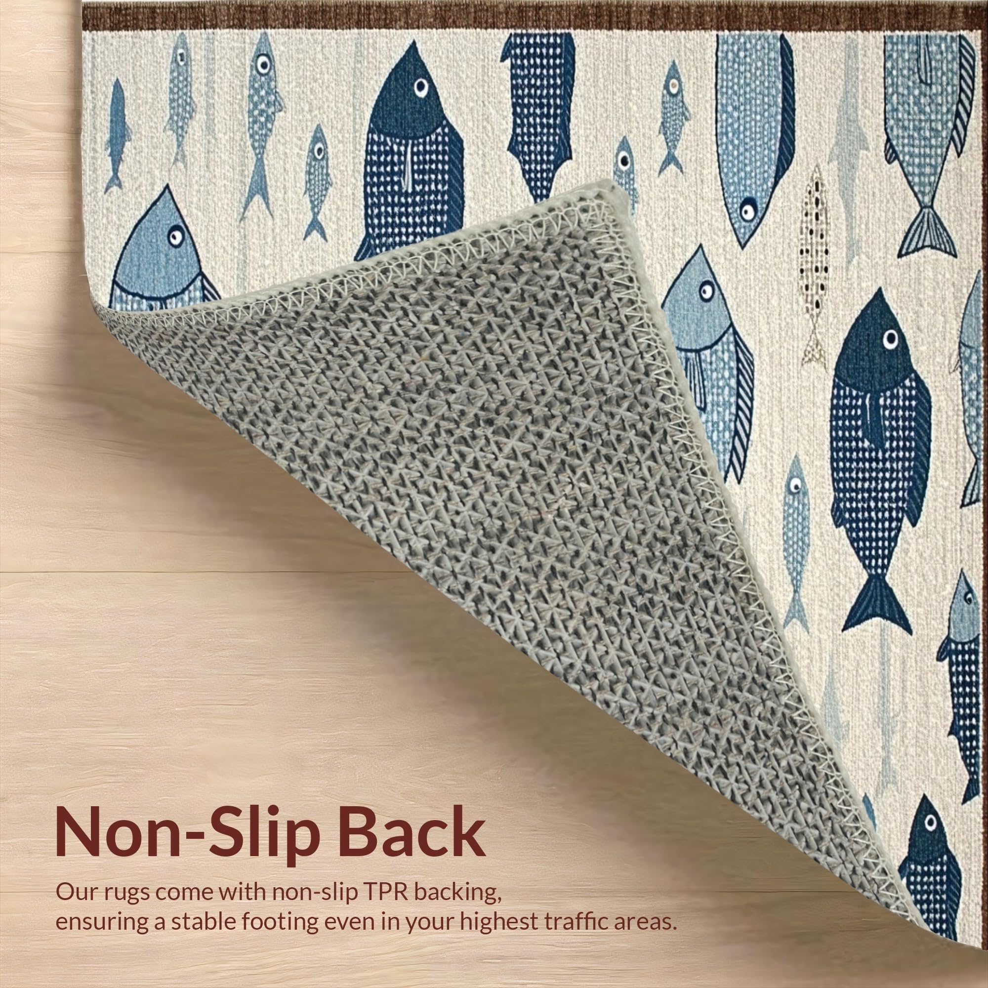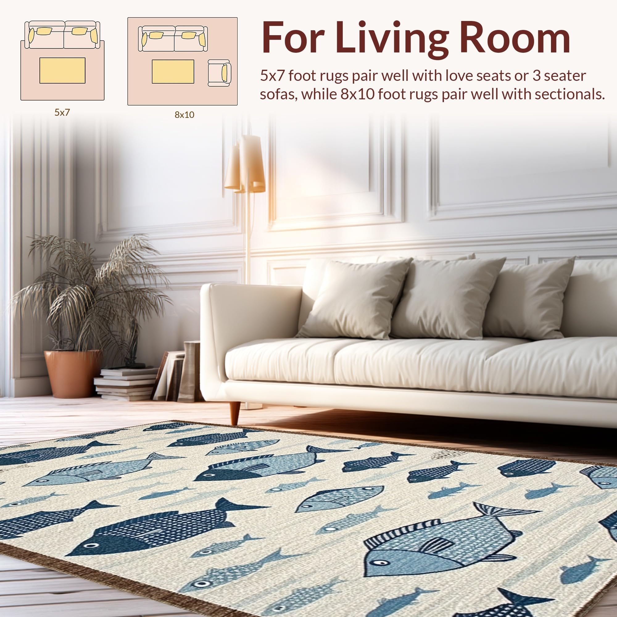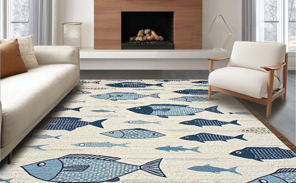 Ultra Soft Area Rug, Non Slip, Stain Resistant, Washable Area Rugs for Living Room, Bedroom, Playful Blue and Brown Design(Beige) Overview: