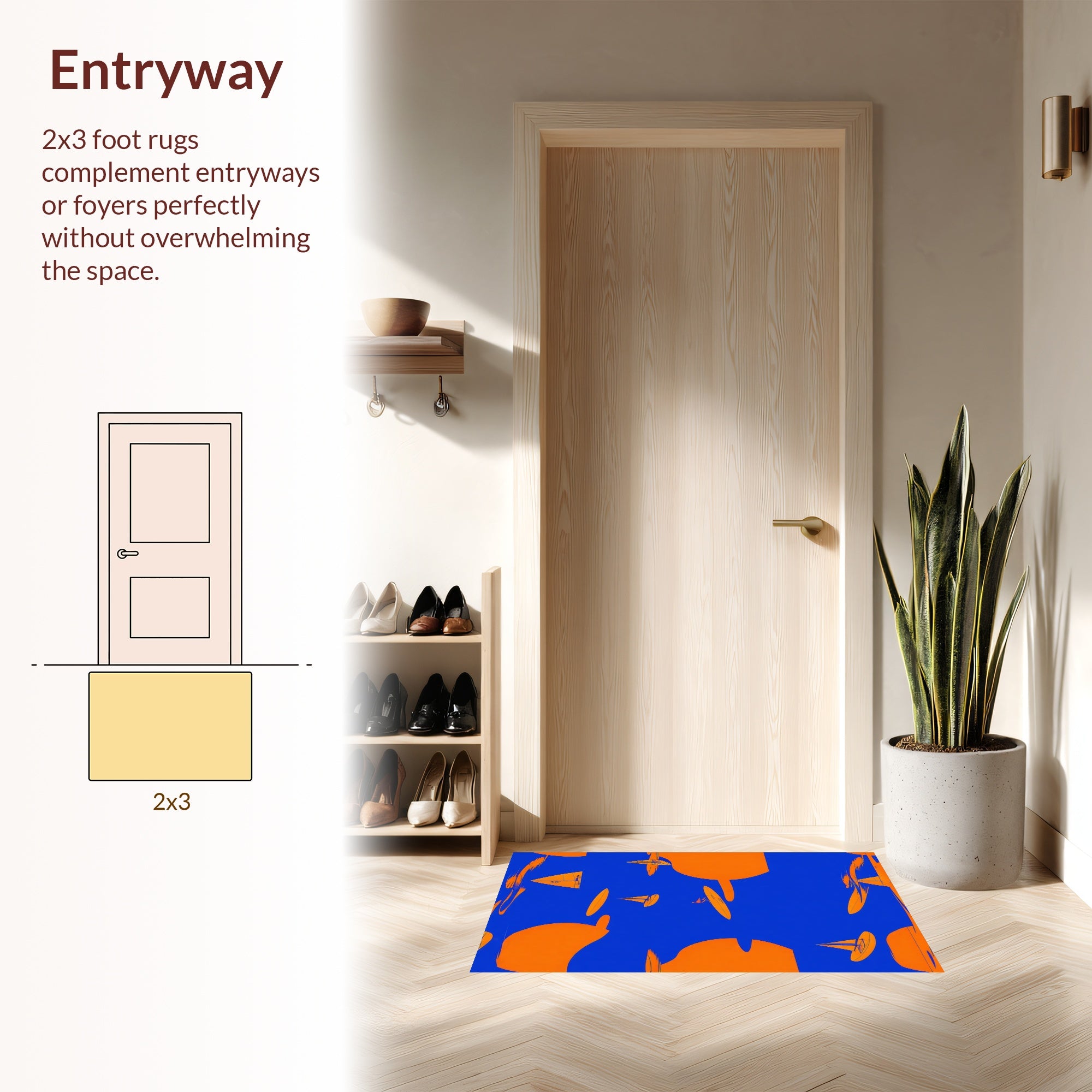 Flatwoven High Traffic Area Rug, Playful Bright Tiled Composition, Non Slip, Stain Resistant, Washable Area Rugs for Living Room, Bedroom (Blue) Overview: