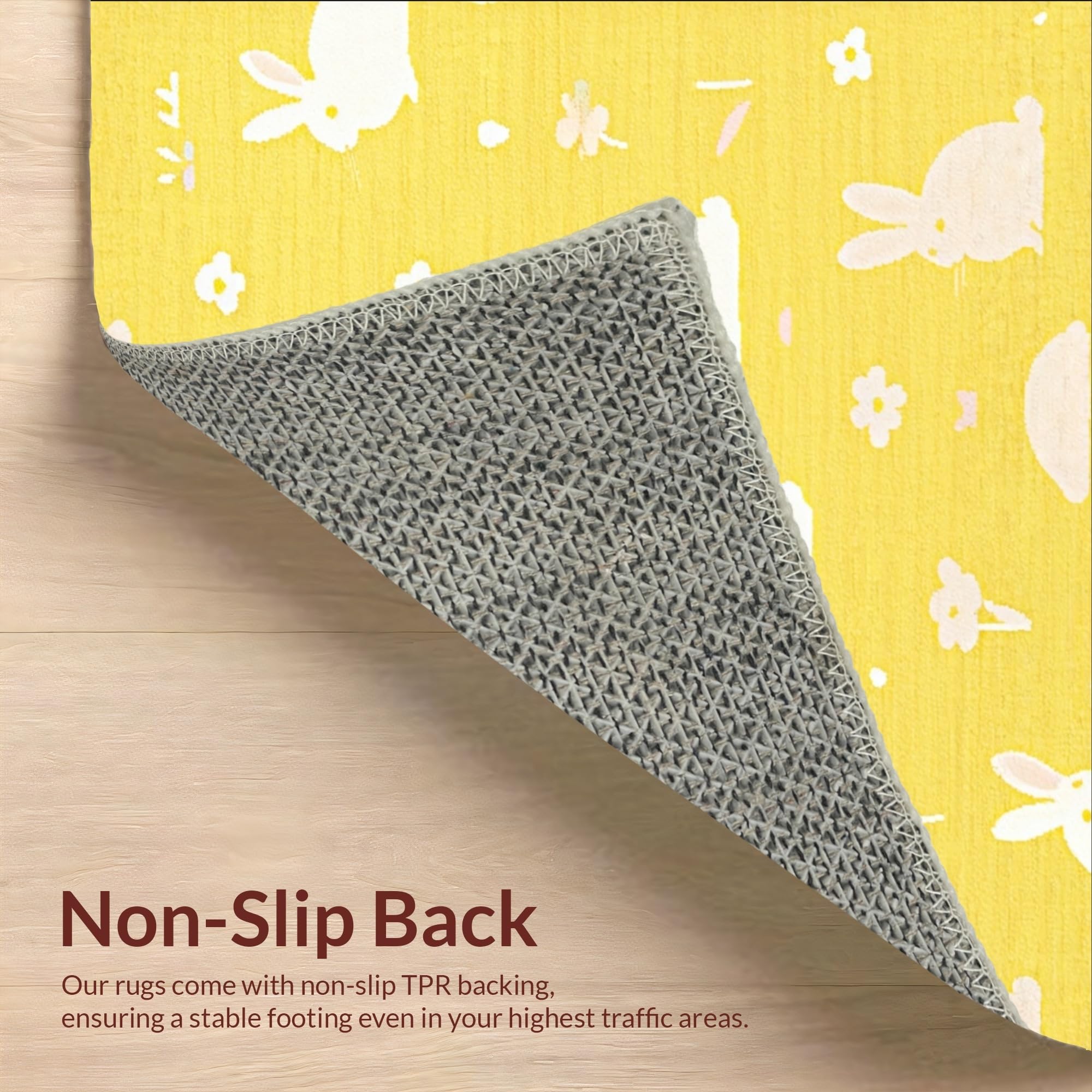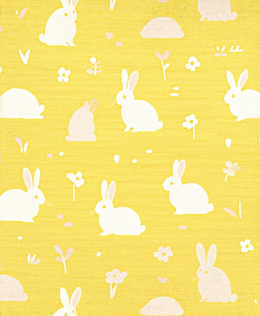 Ultra Soft Area Rug, Non Slip, Stain Resistant, Washable Area Rugs for Living Room, Bedroom, Playful Bunny Print for Small Animal Retreat(Yellow) Overview: