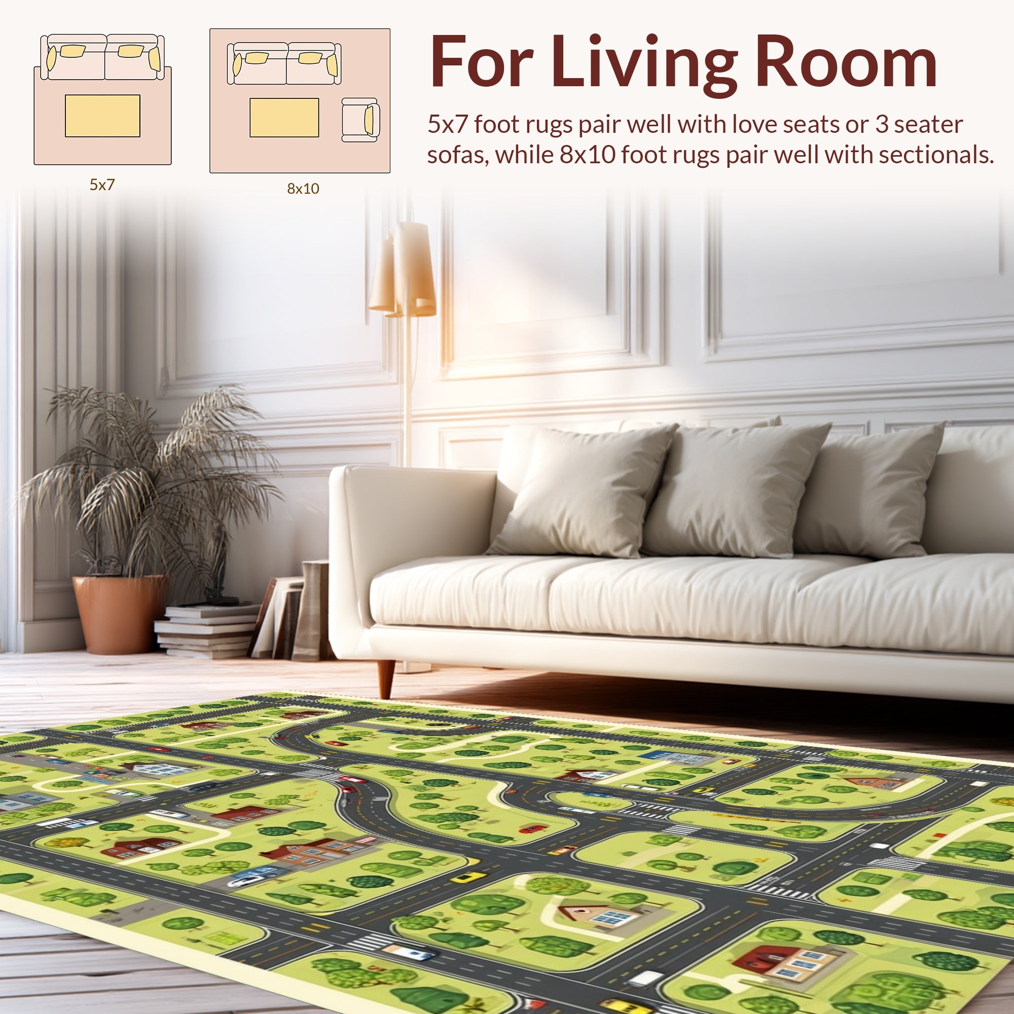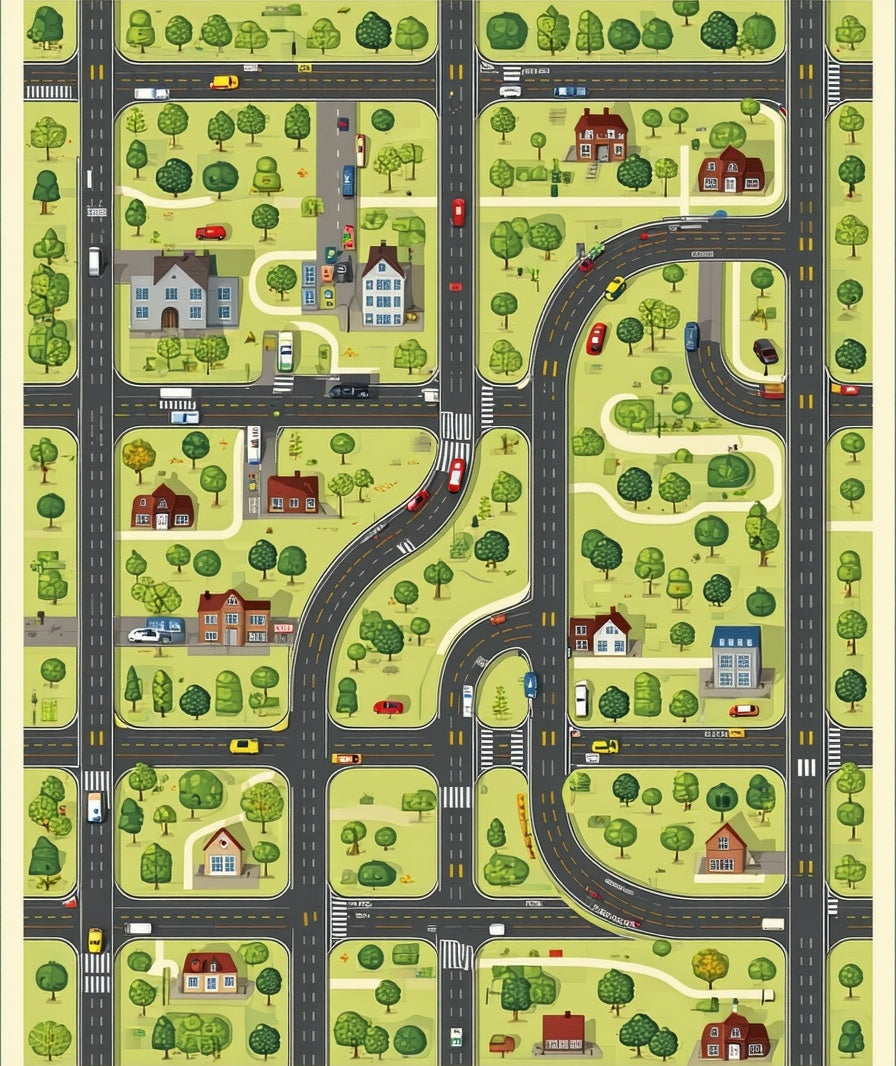 Flatwoven High Traffic Area Rug, Playful Friendly Roadway Theme, Non Slip, Stain Resistant, Washable Area Rugs for Living Room, Bedroom (Green) Overview:
