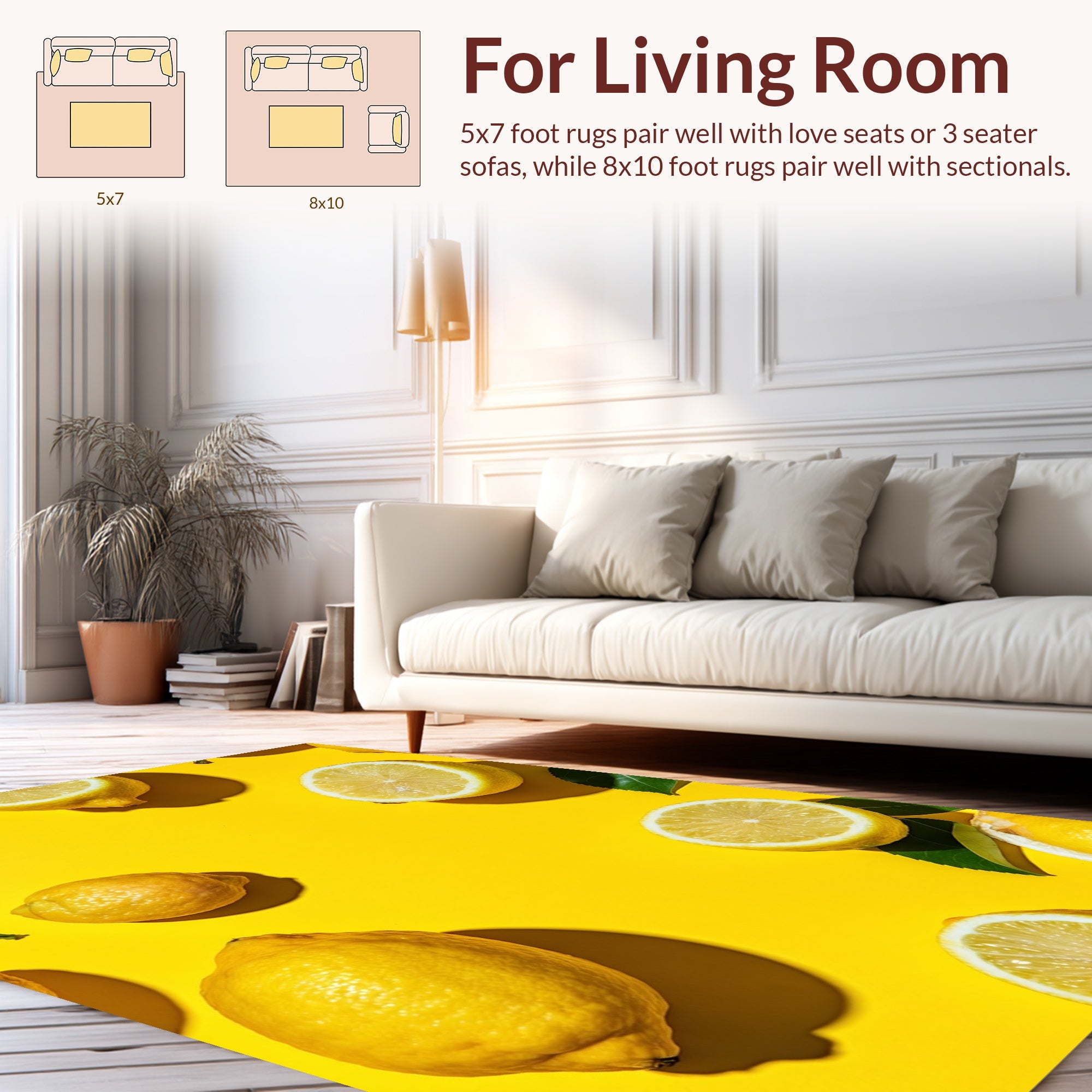 Flatwoven High Traffic Area Rug, Playful Citrus Color Splash, Non Slip, Stain Resistant, Washable Area Rugs for Living Room, Bedroom (Yellow) Overview: