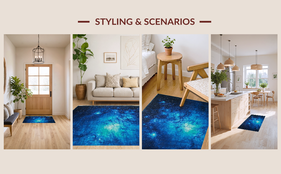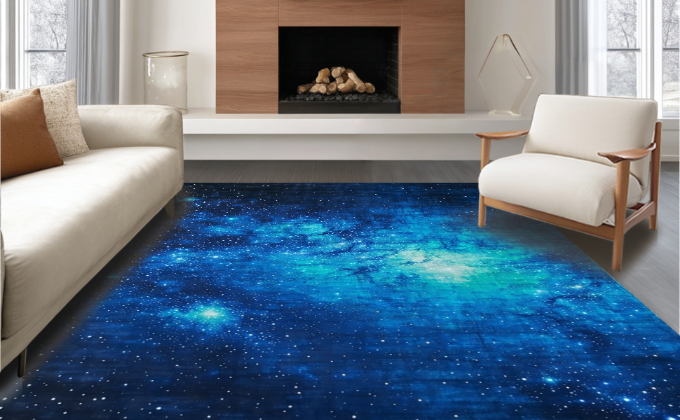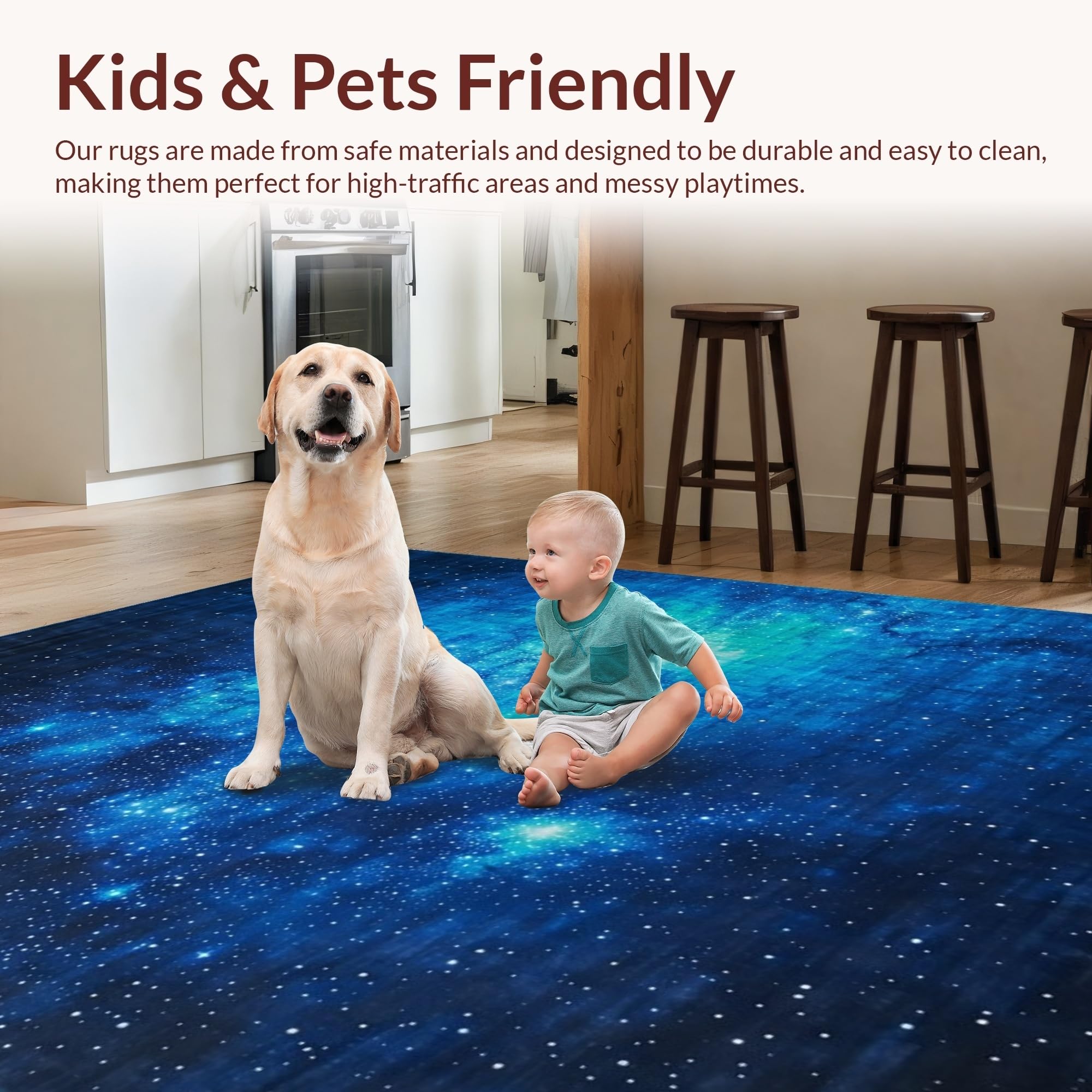 Ultra Soft Area Rug, Non Slip, Stain Resistant, Washable Area Rugs for Living Room, Bedroom, Playful Colorful Dinosaur Universe Theme(Blue) Overview: