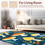 Flatwoven High Traffic Area Rug, Playful Colorful Flora Design, Non Slip, Stain Resistant, Washable Area Rugs for Living Room, Bedroom (Blue) Overview: