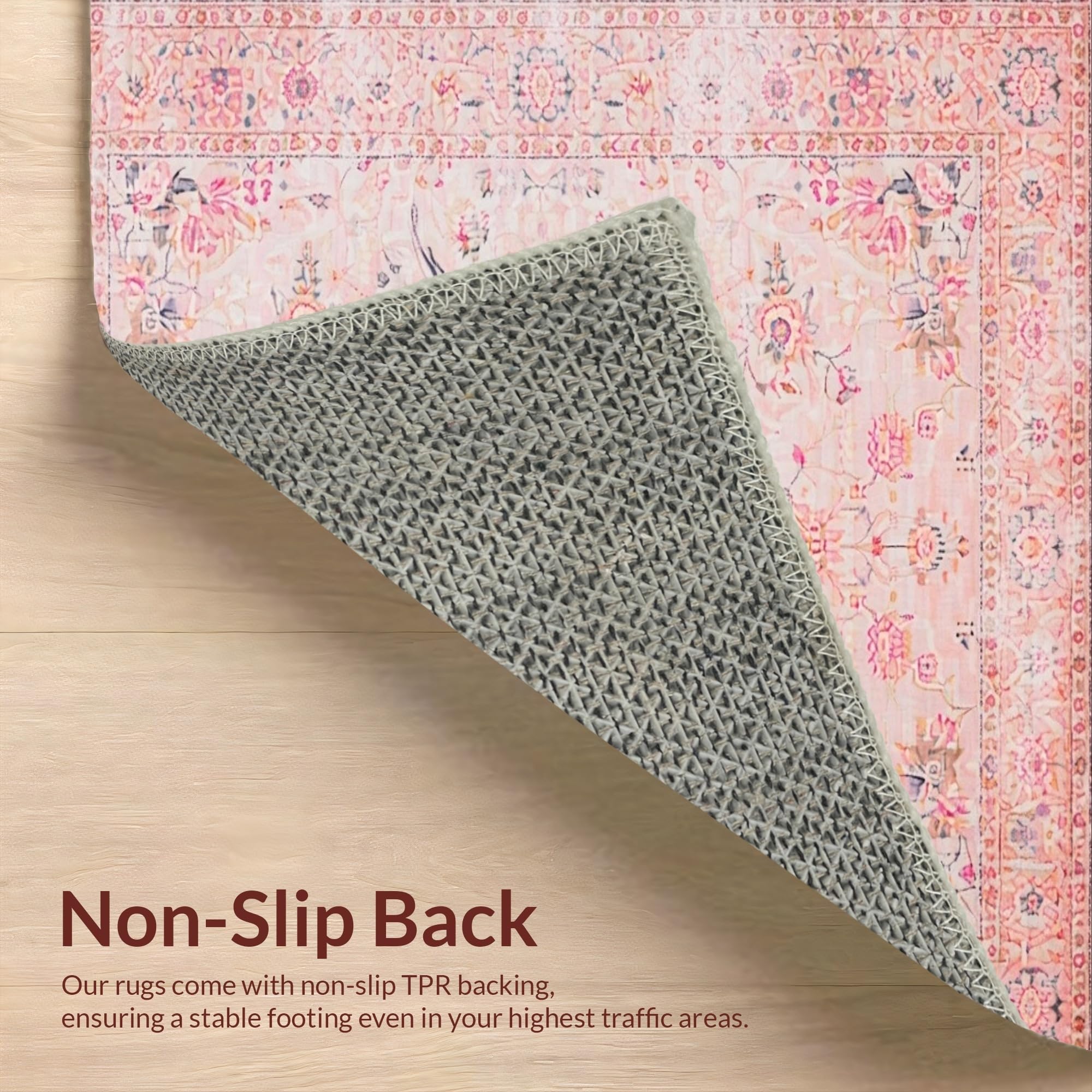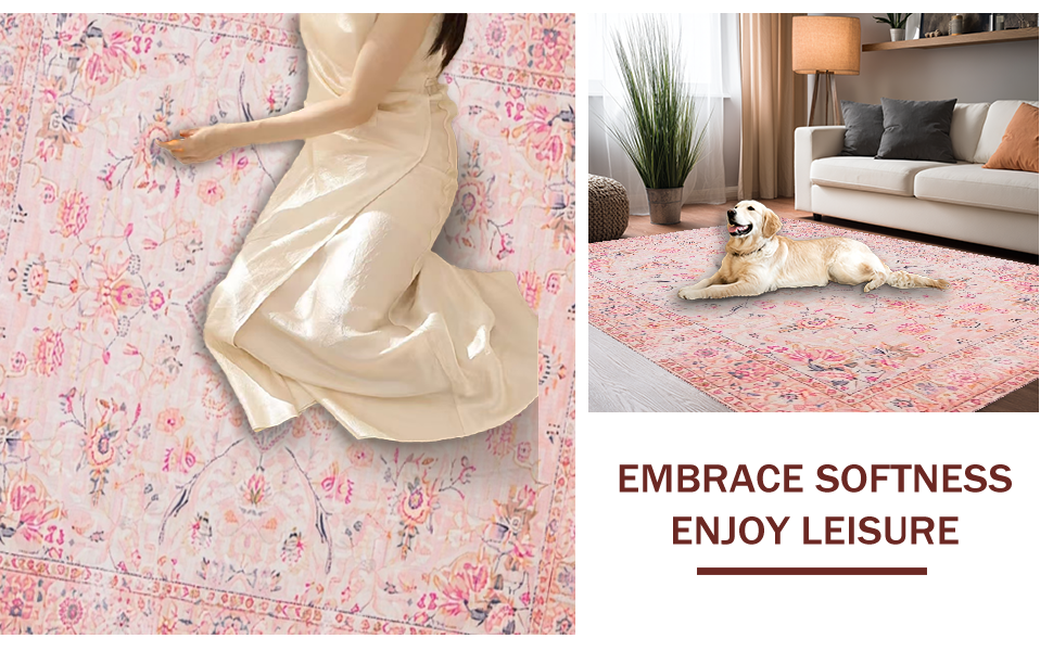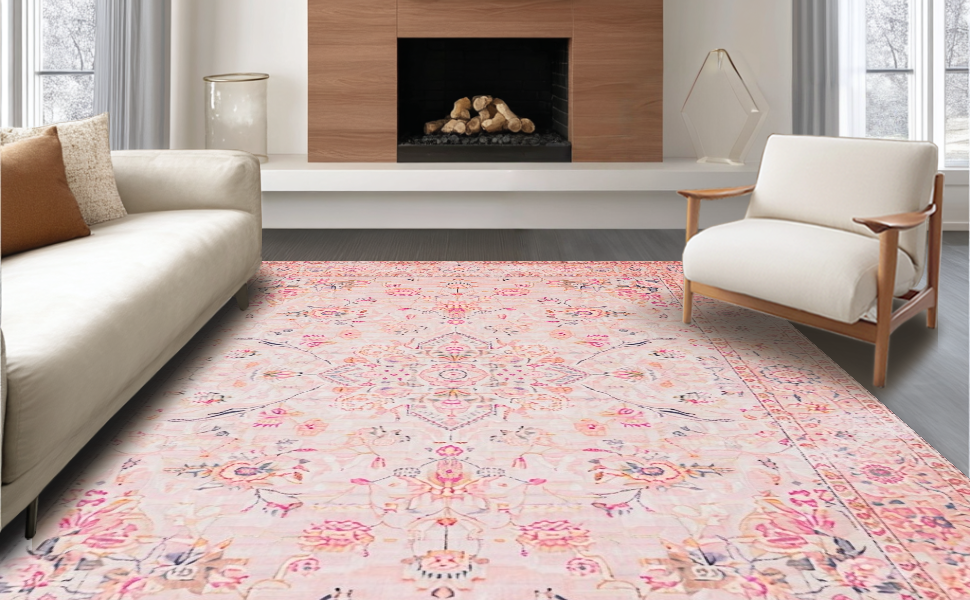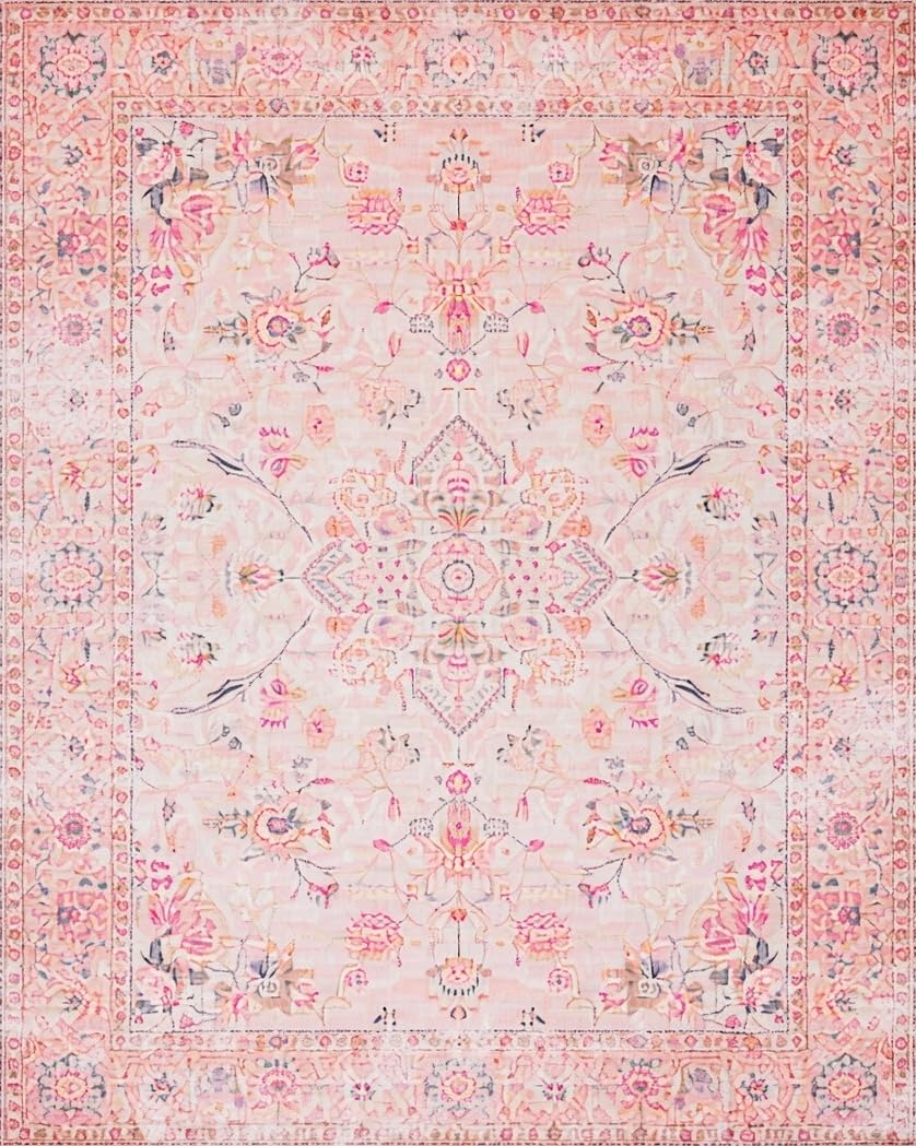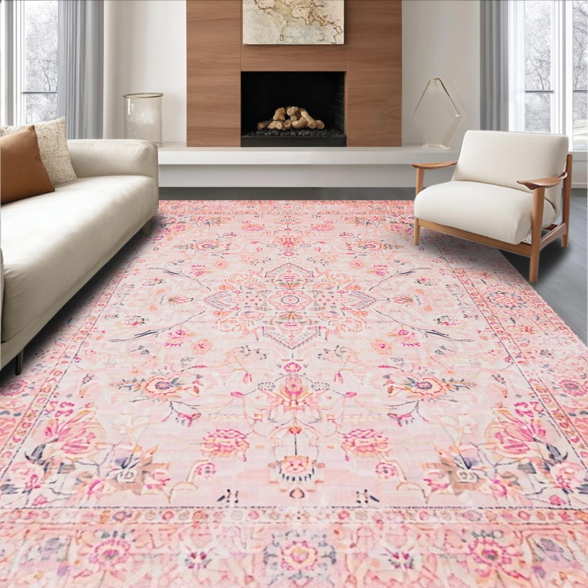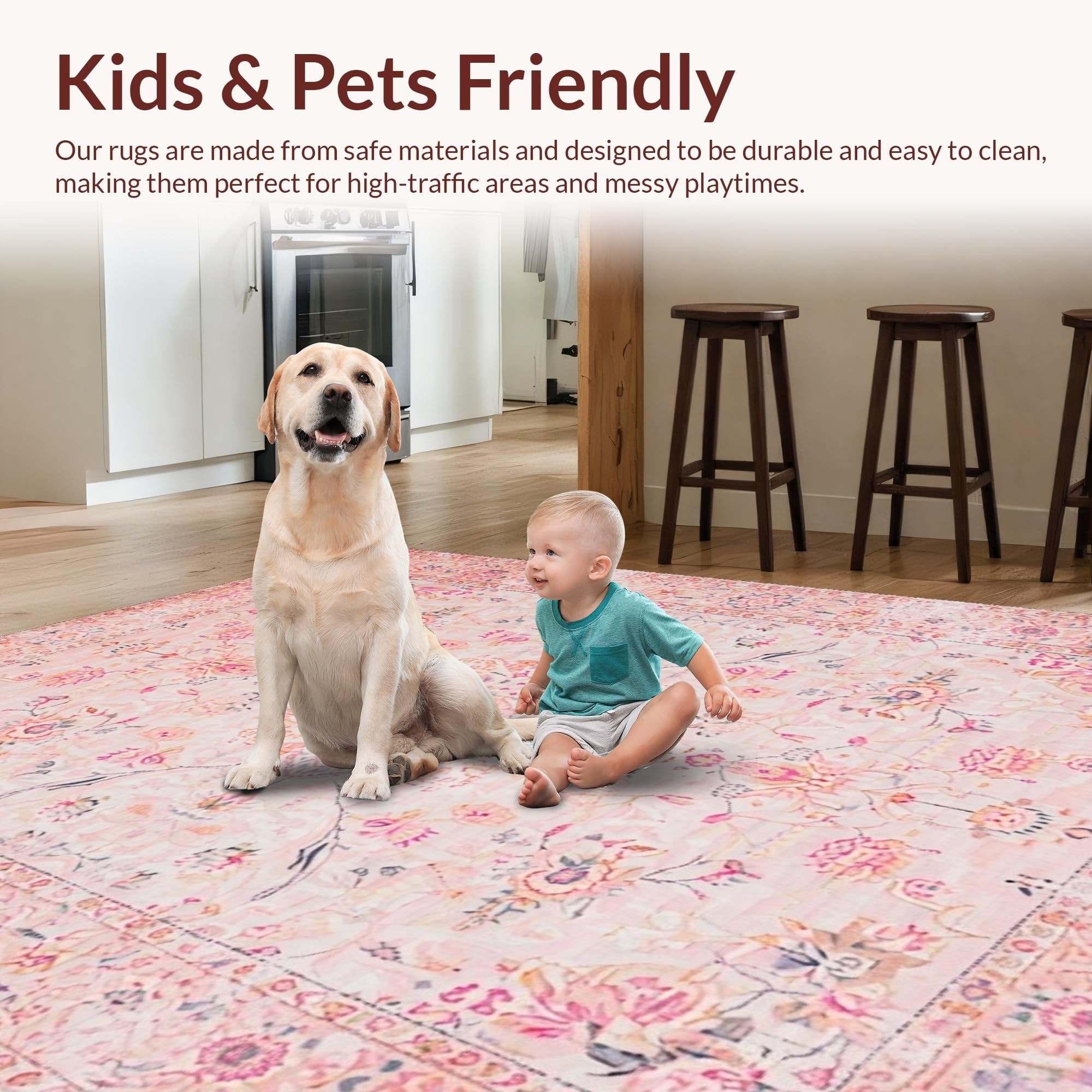 Ultra Soft Area Rug, Non Slip, Stain Resistant, Washable Area Rugs for Living Room, Bedroom, Playful Colorful Garden Scene(Pink) Overview: