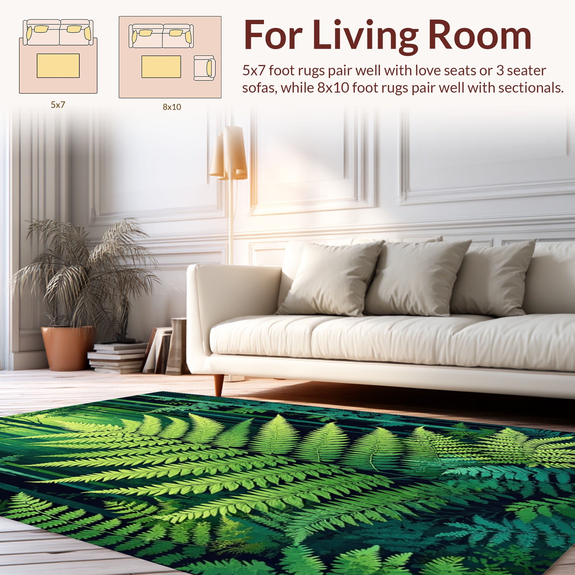 Flatwoven High Traffic Area Rug, Playful Contemporary Green Landscape, Non Slip, Stain Resistant, Washable Area Rugs for Living Room, Bedroom (Green) Overview: