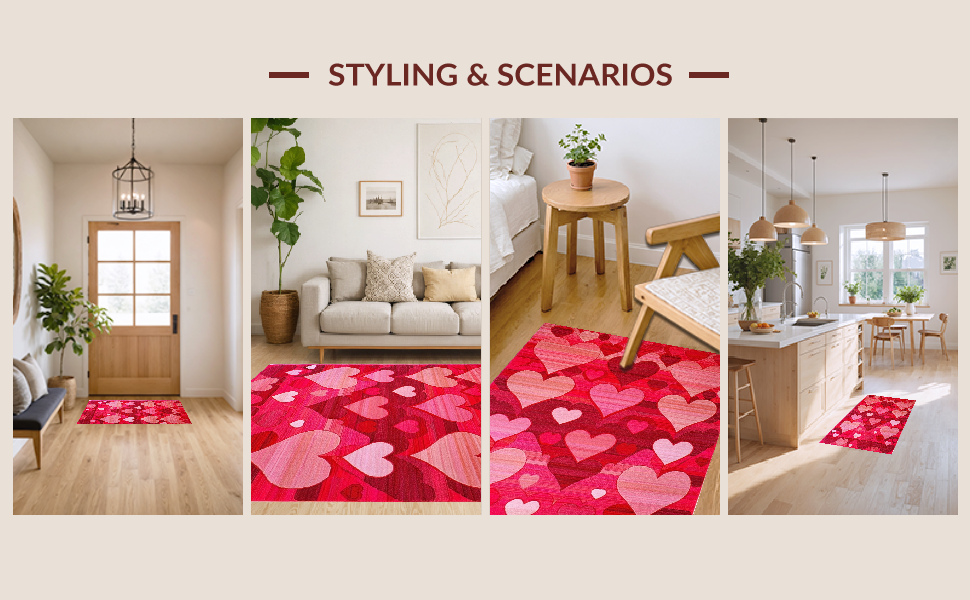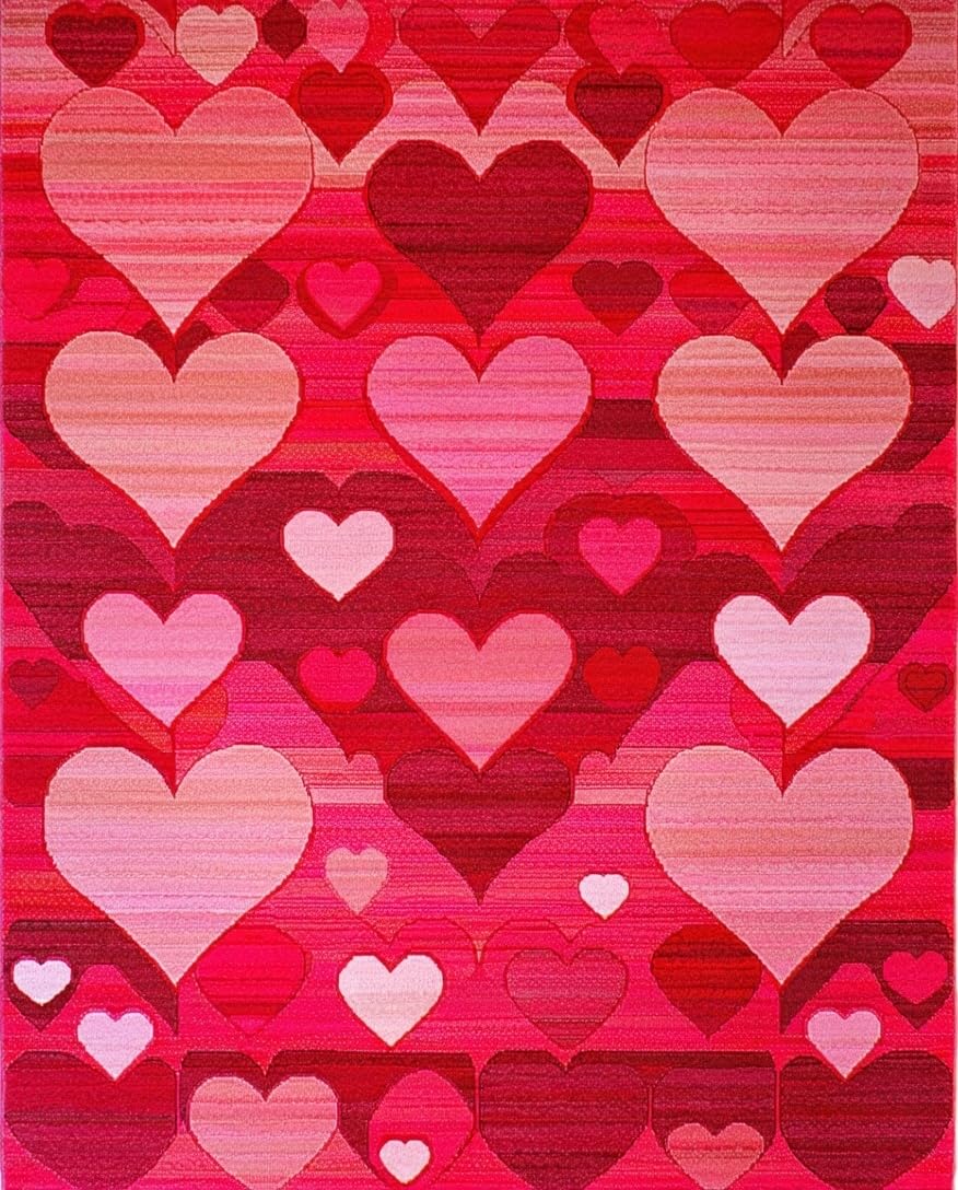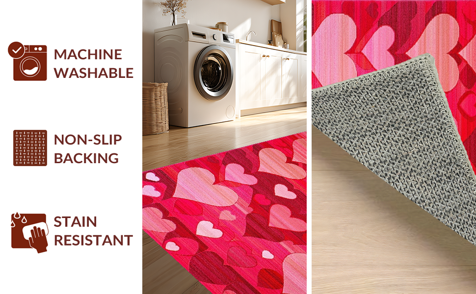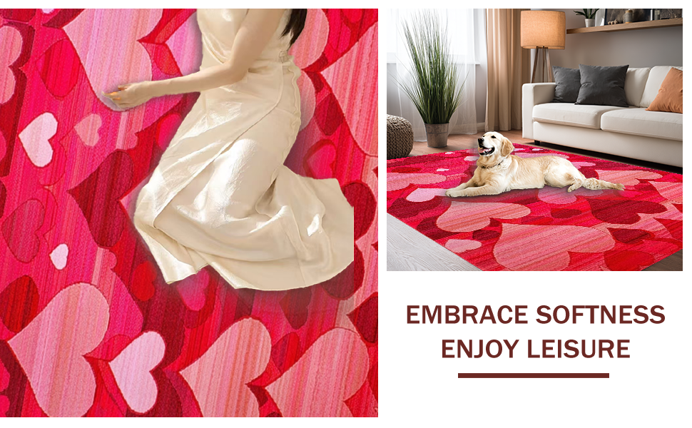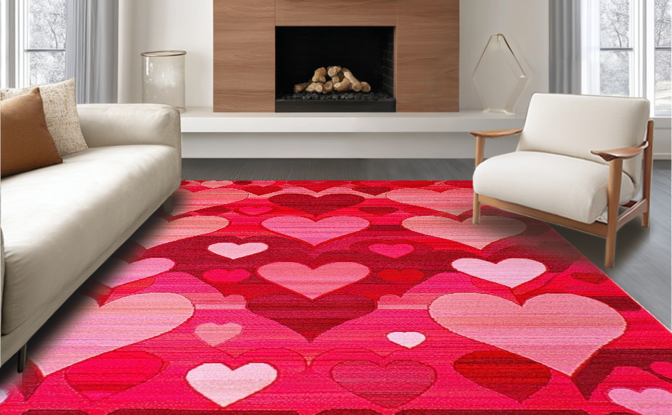 Ultra Soft Area Rug, Non Slip, Stain Resistant, Washable Area Rugs for Living Room, Bedroom, Playful Contemporary Heart Design(Red) Overview: