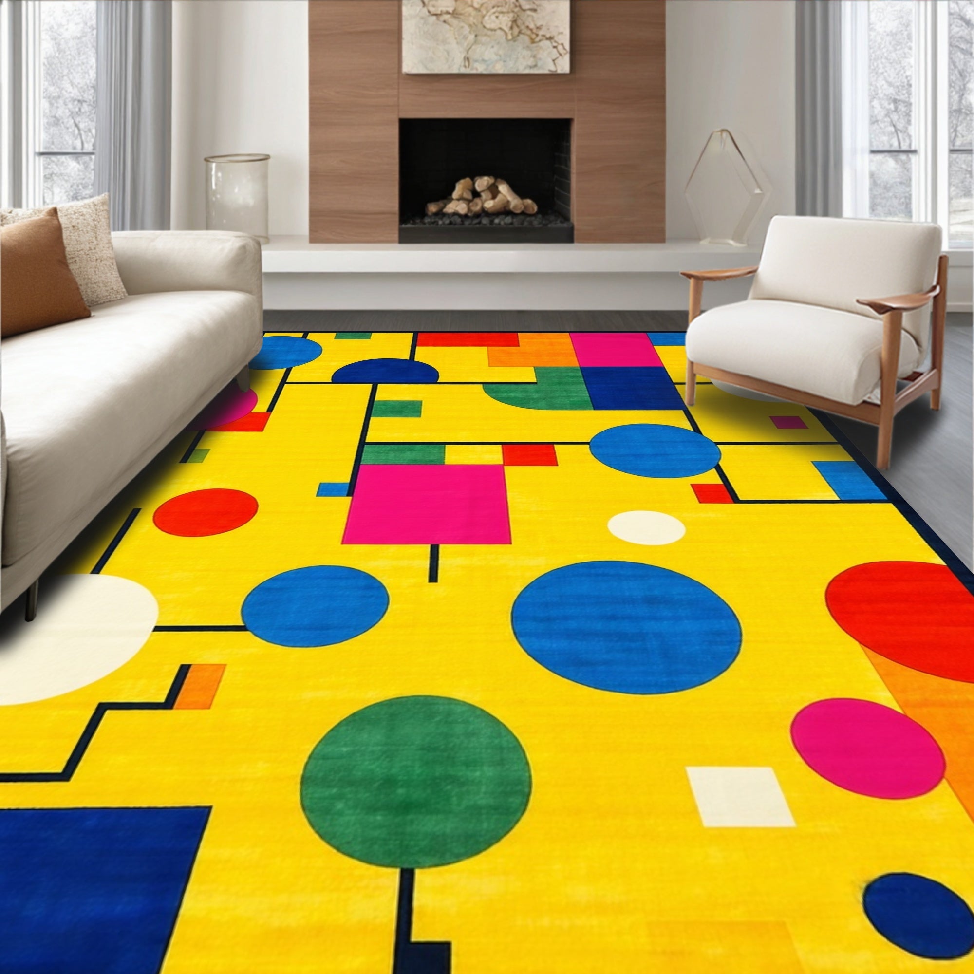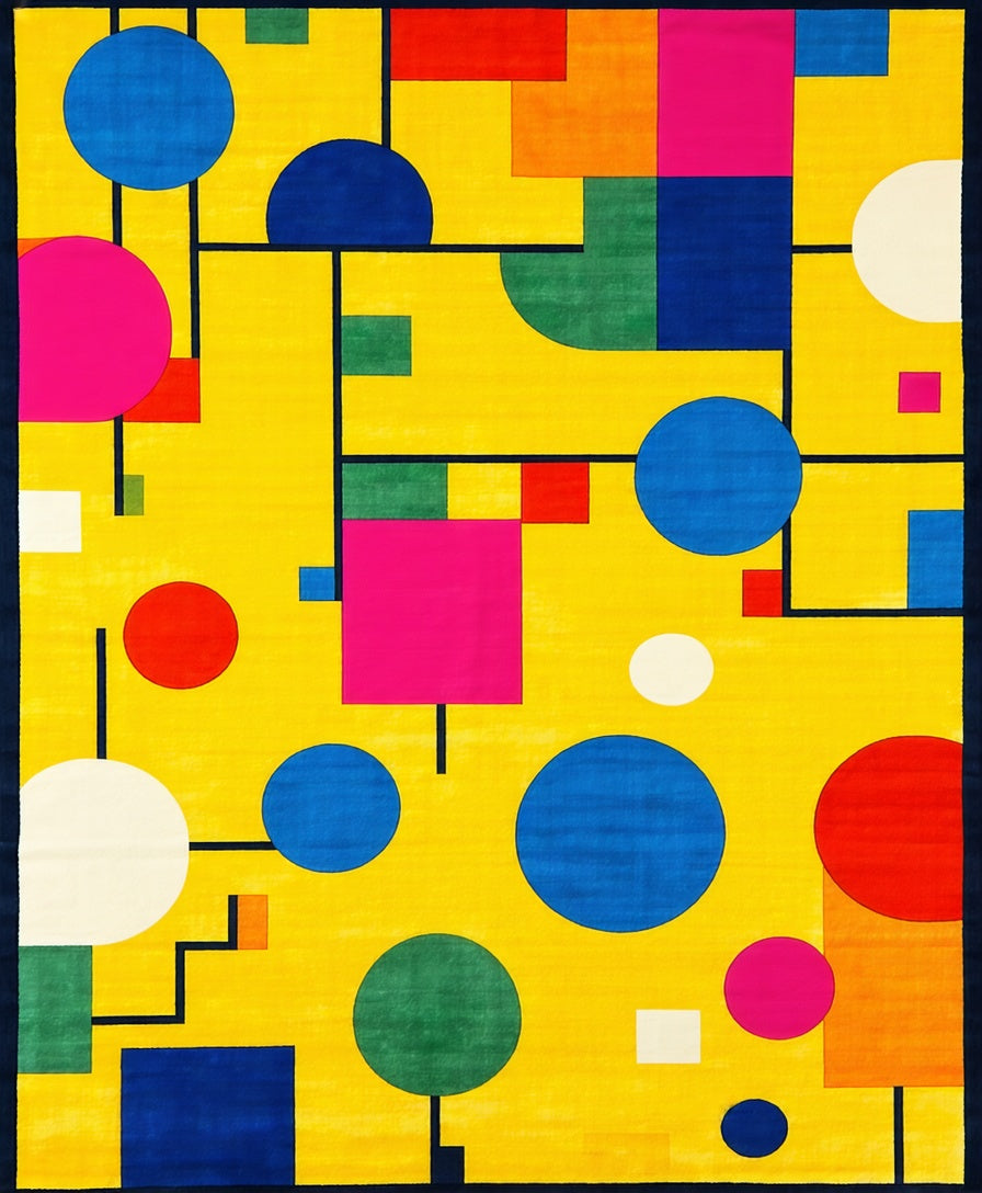 Flatwoven High Traffic Area Rug, Playful Daycare Themed With Colorful Abstract Shapes And Whimsical Designs, Non Slip, Stain Resistant, Washable Area Rugs for Living Room, Bedroom (Yellow) Overview: