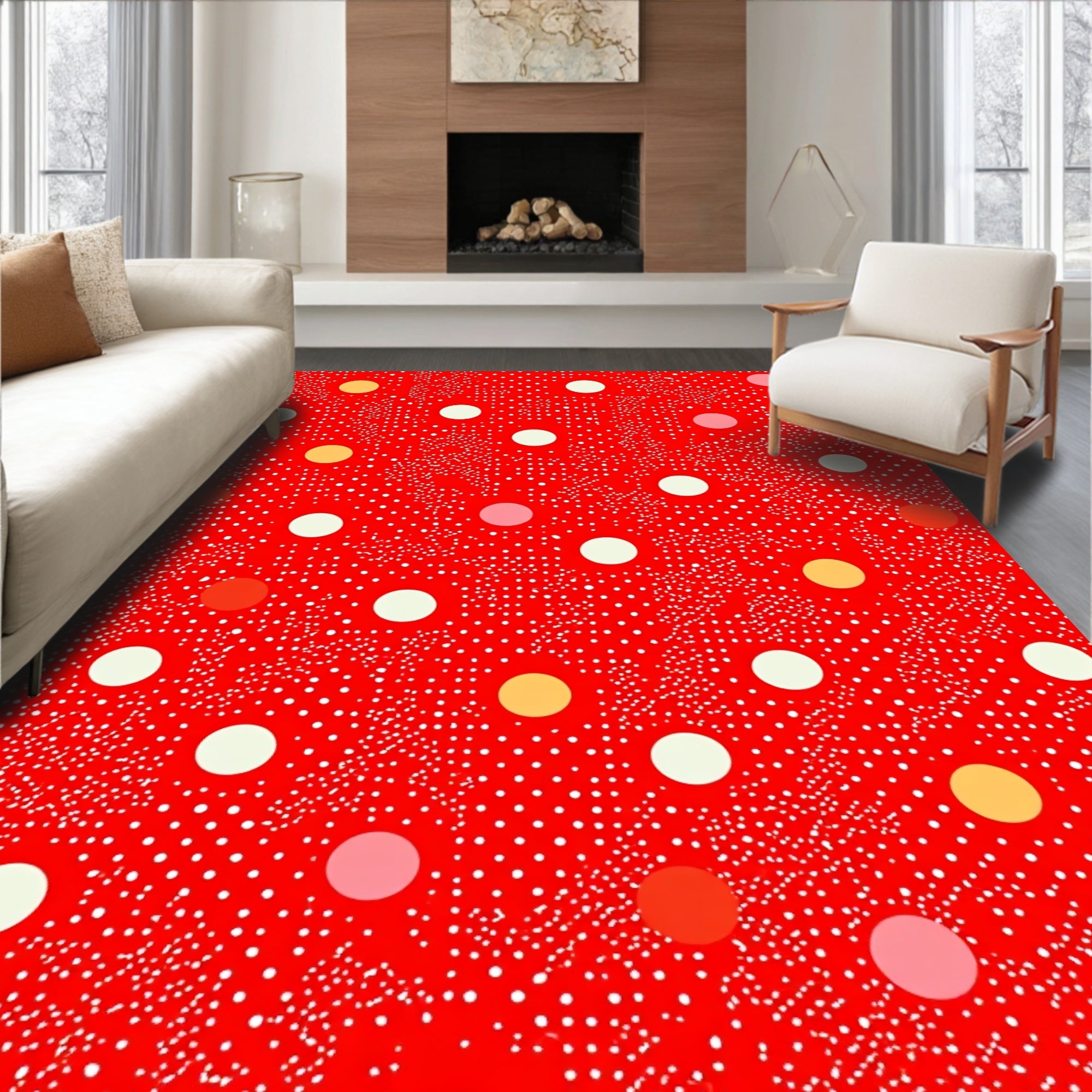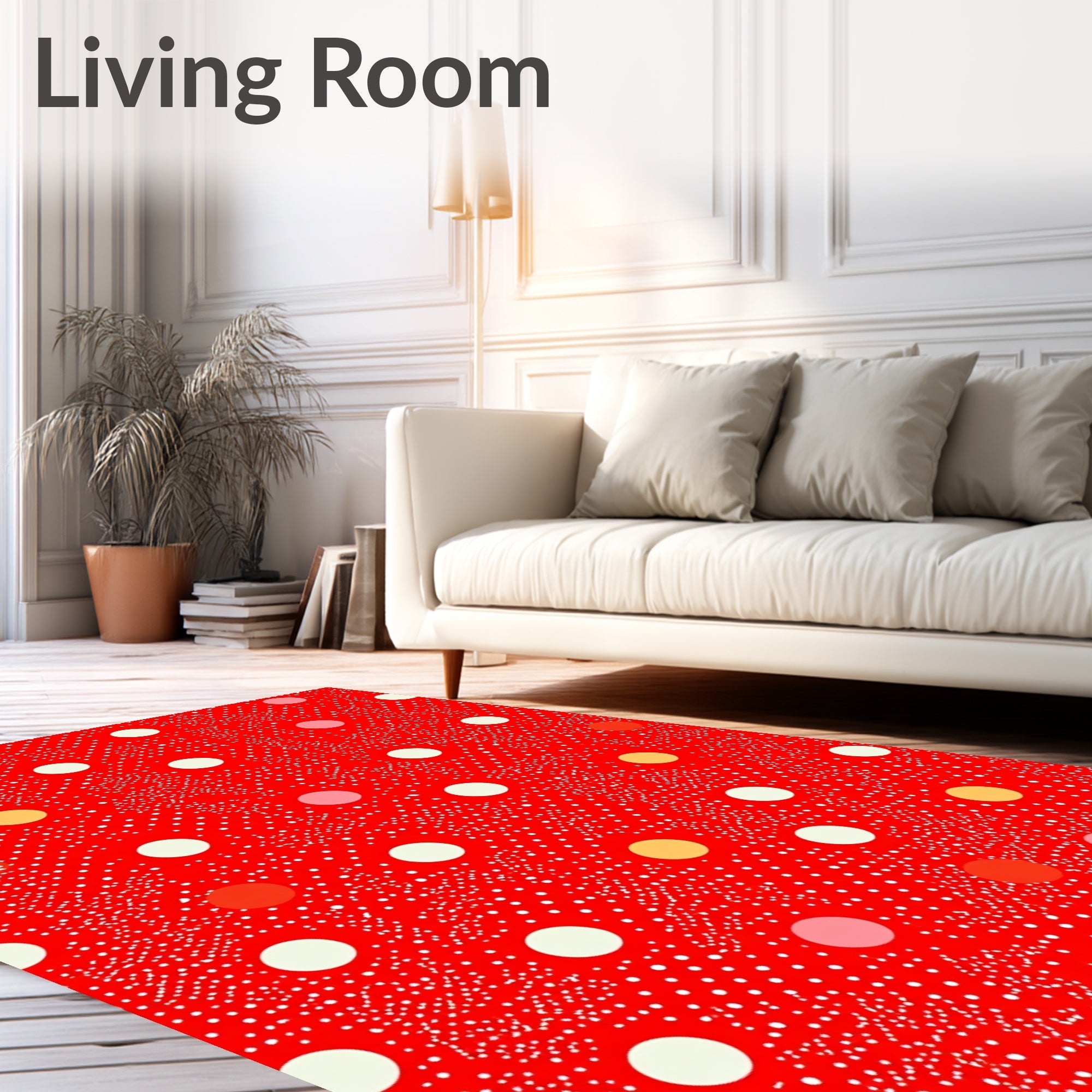 Ultra Soft Area Rug, Non Slip, Stain Resistant, Washable Area Rugs for Living Room, Bedroom, Playful Dot with Scattered Polka and Abstract Confetti(Red) Overview: