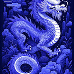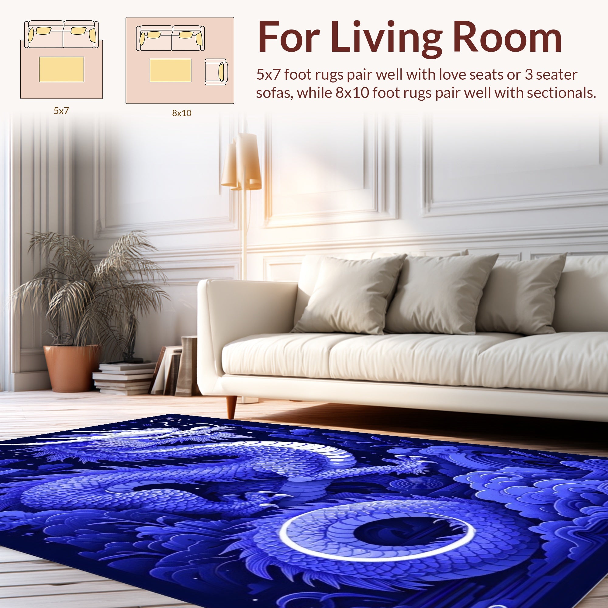 Flatwoven High Traffic Area Rug, Playful Dragon Fantasy Expression, Non Slip, Stain Resistant, Washable Area Rugs for Living Room, Bedroom (Blue) Overview: