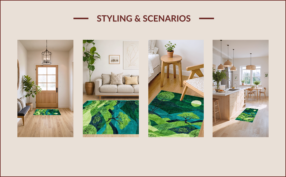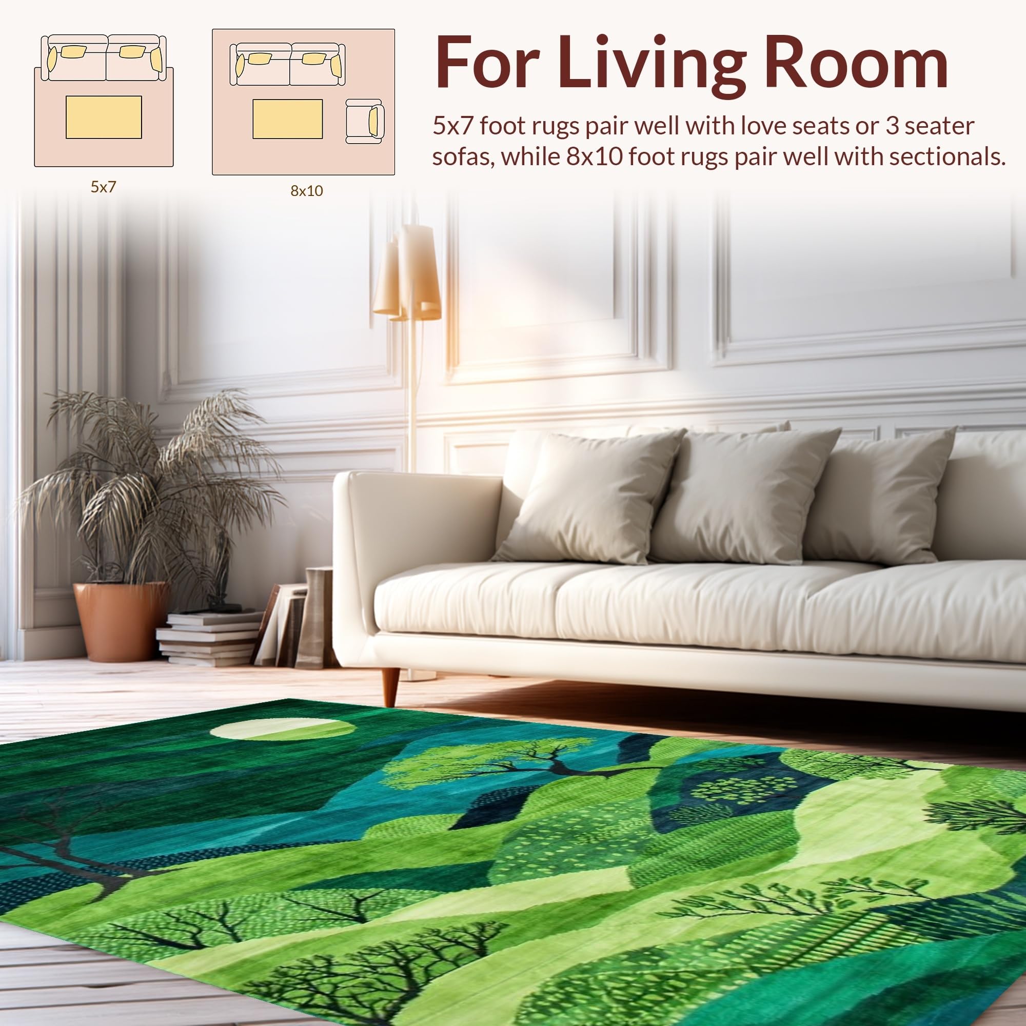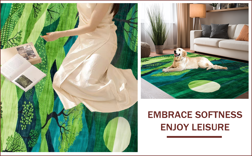 Ultra Soft Area Rug, Non Slip, Stain Resistant, Washable Area Rugs for Living Room, Bedroom, Playful Earthy Color Splash(Green) Overview: