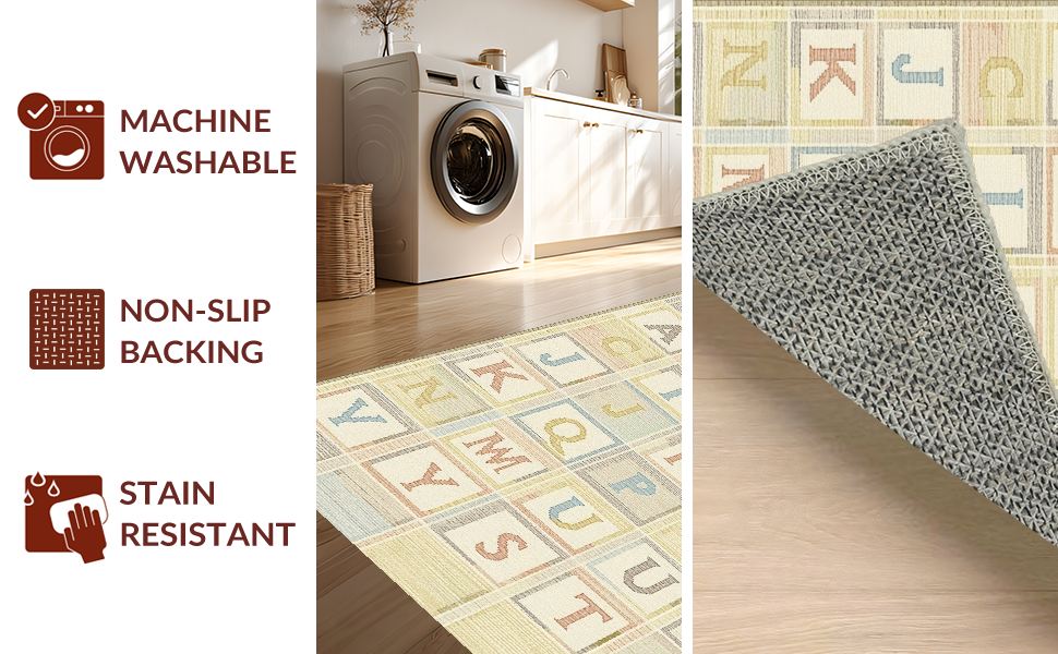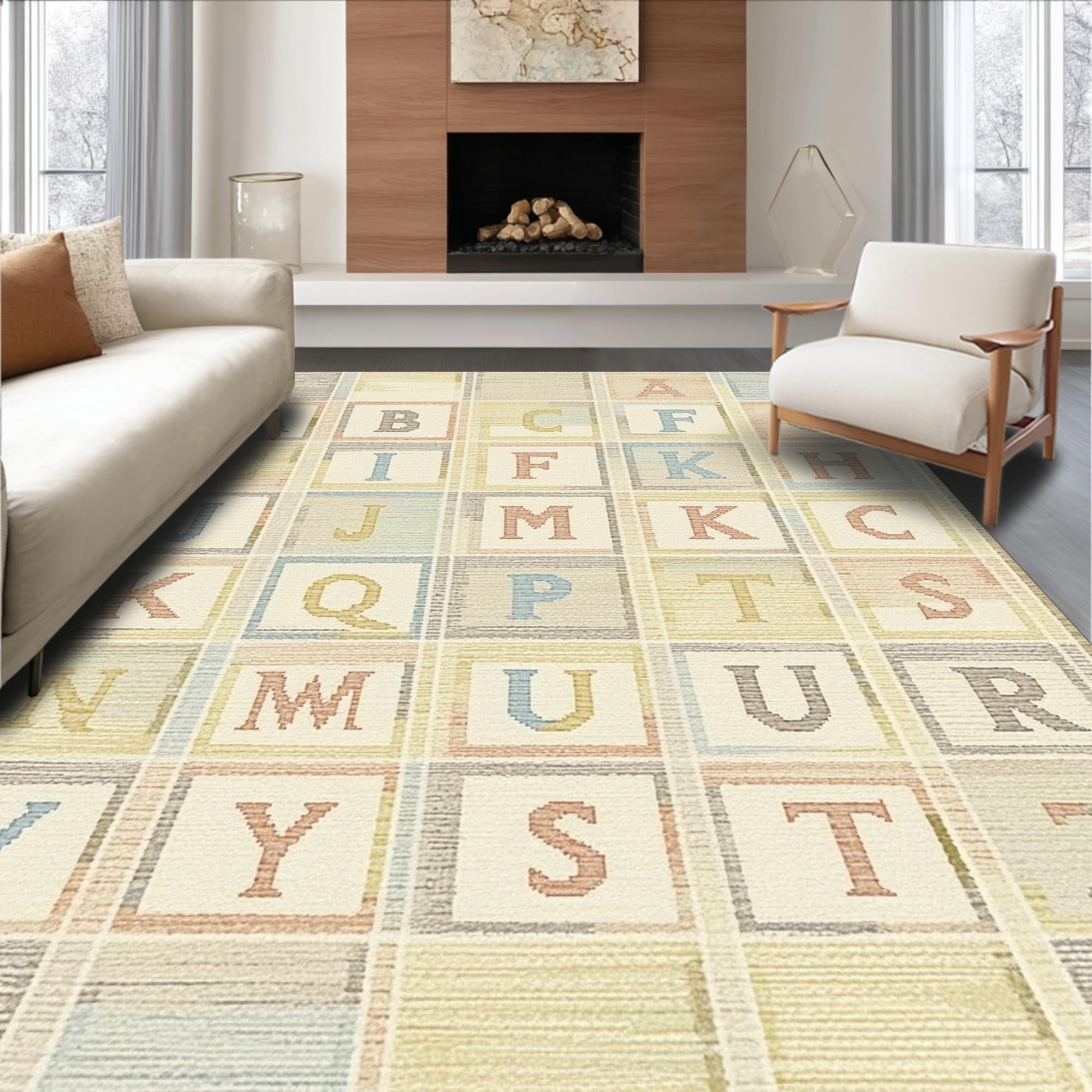Ultra Soft Area Rug, Non Slip, Stain Resistant, Washable Area Rugs for Living Room, Bedroom, Playful Educational Beige Canvas(Beige) Overview: