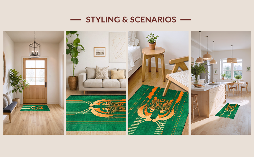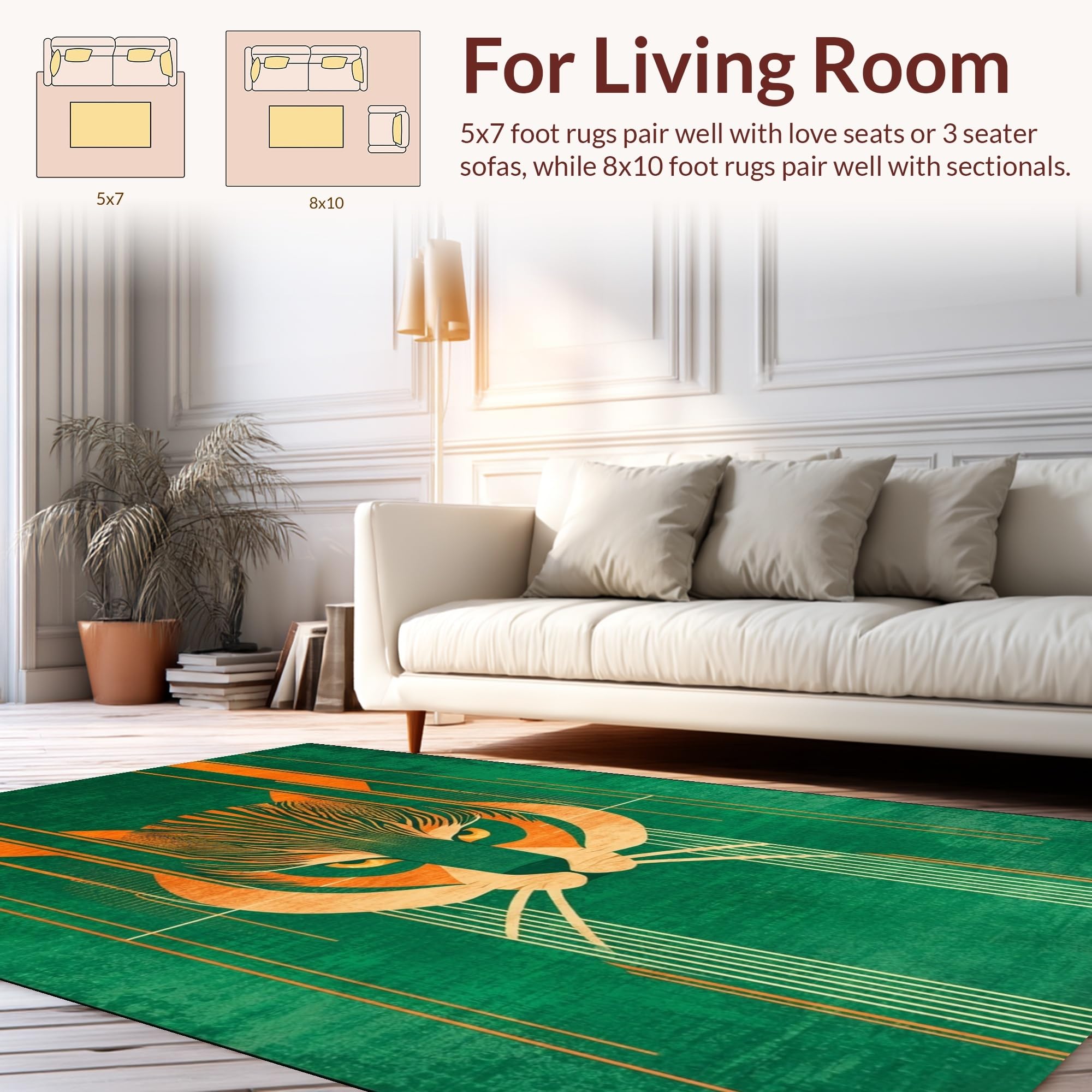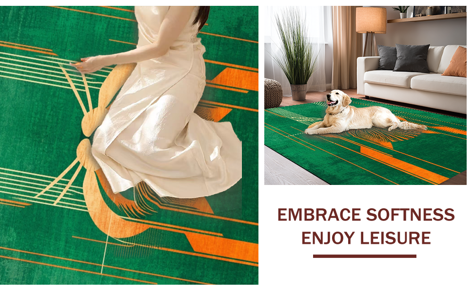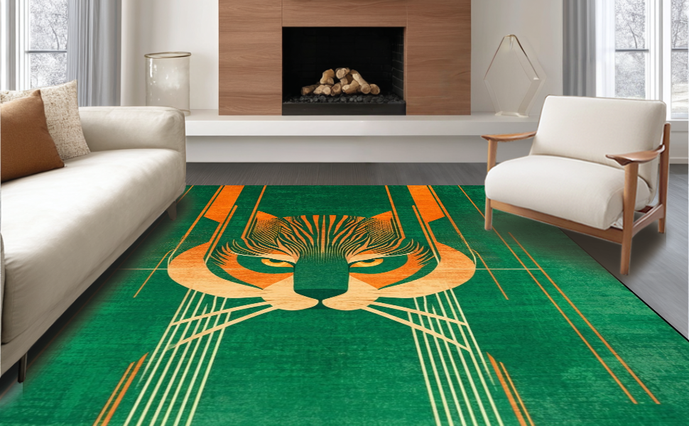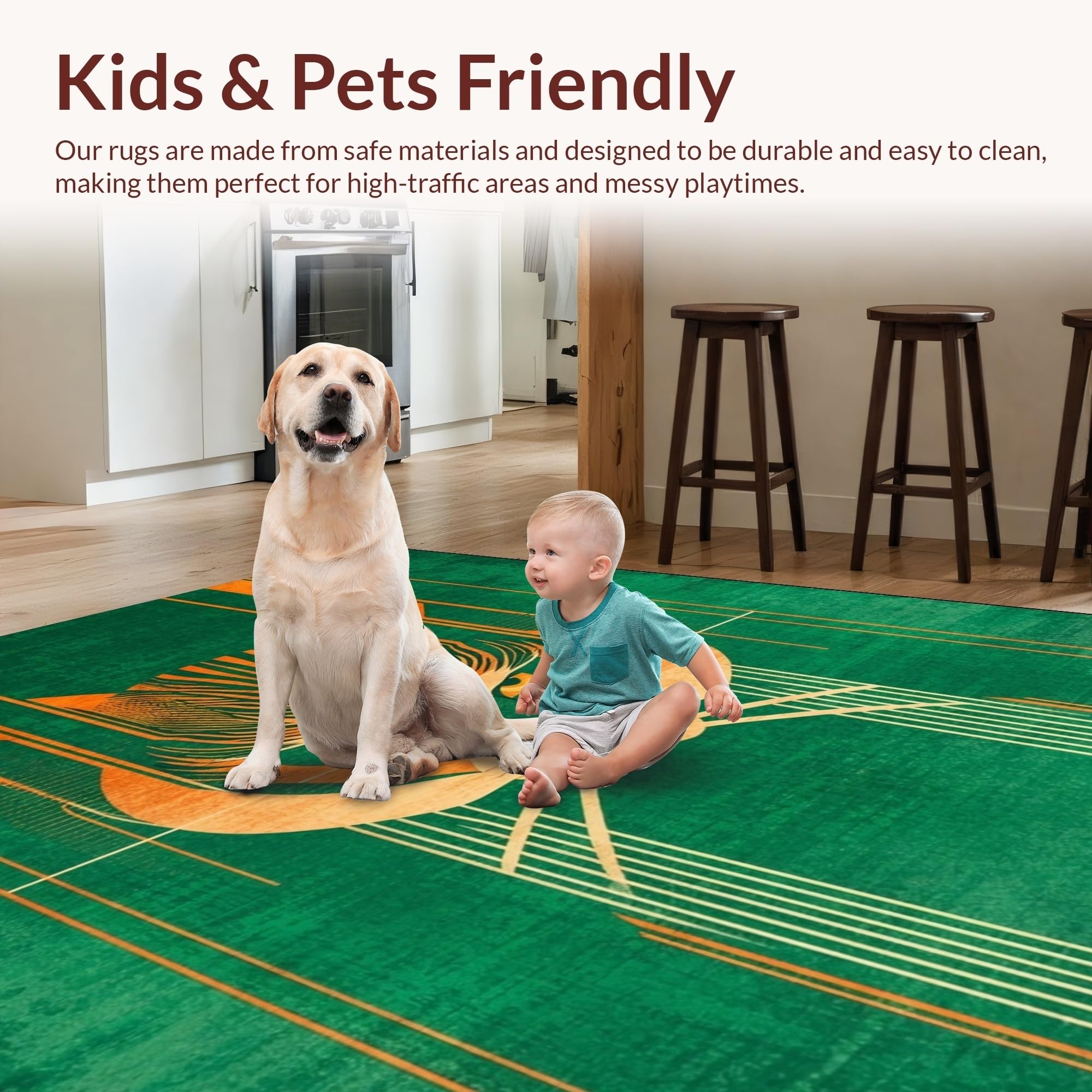 Ultra Soft Area Rug, Non Slip, Stain Resistant, Washable Area Rugs for Living Room, Bedroom, Playful Energetic Safari Theme(Green) Overview: