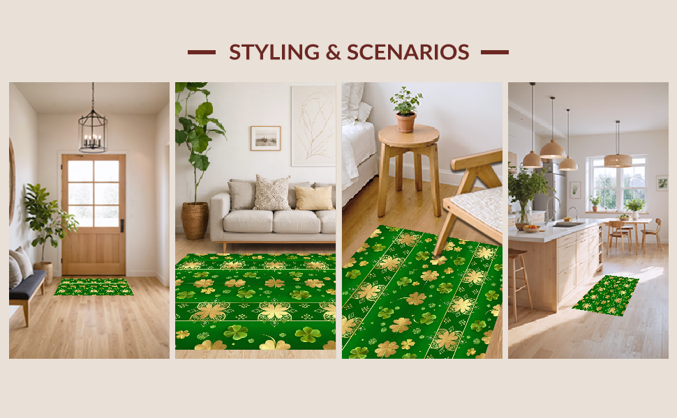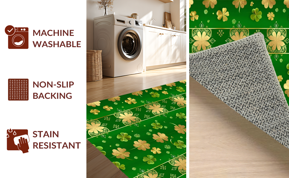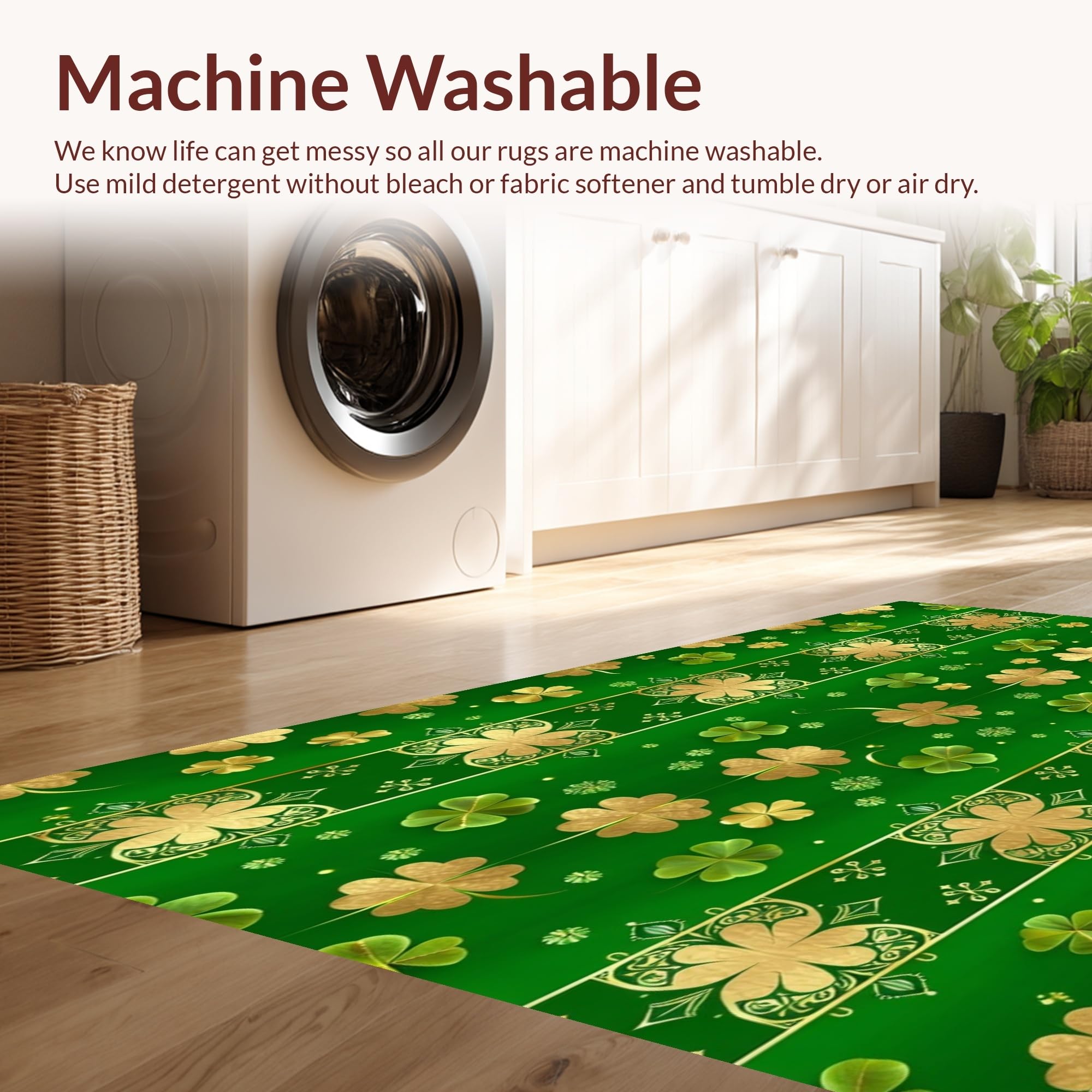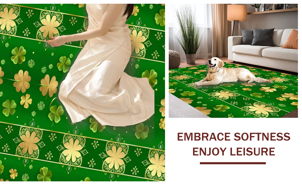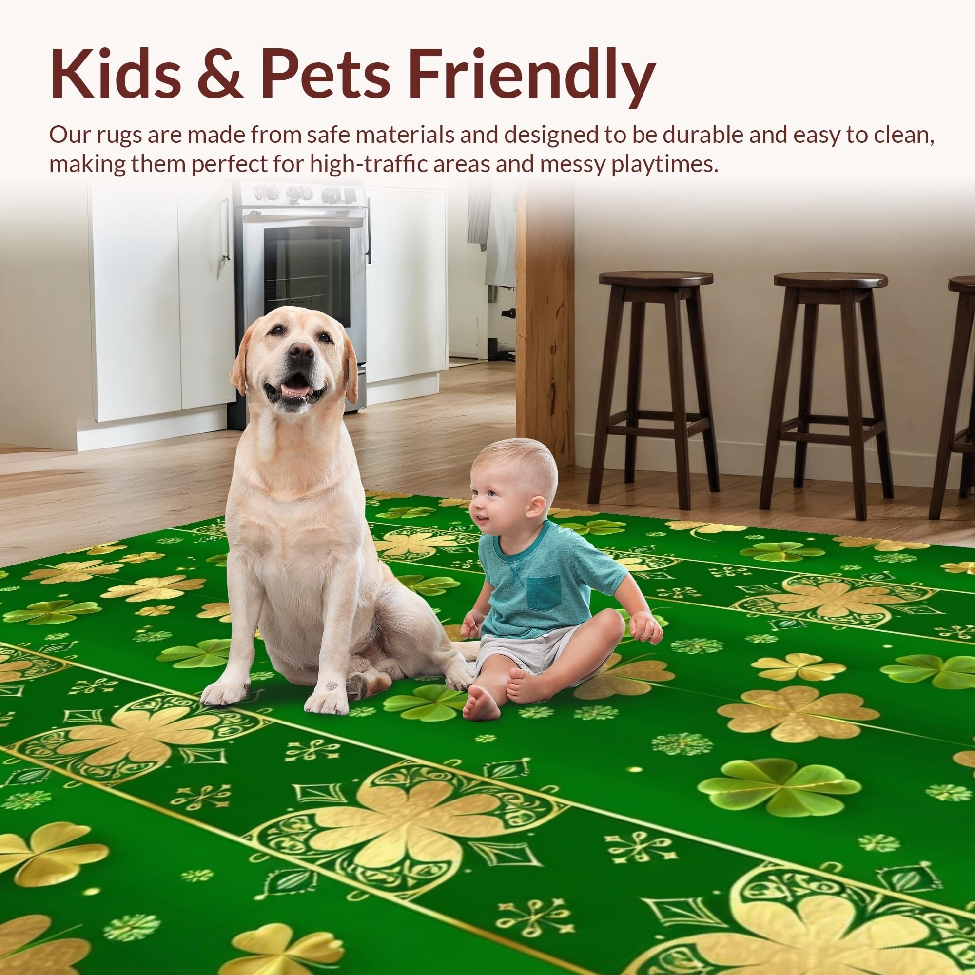 Ultra Soft Area Rug, Non Slip, Stain Resistant, Washable Area Rugs for Living Room, Bedroom, Playful Festive Clover Illustration(Green) Overview: