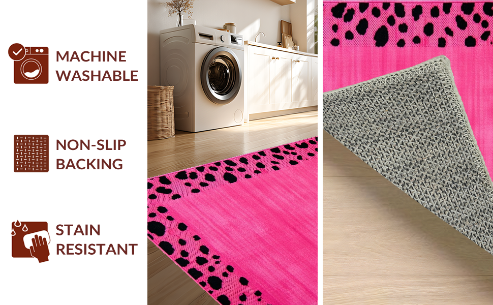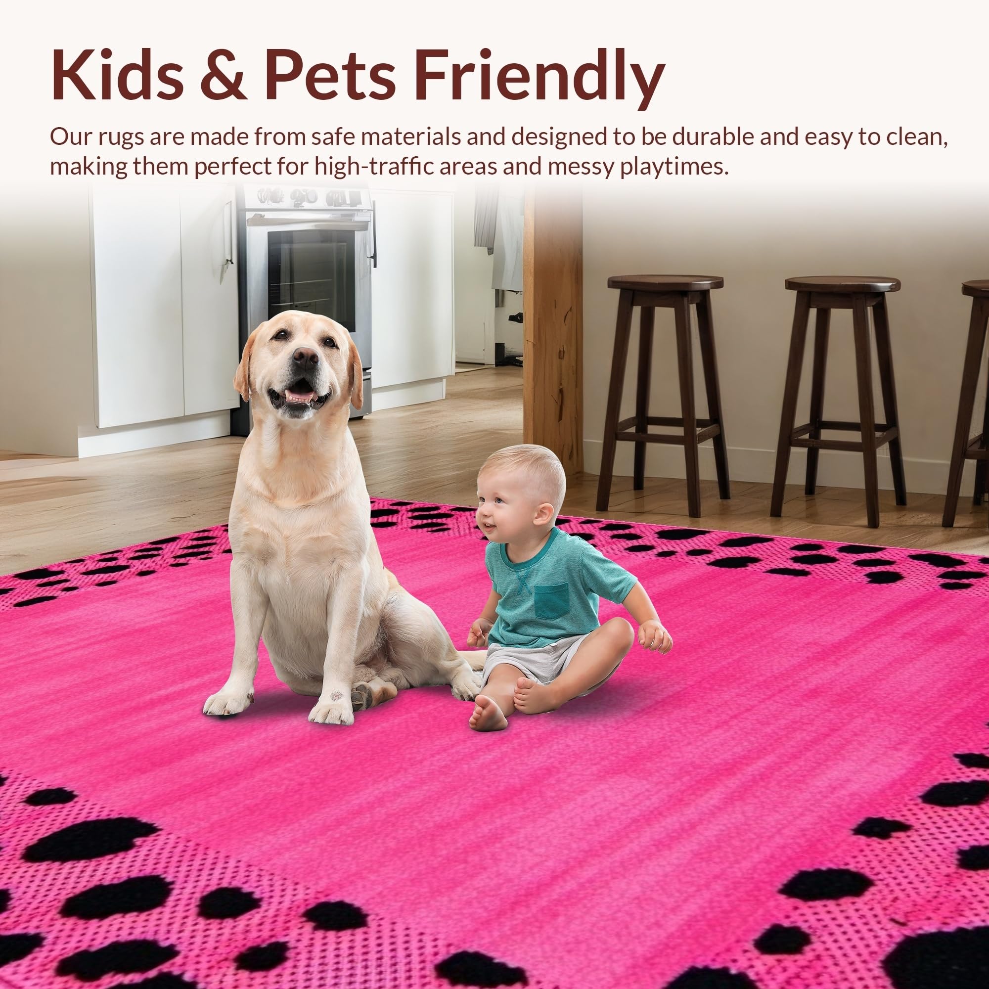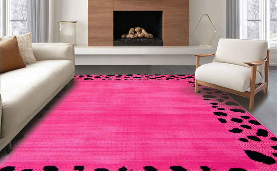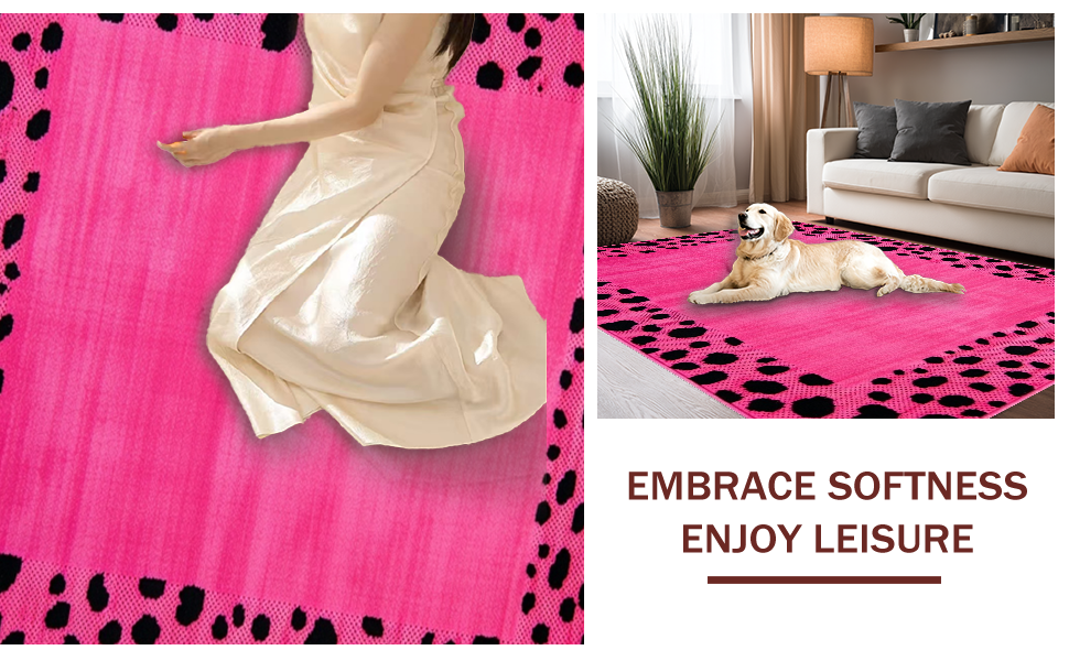 Ultra Soft Area Rug, Non Slip, Stain Resistant, Washable Area Rugs for Living Room, Bedroom, Playful Fluffy Leopard Texture(Pink) Overview:
