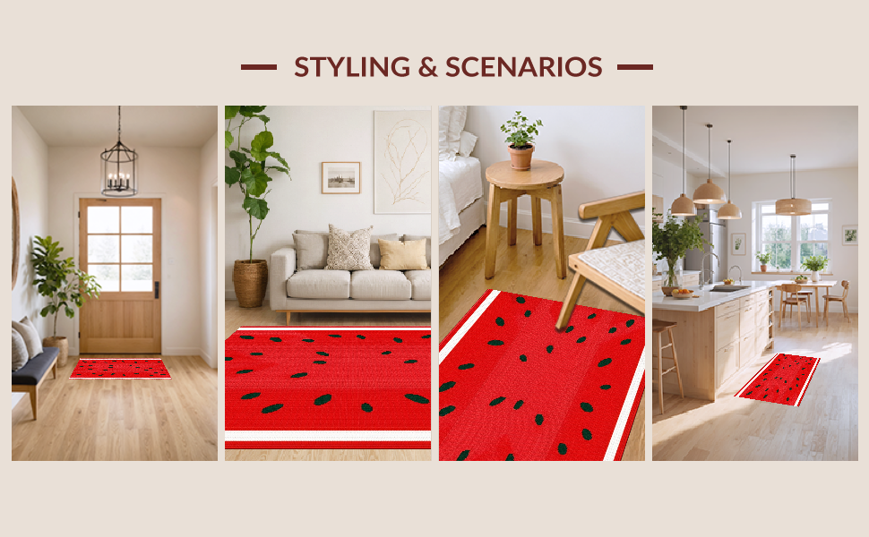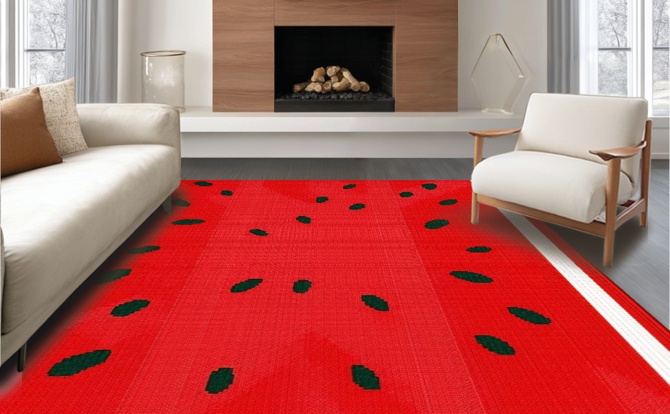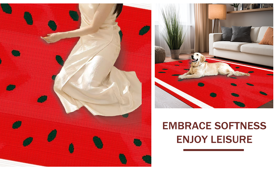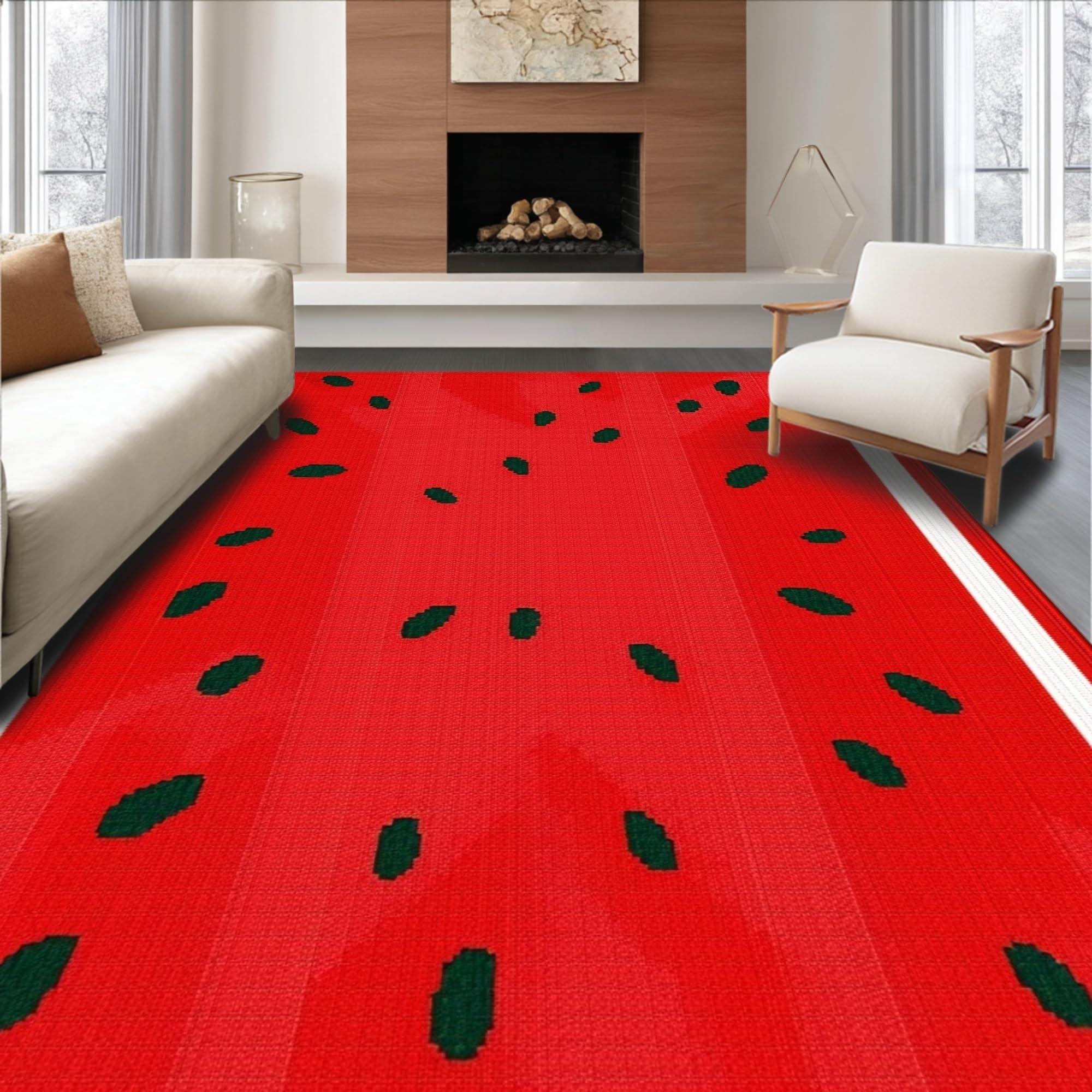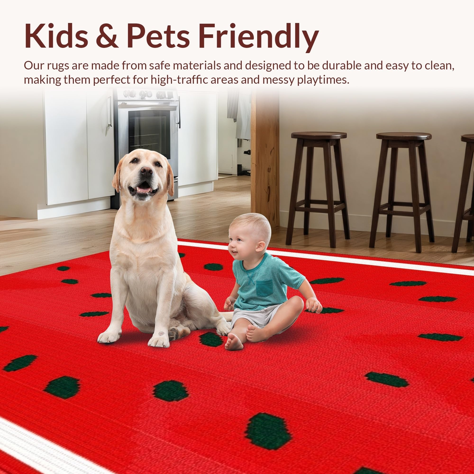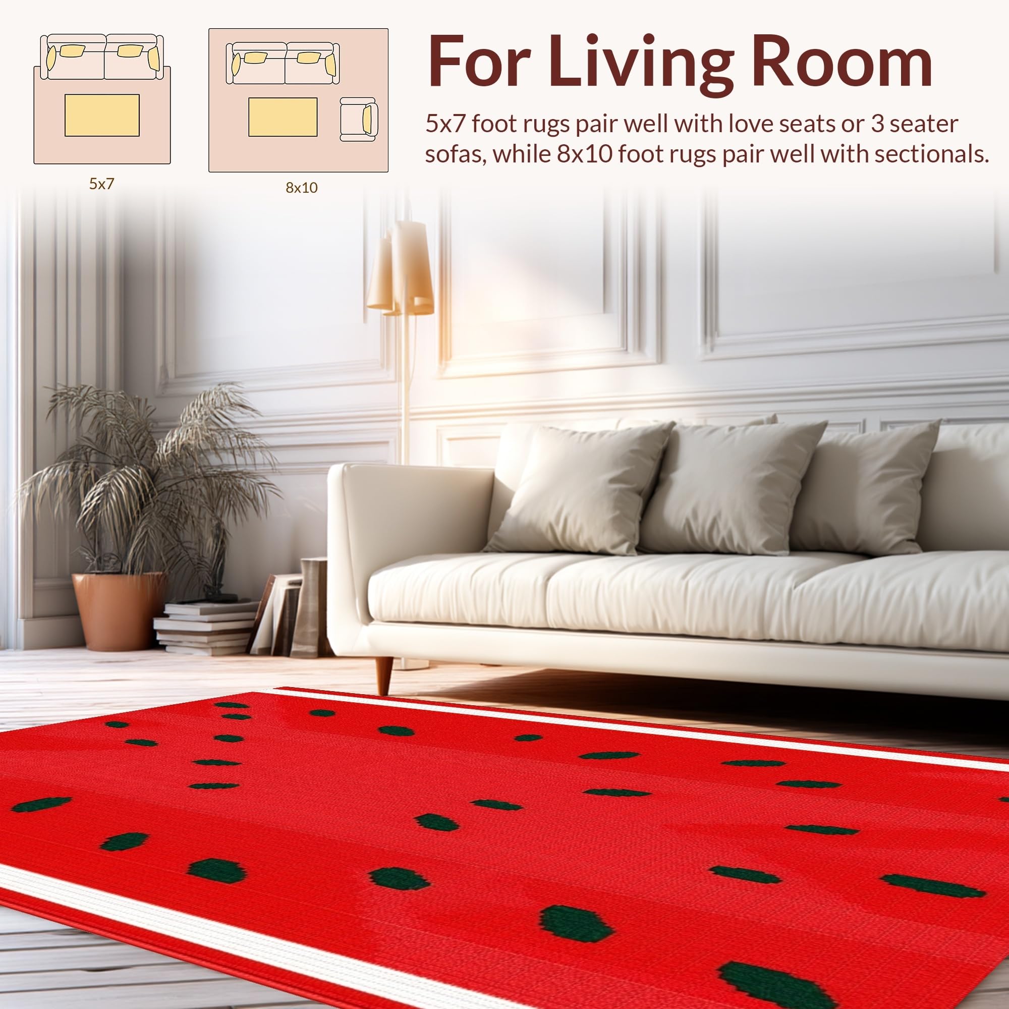 Ultra Soft Area Rug, Non Slip, Stain Resistant, Washable Area Rugs for Living Room, Bedroom, Playful Fruit Pattern Delight(Red) Overview: