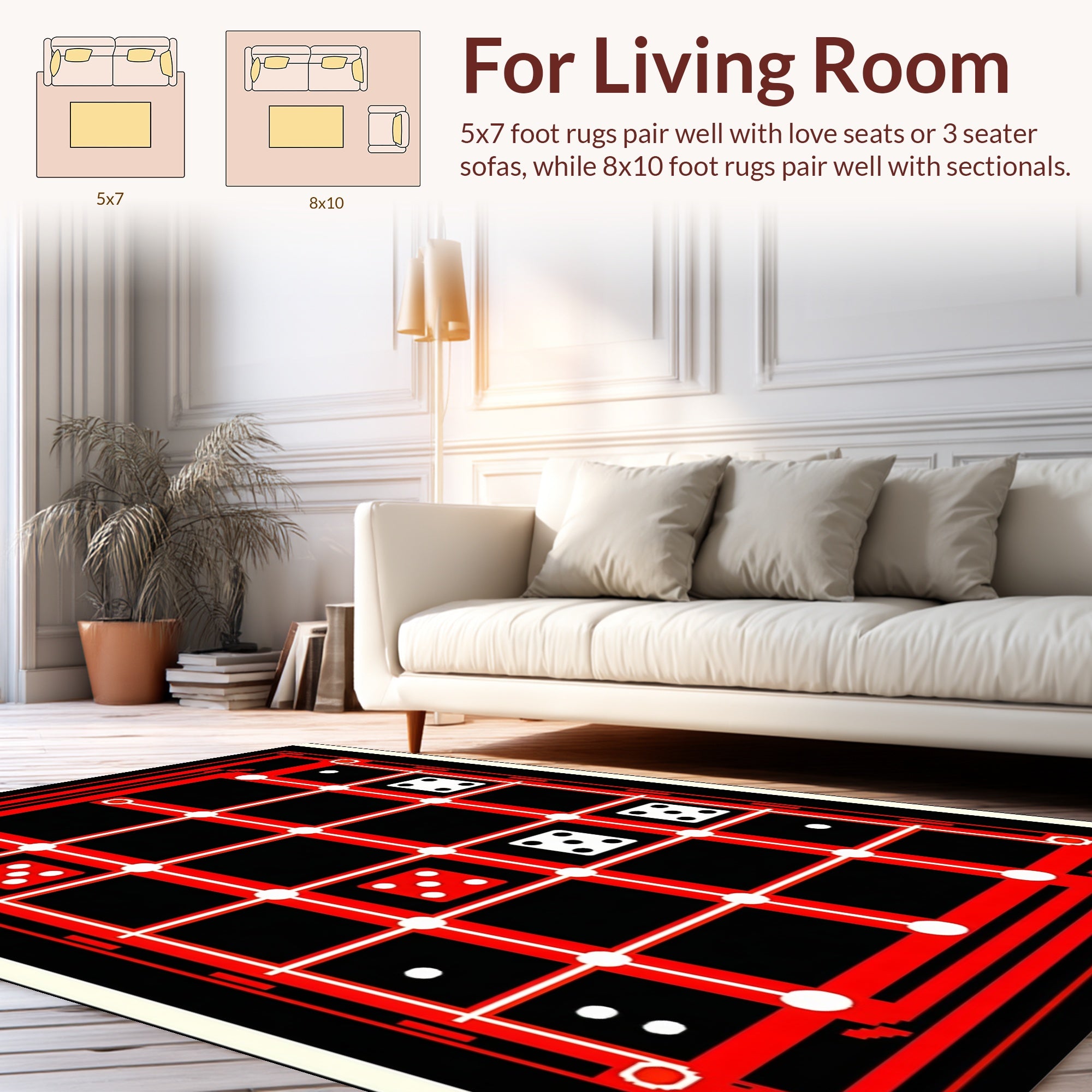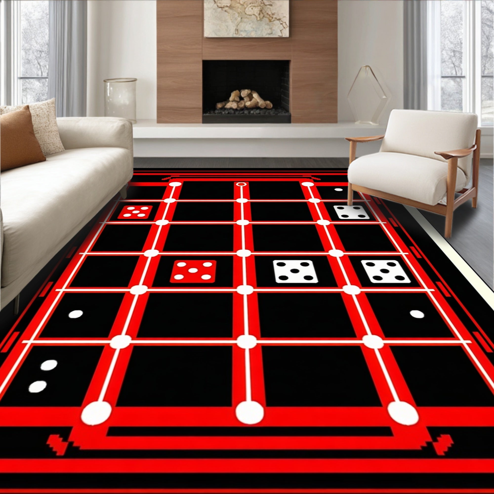 Flatwoven High Traffic Area Rug, Playful Geometric Dice Motif, Non Slip, Stain Resistant, Washable Area Rugs for Living Room, Bedroom (Black) Overview: