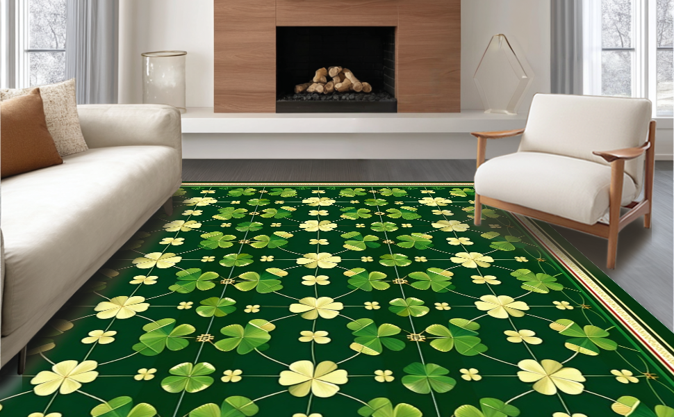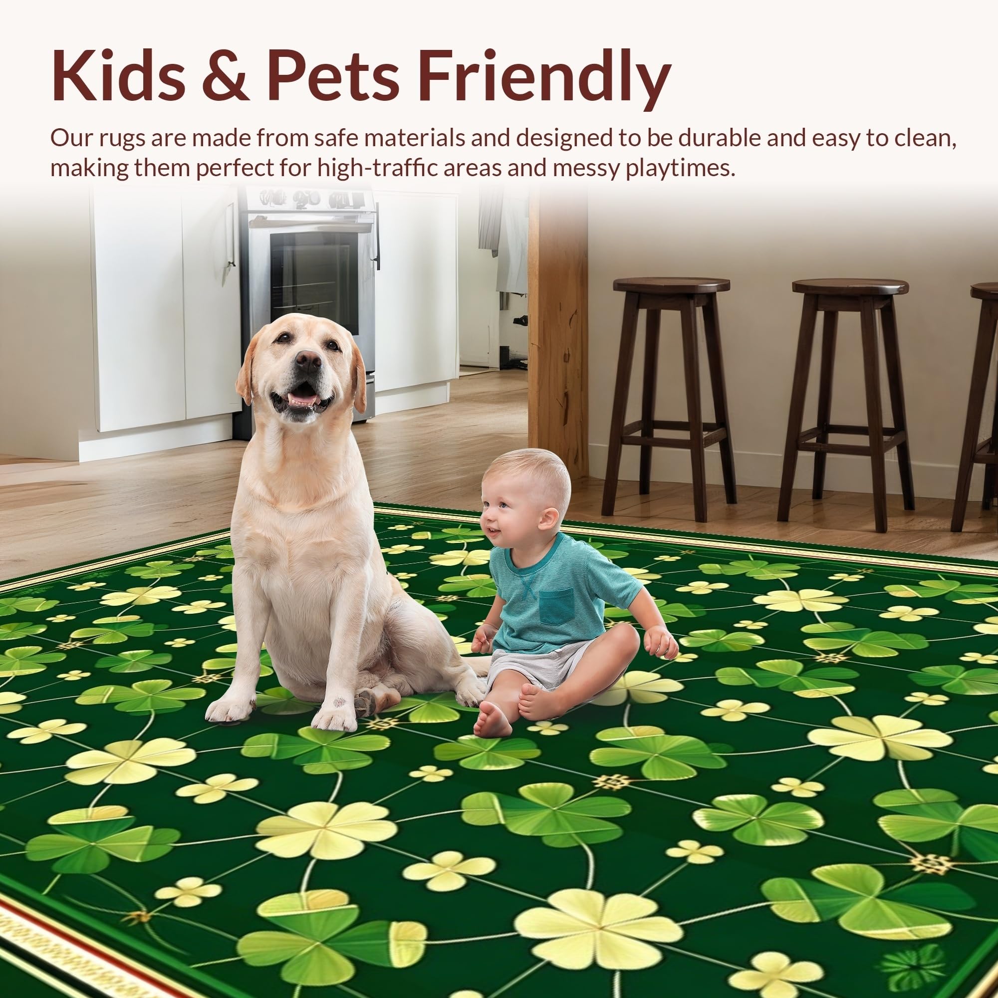 Ultra Soft Area Rug, Non Slip, Stain Resistant, Washable Area Rugs for Living Room, Bedroom, Playful Green Botanical Print(Green) Overview: