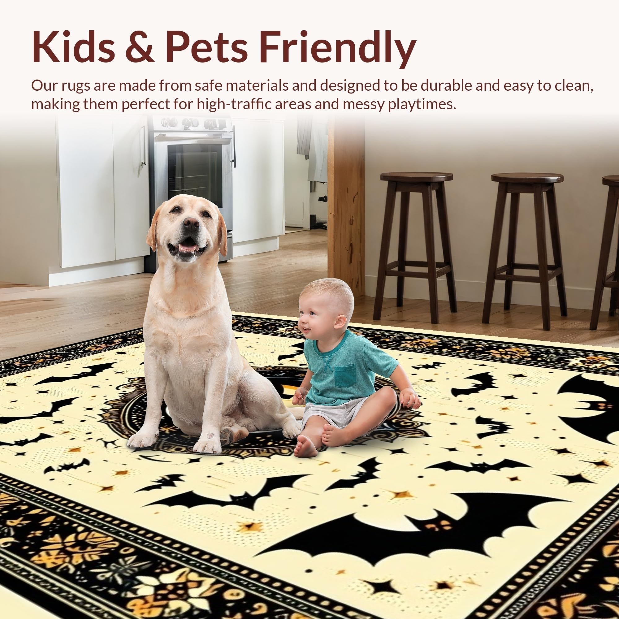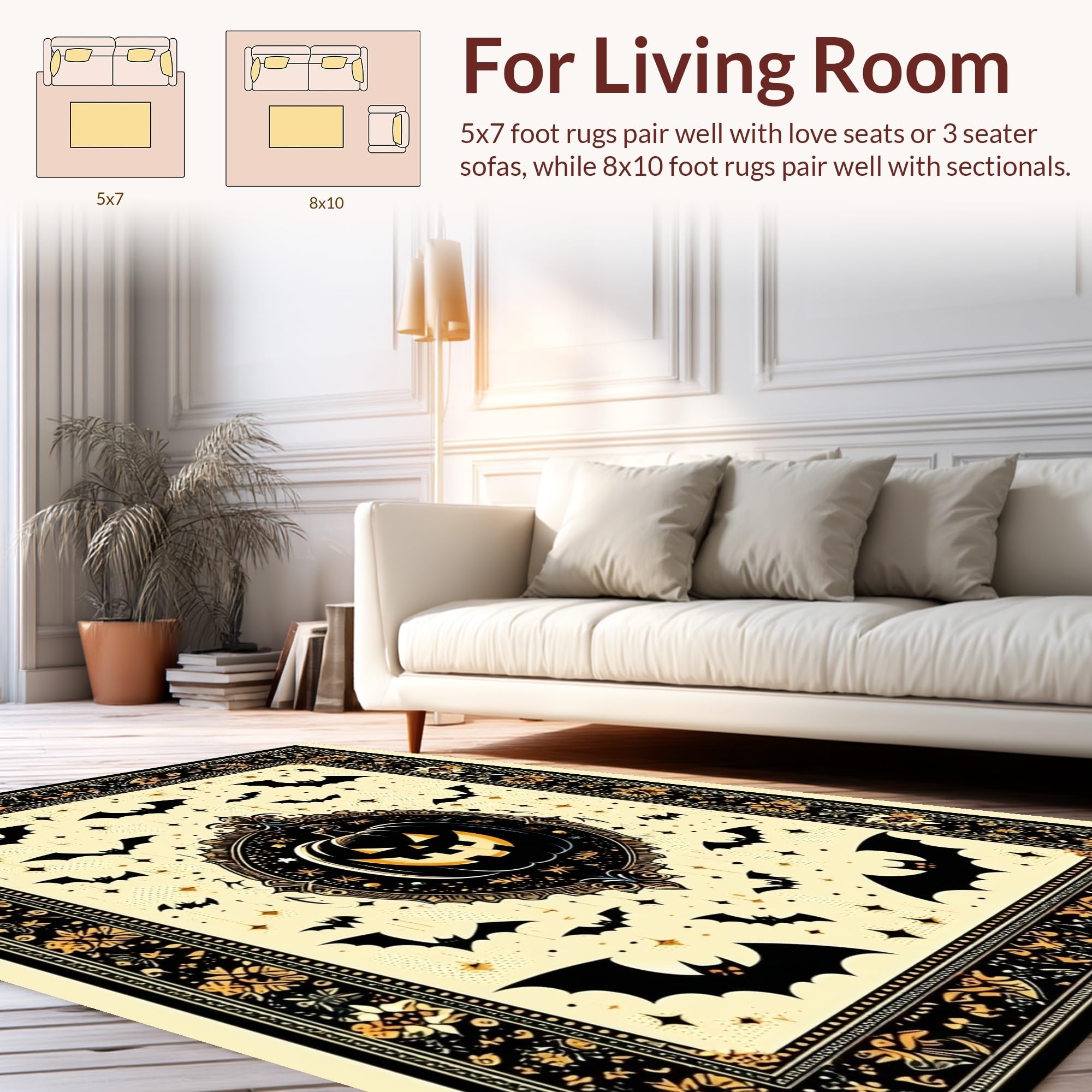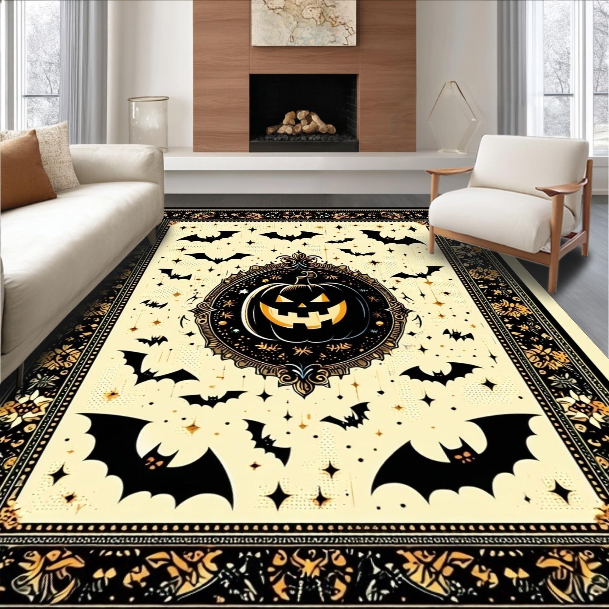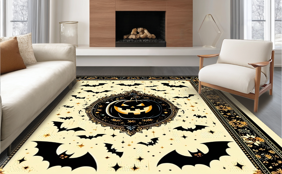 Ultra Soft Area Rug, Non Slip, Stain Resistant, Washable Area Rugs for Living Room, Bedroom, Playful Halloween Creature Arrangement(Black) Overview: