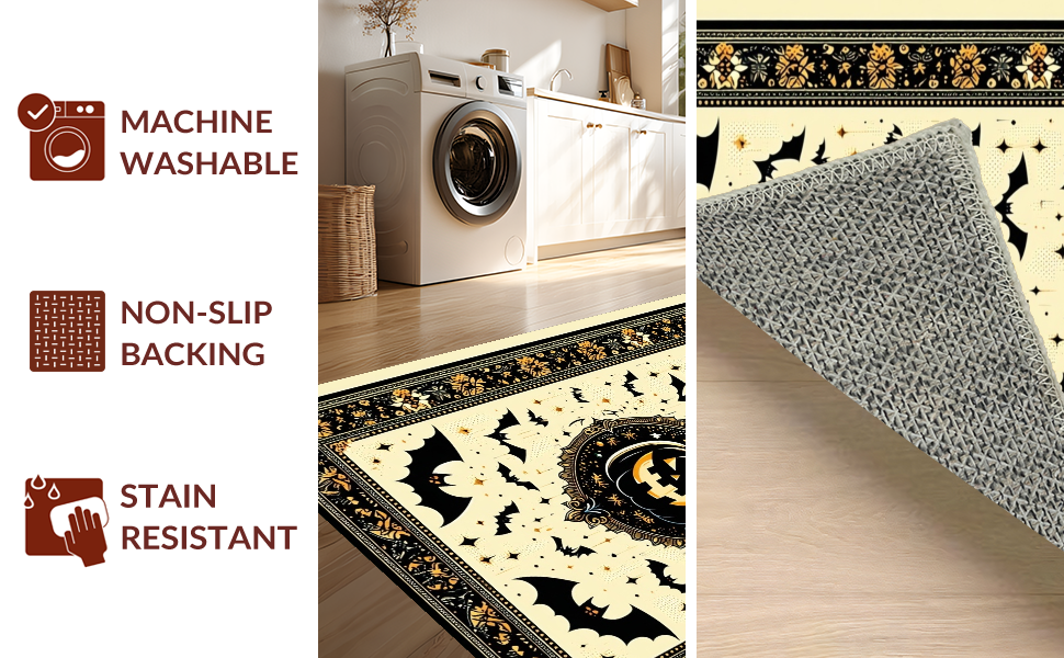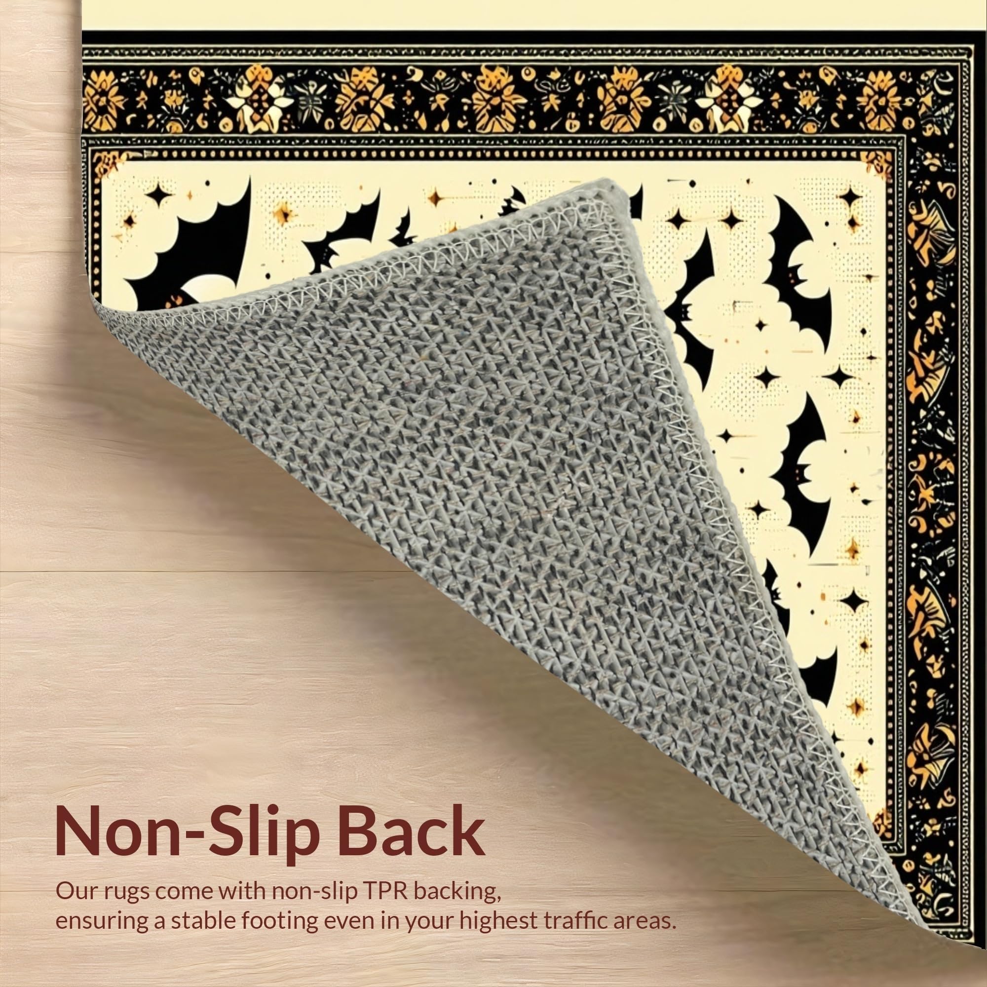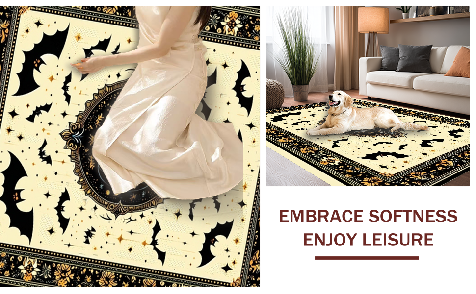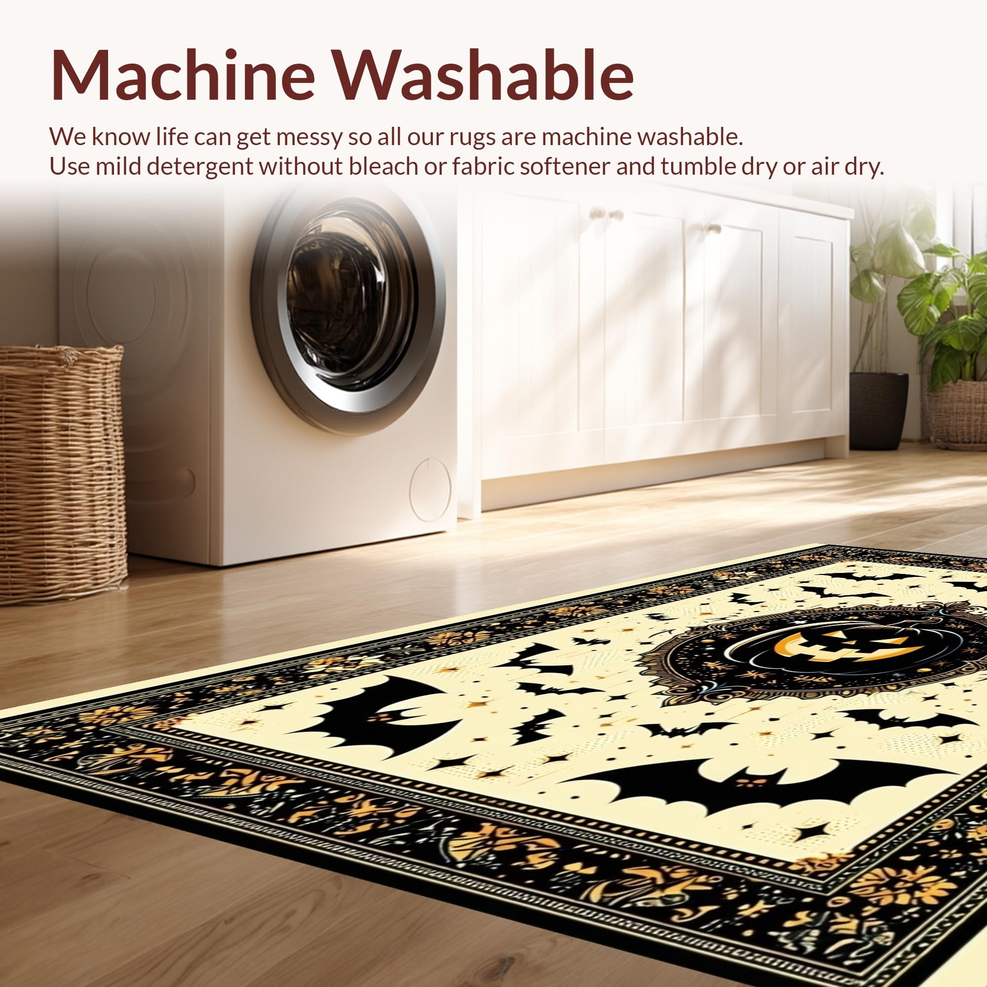 Ultra Soft Area Rug, Non Slip, Stain Resistant, Washable Area Rugs for Living Room, Bedroom, Playful Halloween Creature Arrangement(Black) Overview: