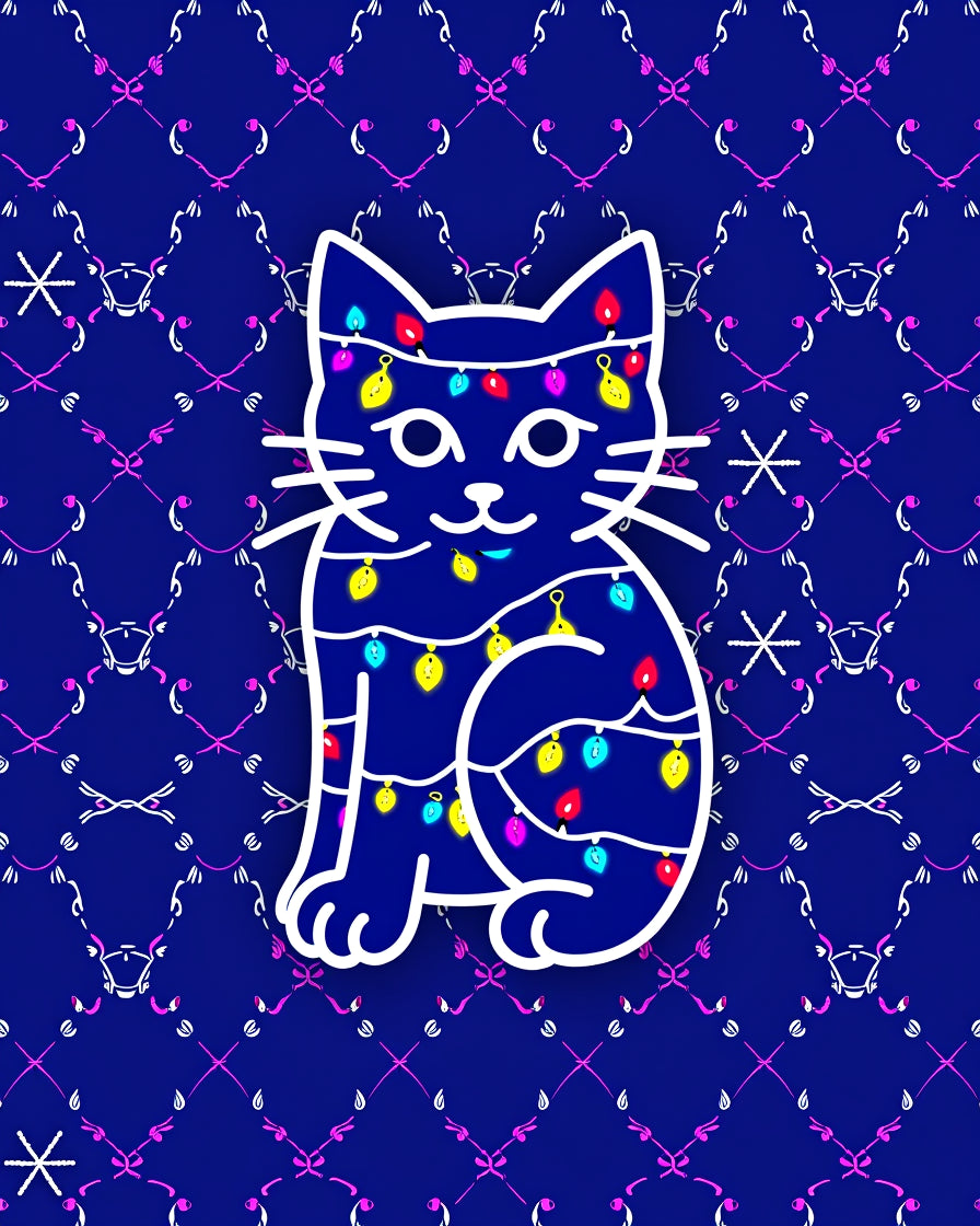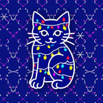 Playful Holiday Cat Trace with Sparkling Festive String Lights(Blue)
