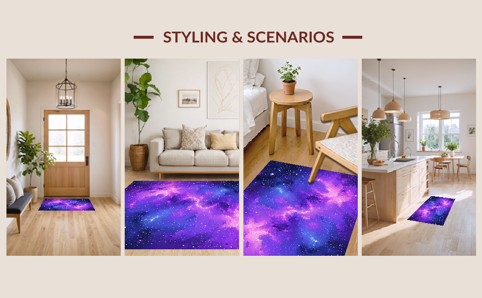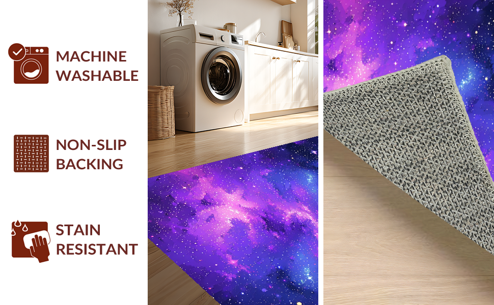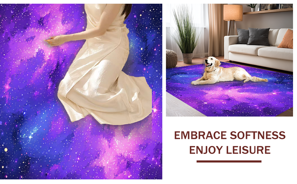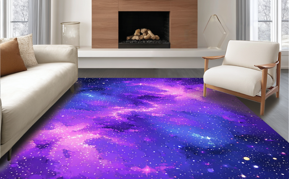 Ultra Soft Area Rug, Non Slip, Stain Resistant, Washable Area Rugs for Living Room, Bedroom, Playful Interstellar Whirl Design(Purple) Overview: