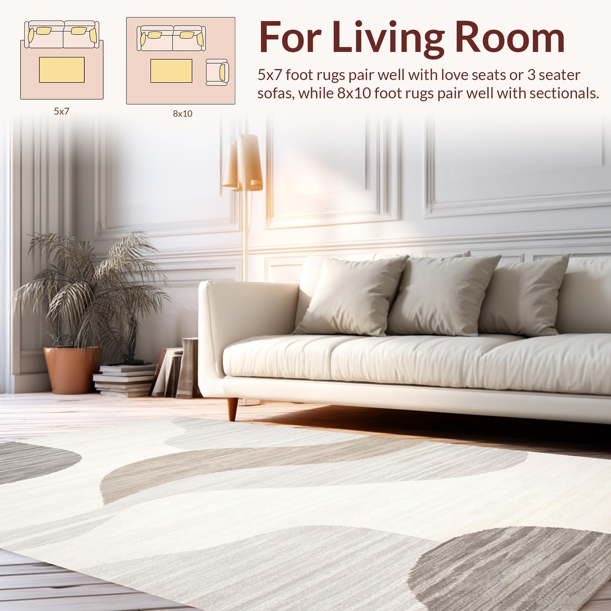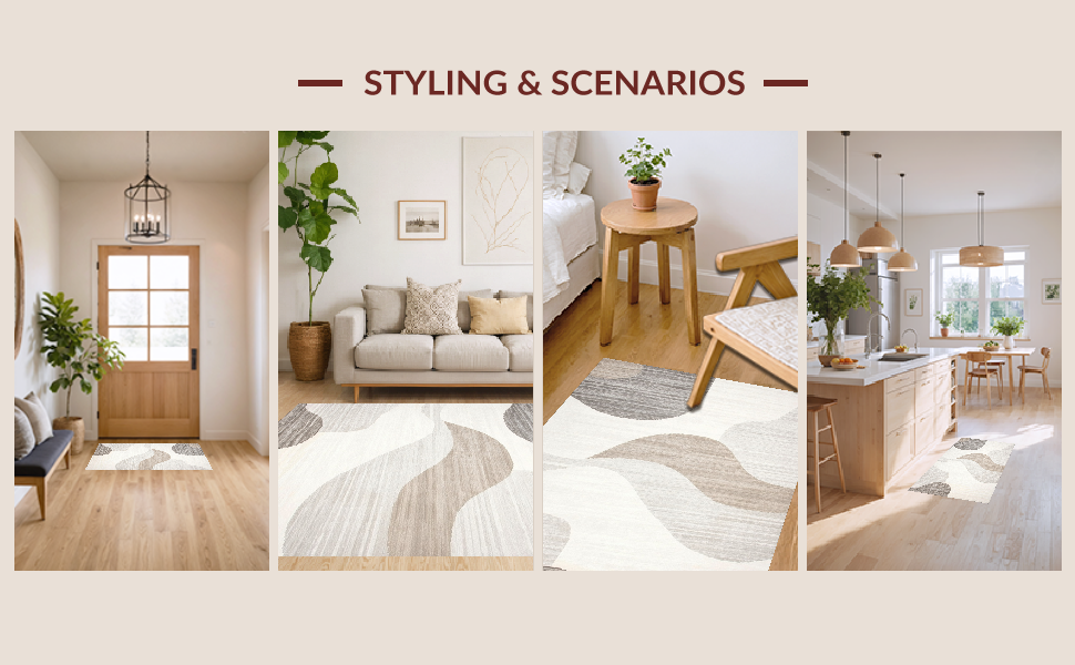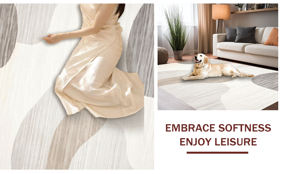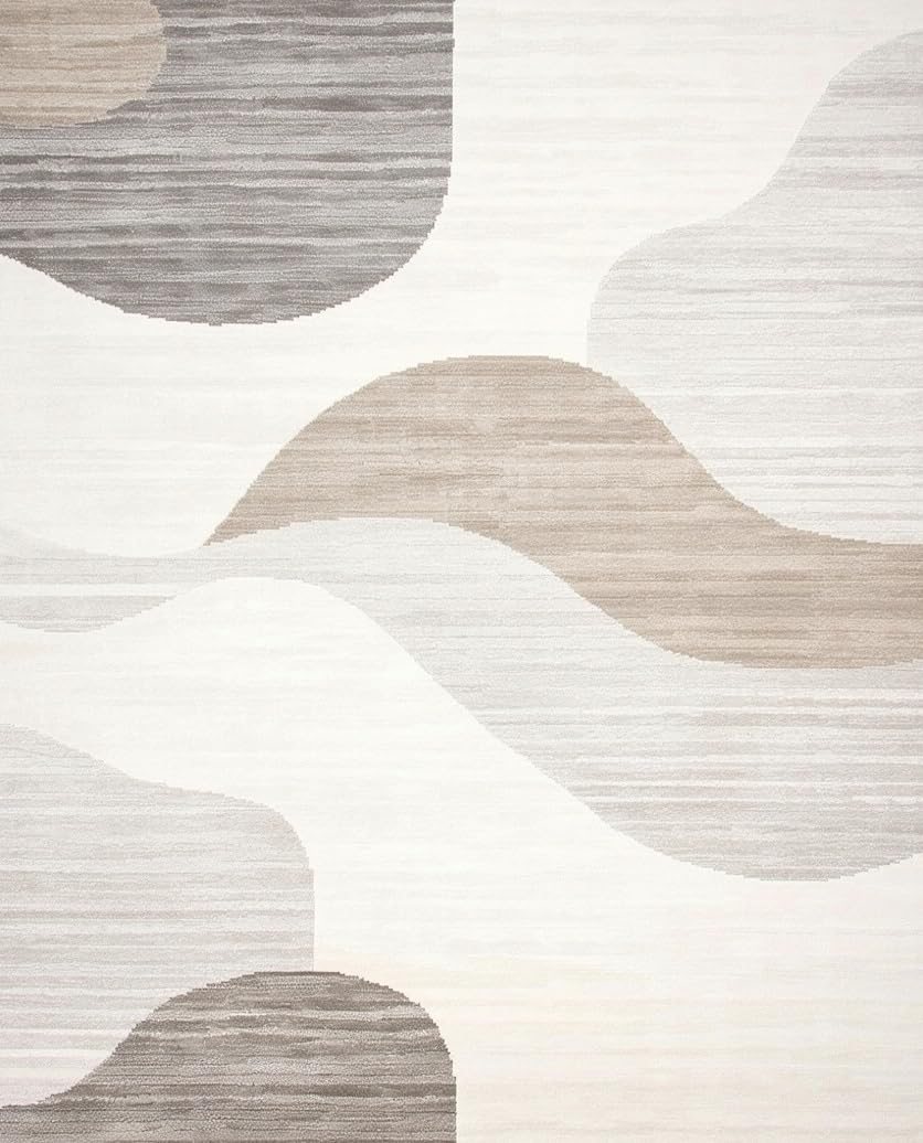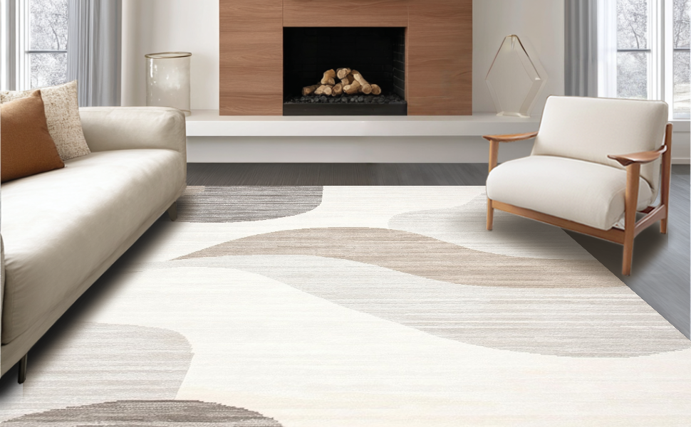 Ultra Soft Area Rug, Non Slip, Stain Resistant, Washable Area Rugs for Living Room, Bedroom, Playful Modern Fluid Patterns(Beige) Overview: