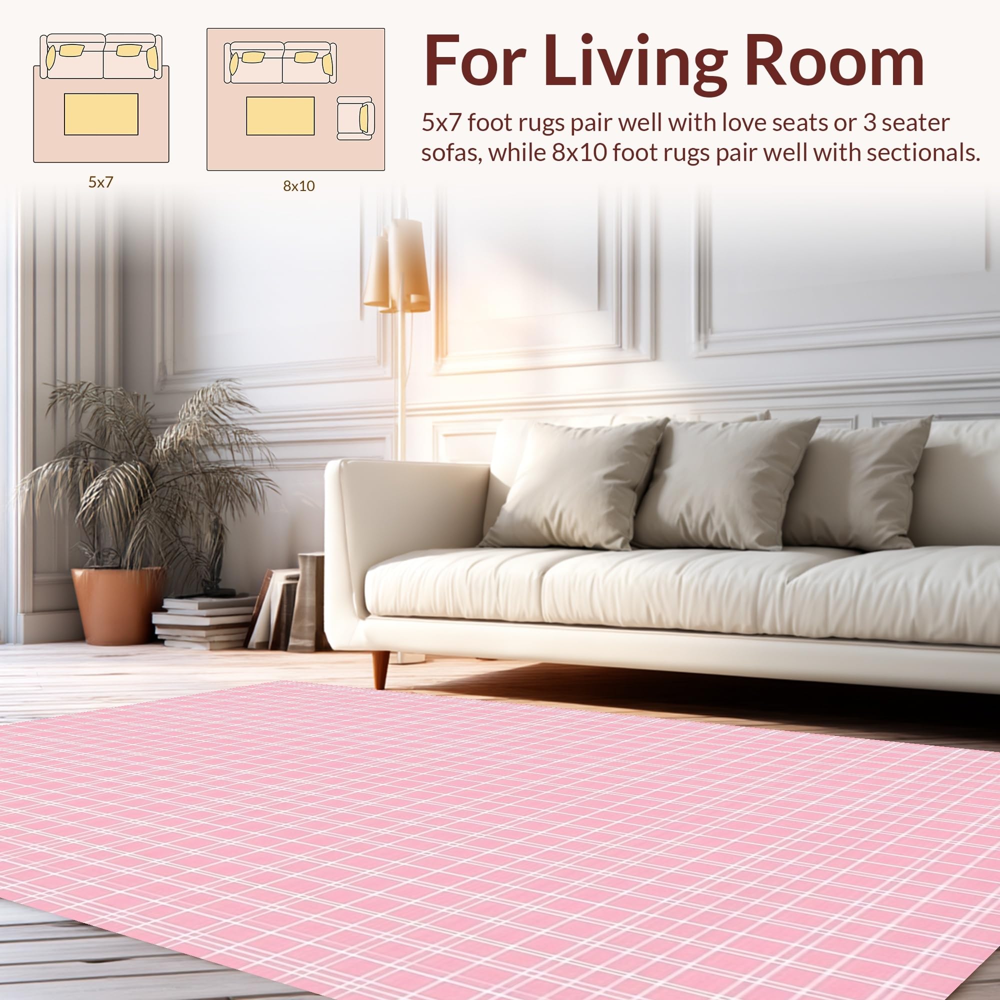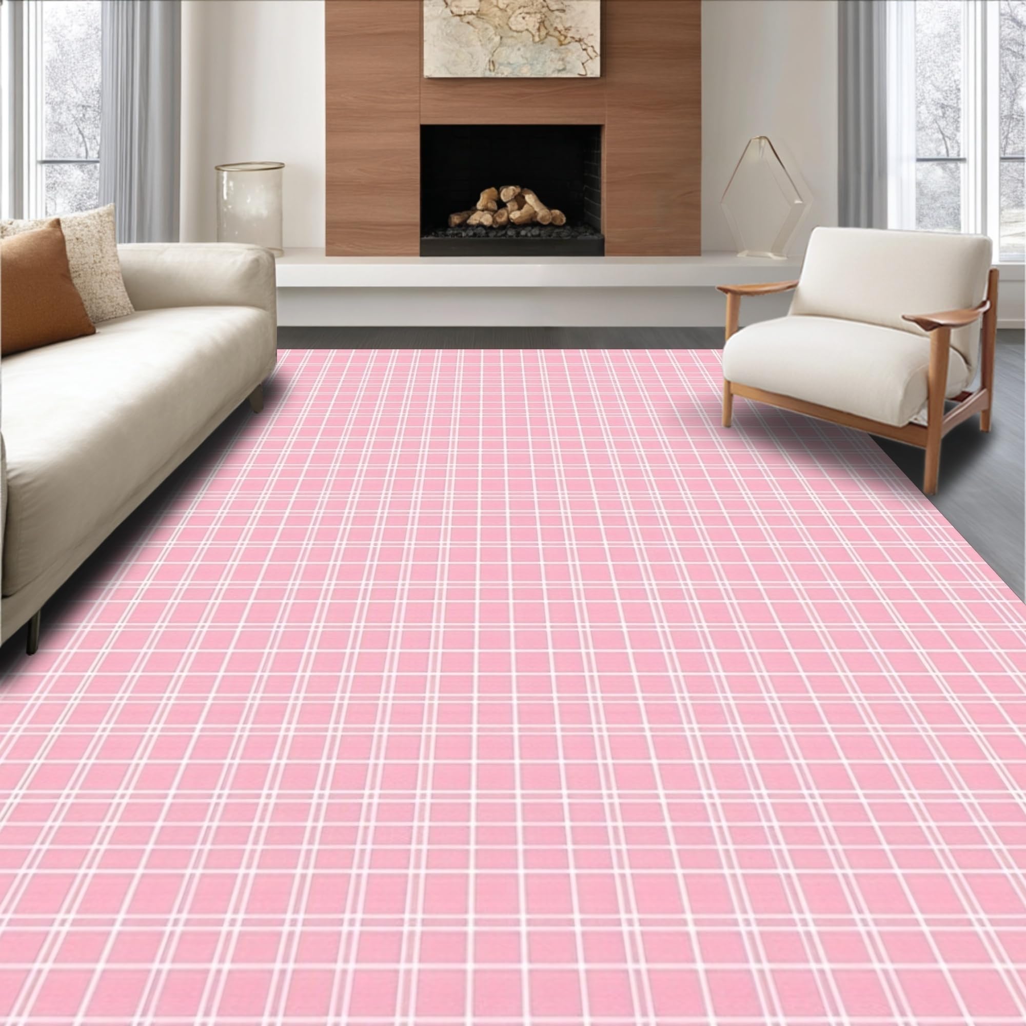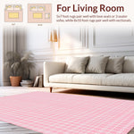 Ultra Soft Area Rug, Non Slip, Stain Resistant, Washable Area Rugs for Living Room, Bedroom, Playful Modern Shaggy Tiled Design(Pink) Overview: