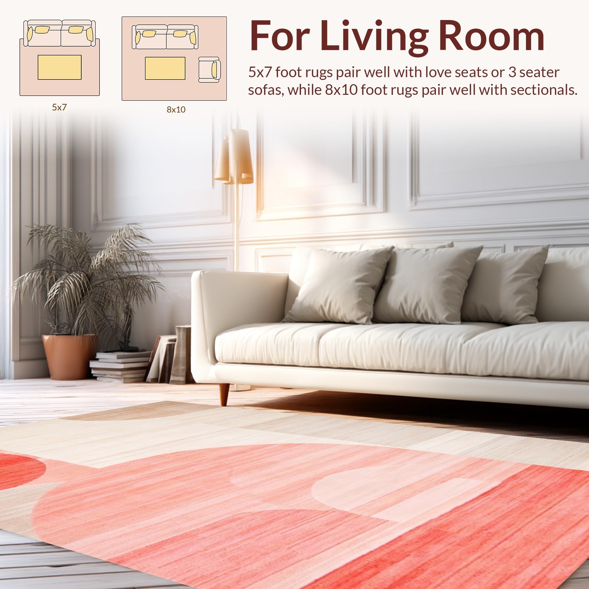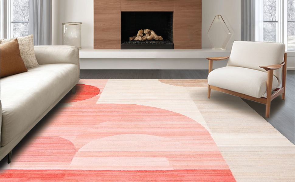 Ultra Soft Area Rug, Non Slip, Stain Resistant, Washable Area Rugs for Living Room, Bedroom, Playful Modern Symmetrical Elements(Beige) Overview: