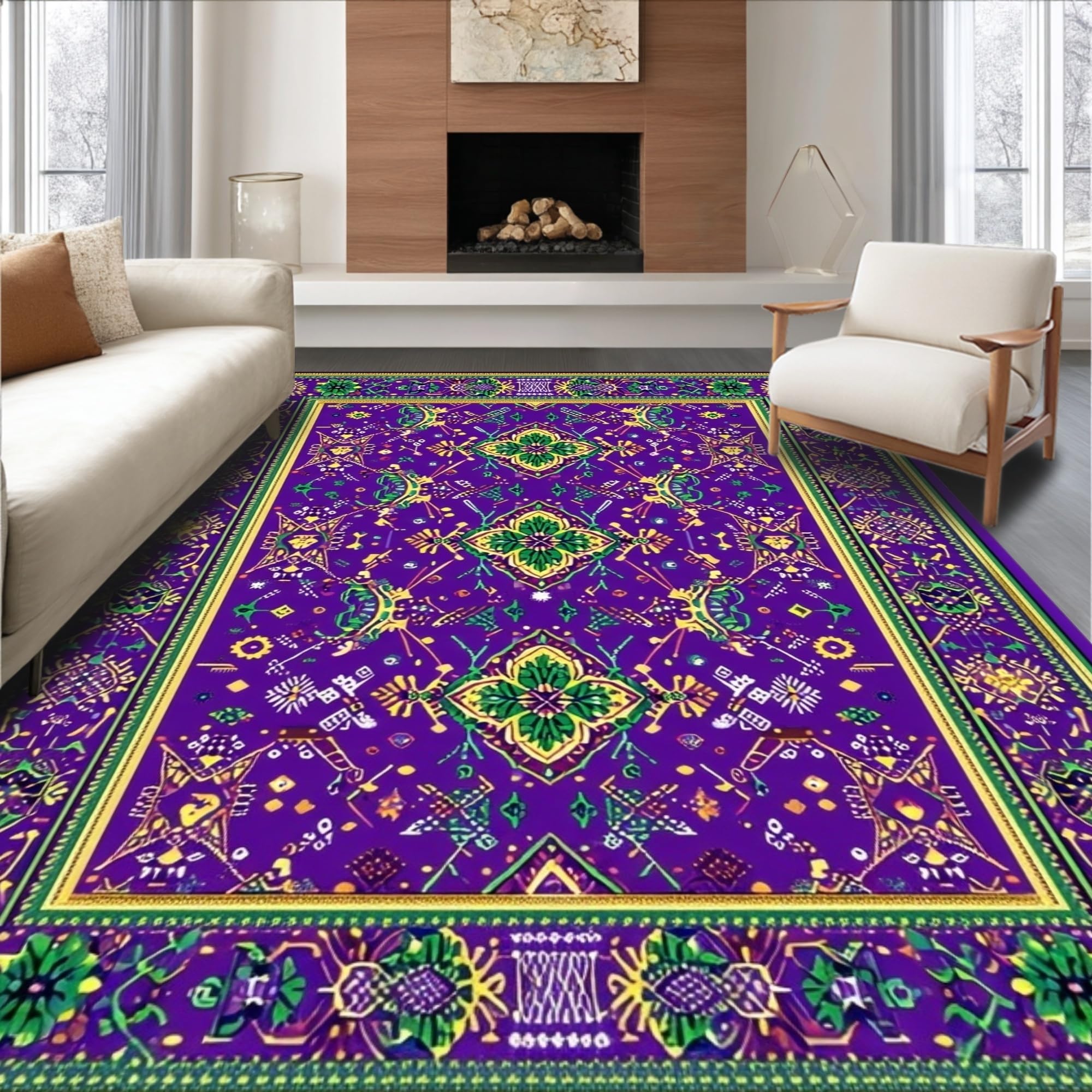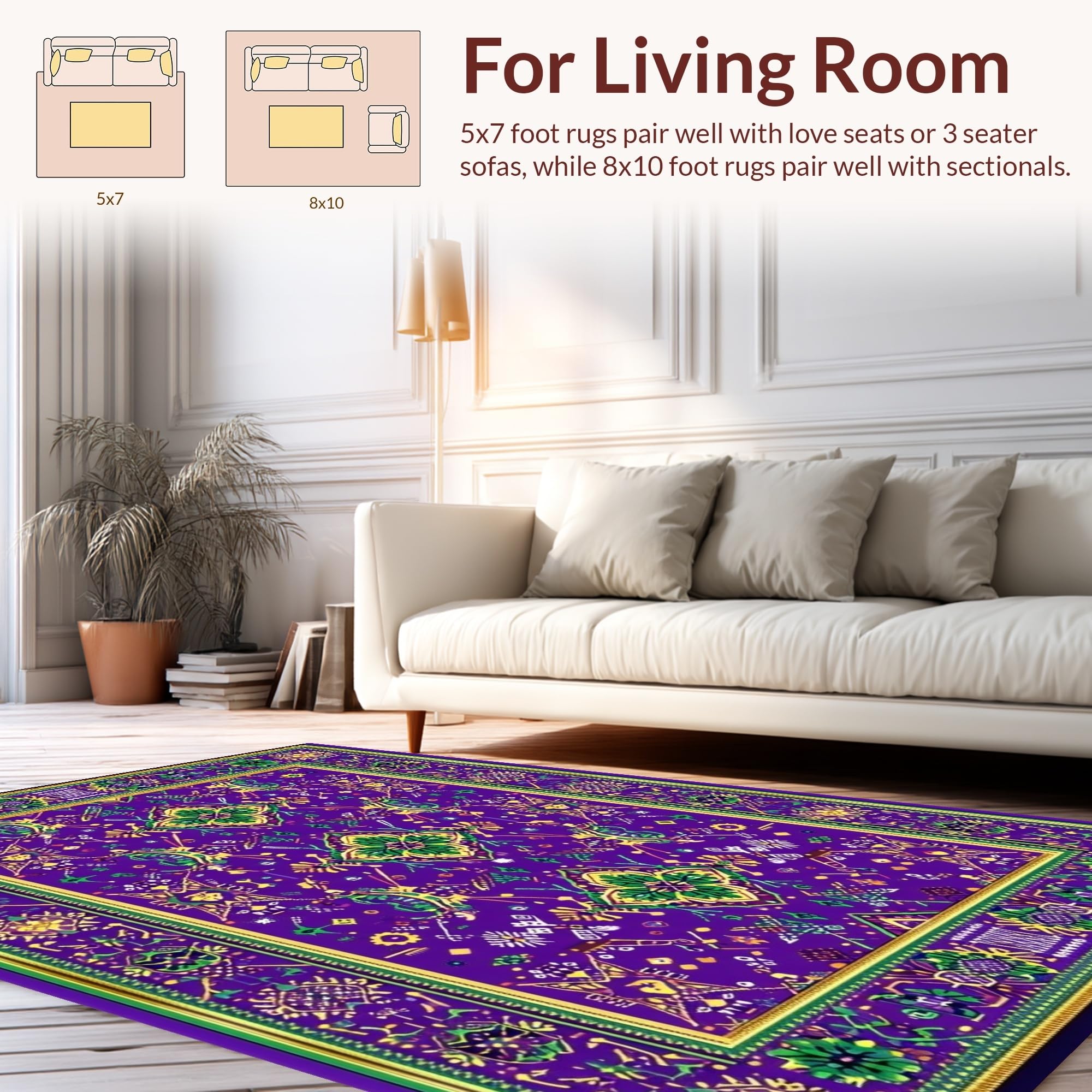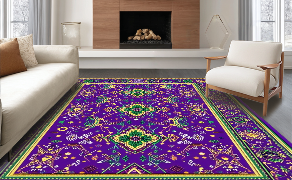 Ultra Soft Area Rug, Non Slip, Stain Resistant, Washable Area Rugs for Living Room, Bedroom, Playful Modern Trellis Composition(Purple) Overview: