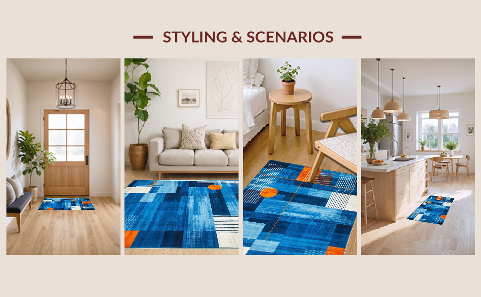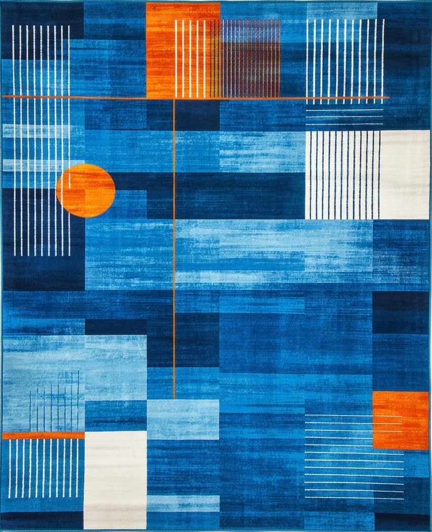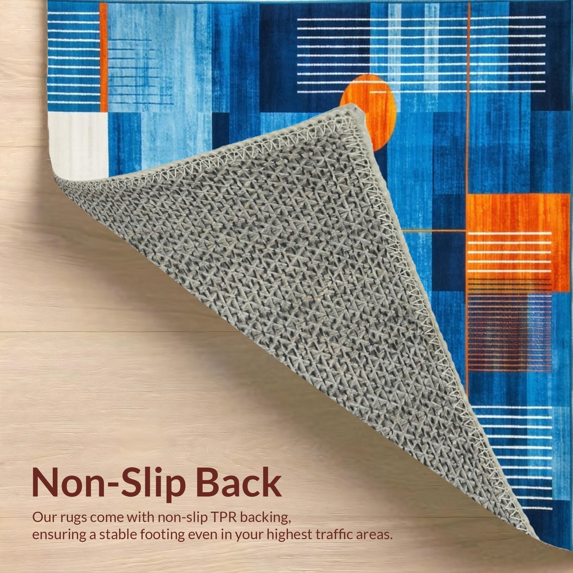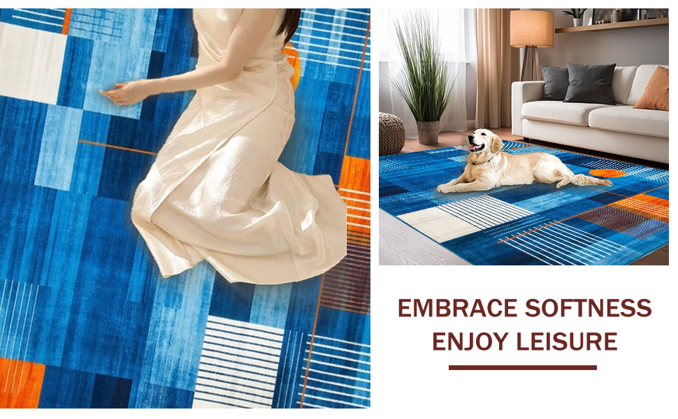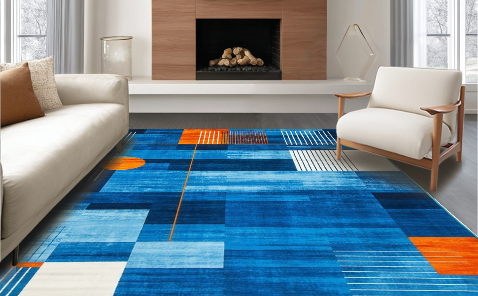 Ultra Soft Area Rug, Non Slip, Stain Resistant, Washable Area Rugs for Living Room, Bedroom, Playful Multi-Hued Organic Shapes(Blue) Overview:
