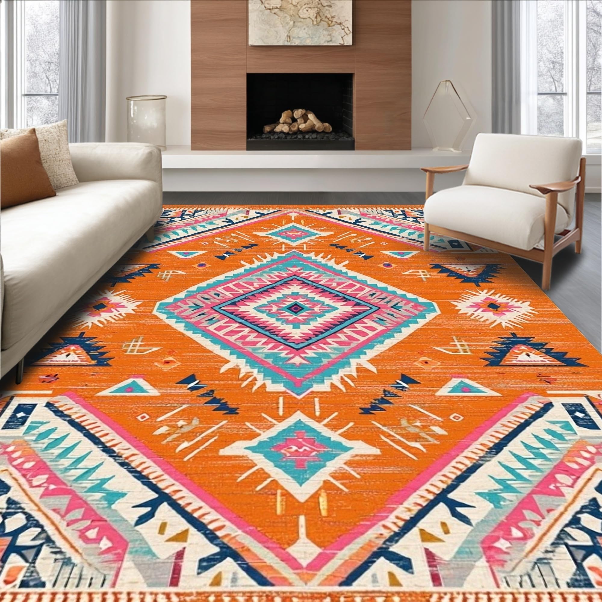 Ultra Soft Area Rug, Non Slip, Stain Resistant, Washable Area Rugs for Living Room, Bedroom, Playful Multicolor Abstract Pattern(Orange) Overview: