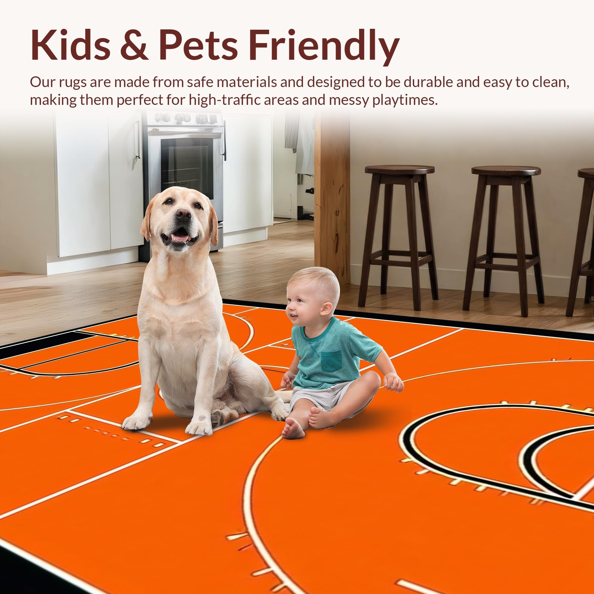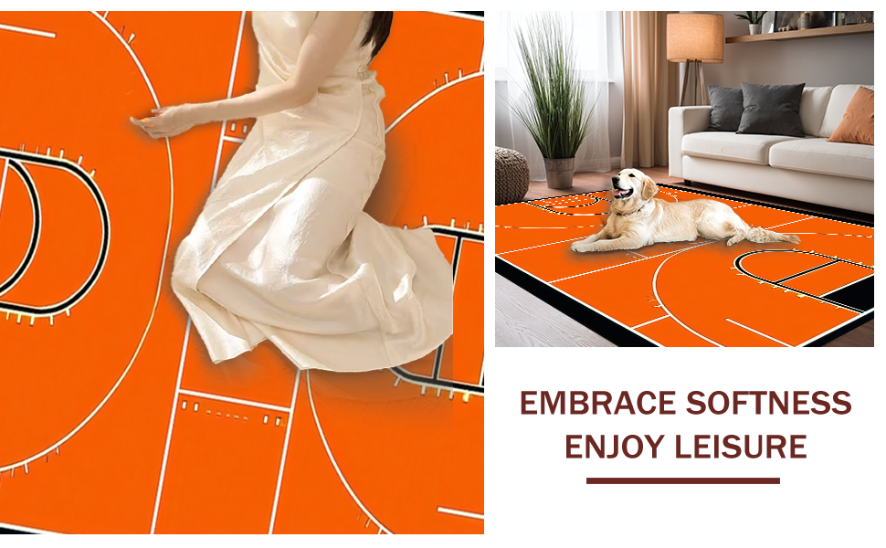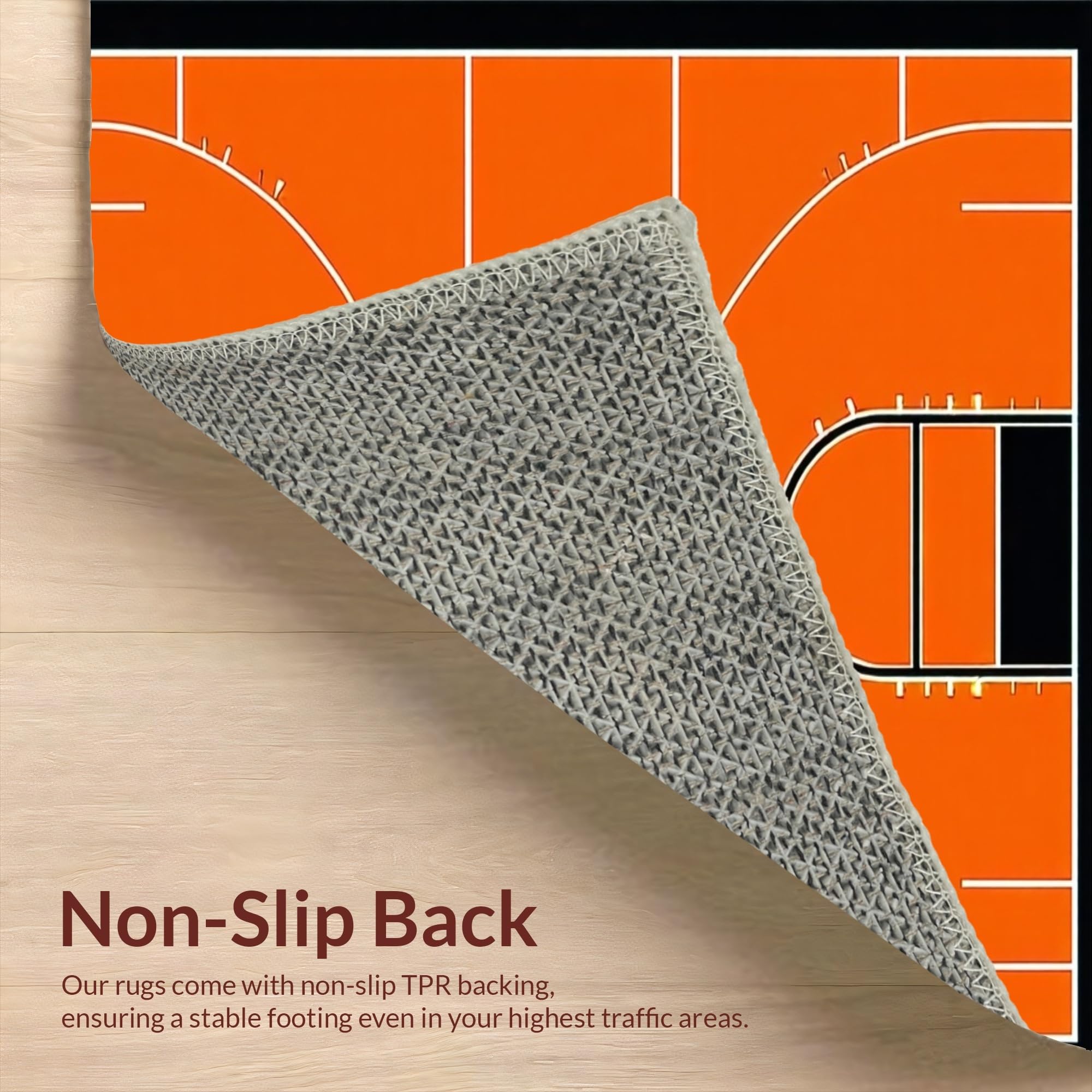 Ultra Soft Area Rug, Non Slip, Stain Resistant, Washable Area Rugs for Living Room, Bedroom, Playful Orange Graphic Design(Orange) Overview: