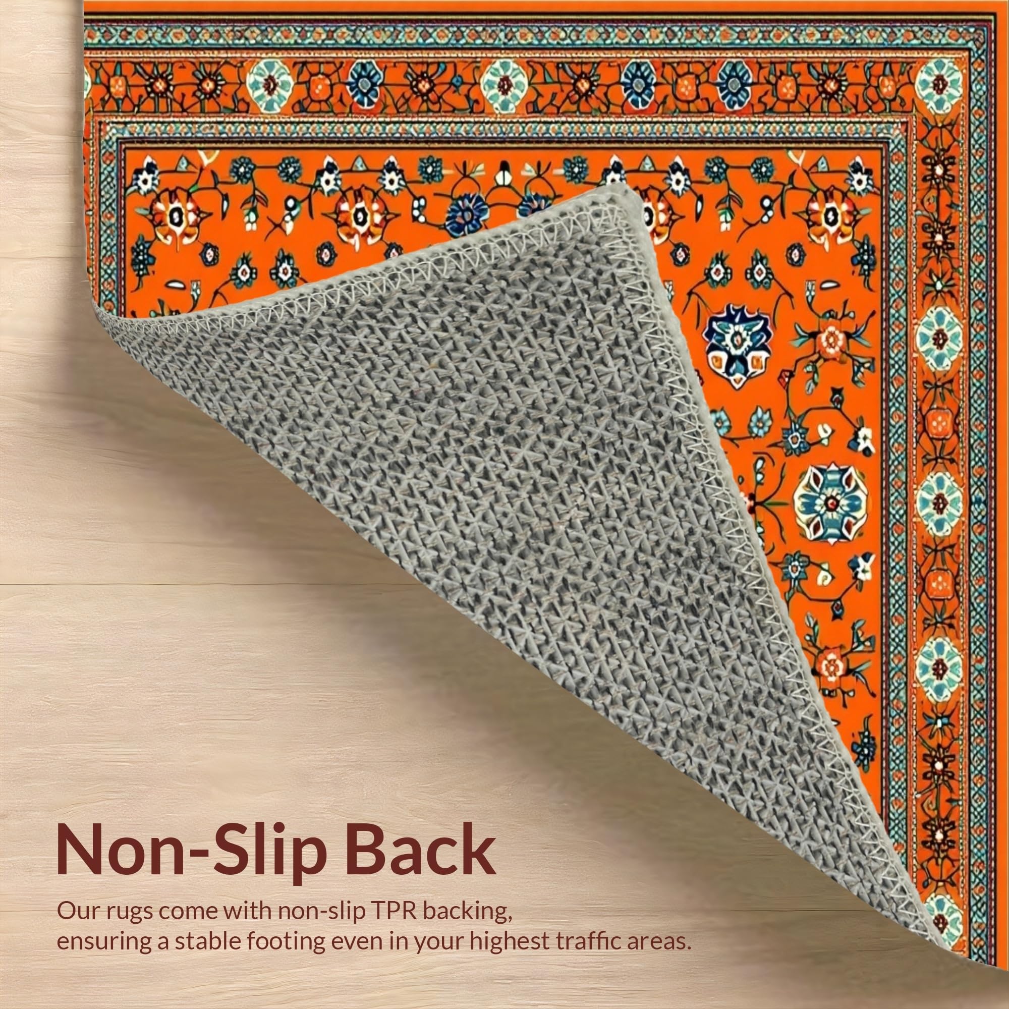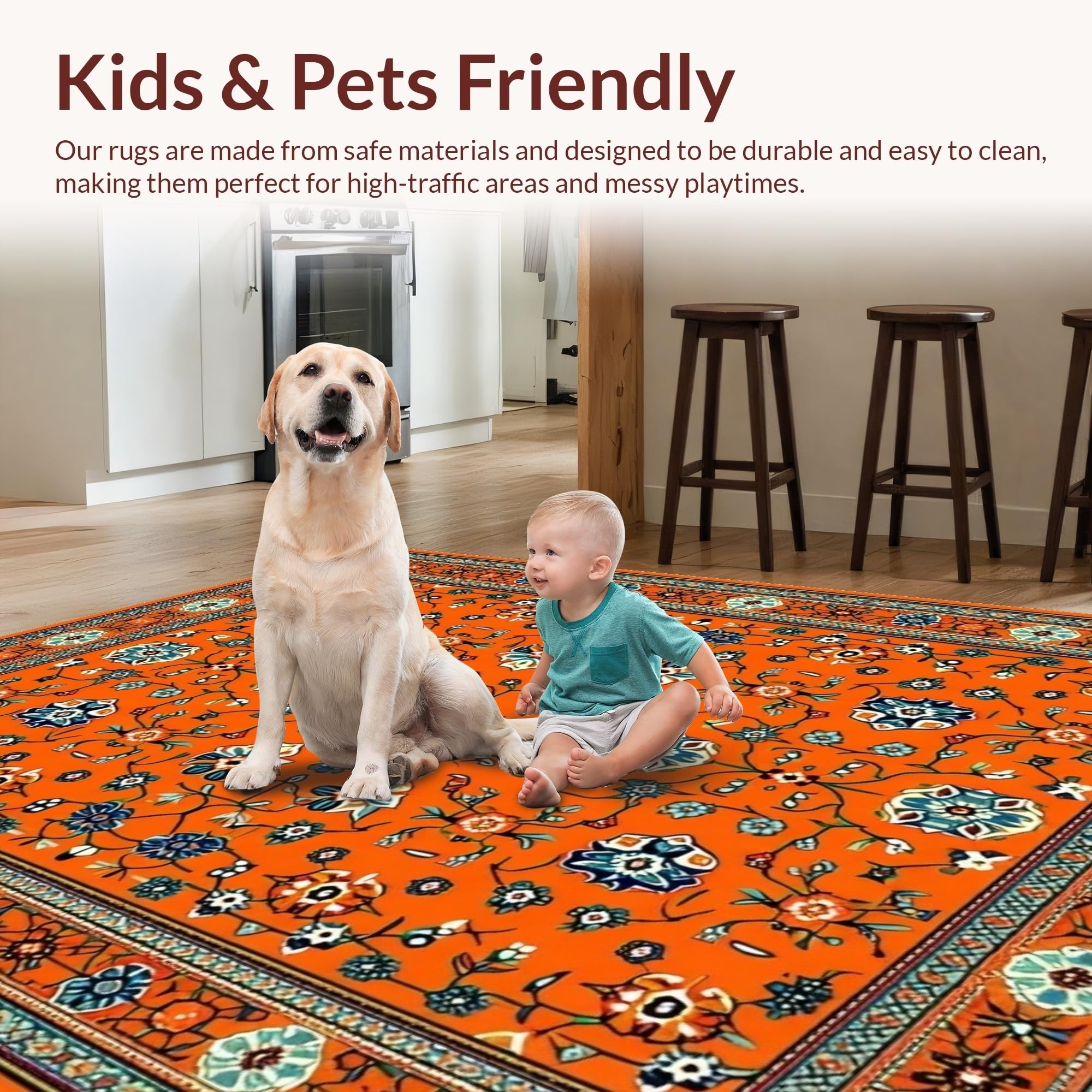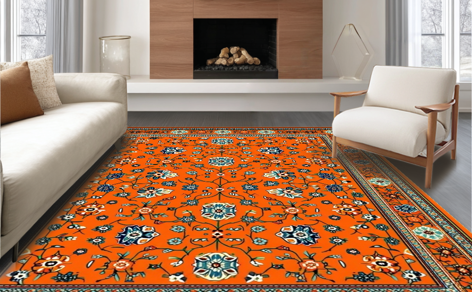 Ultra Soft Area Rug, Non Slip, Stain Resistant, Washable Area Rugs for Living Room, Bedroom, Playful Orange Tiled Motif(Orange) Overview: