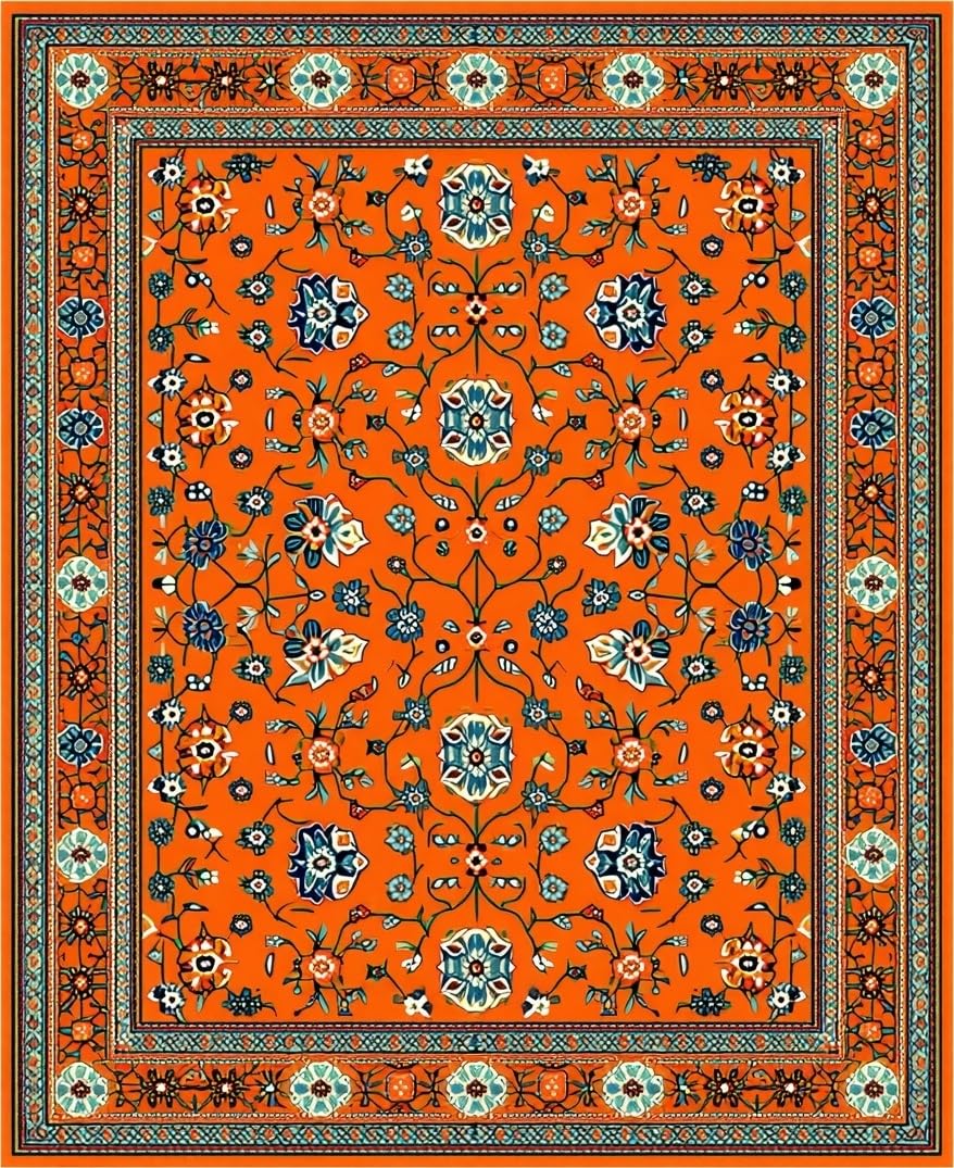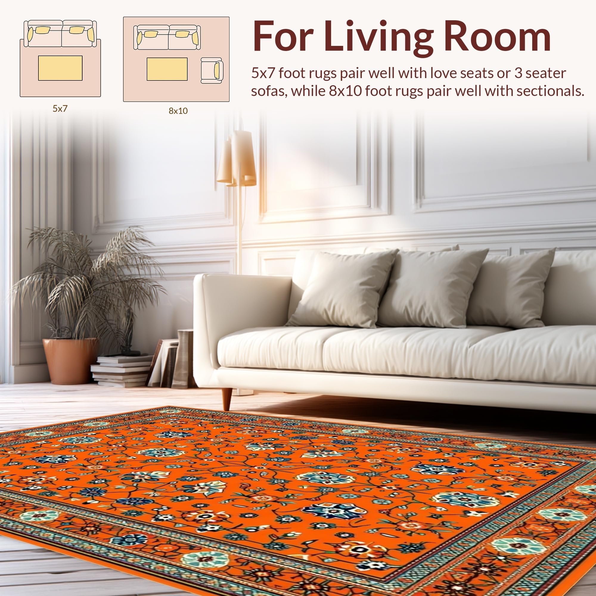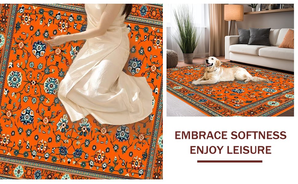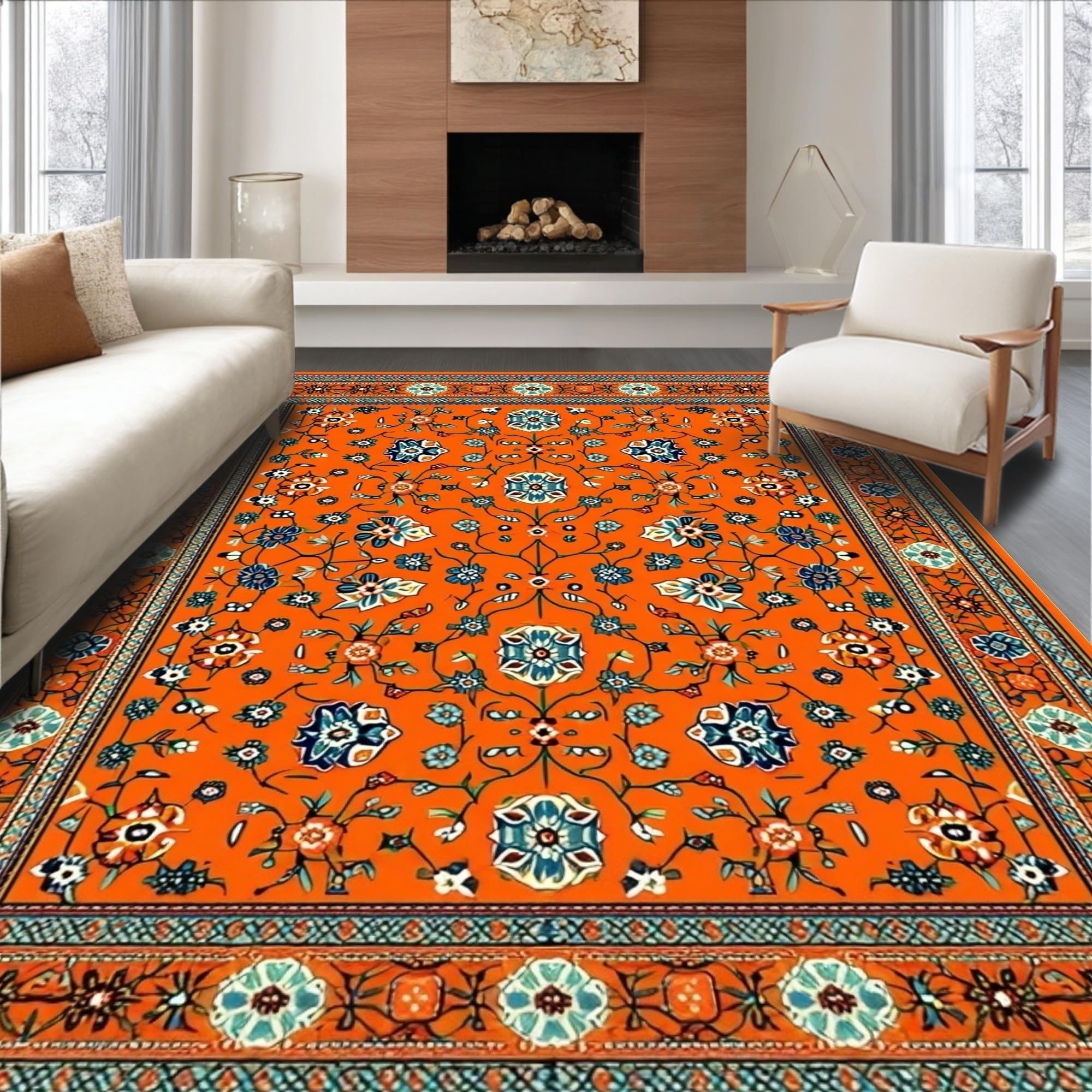 Ultra Soft Area Rug, Non Slip, Stain Resistant, Washable Area Rugs for Living Room, Bedroom, Playful Orange Tiled Motif(Orange) Overview:
