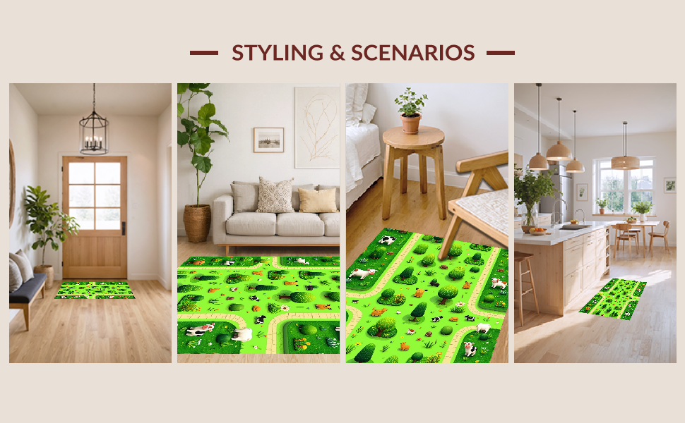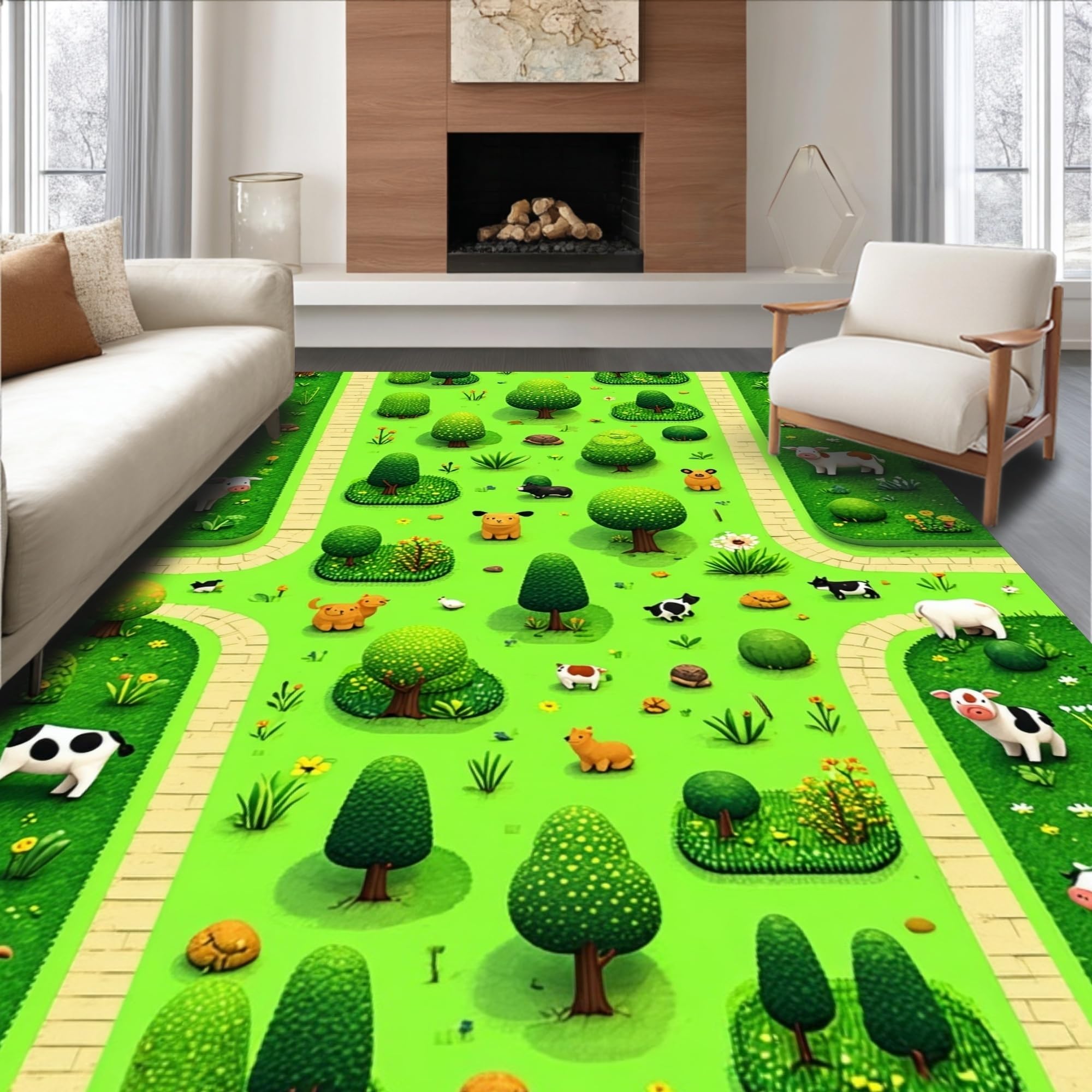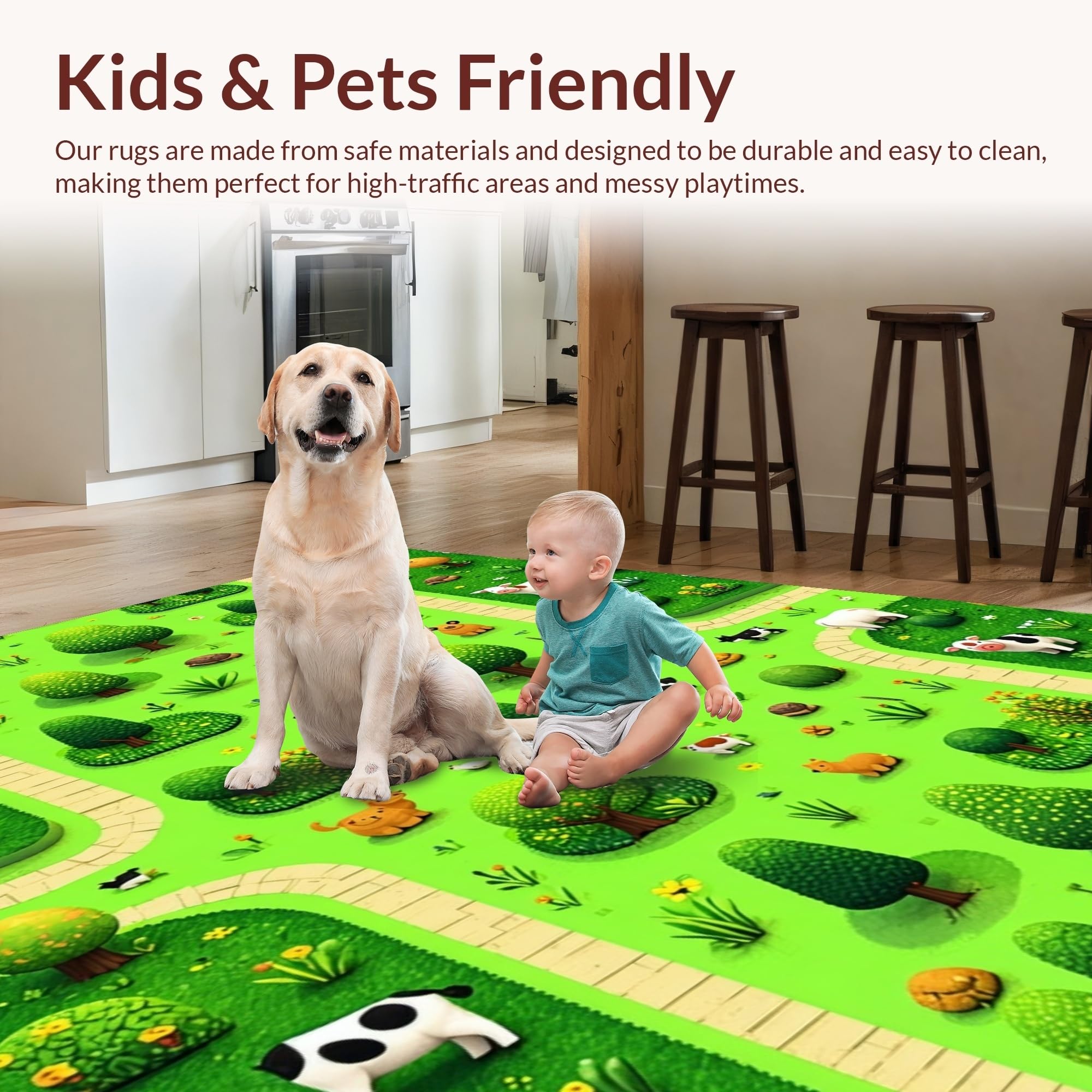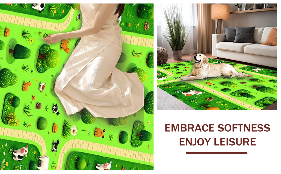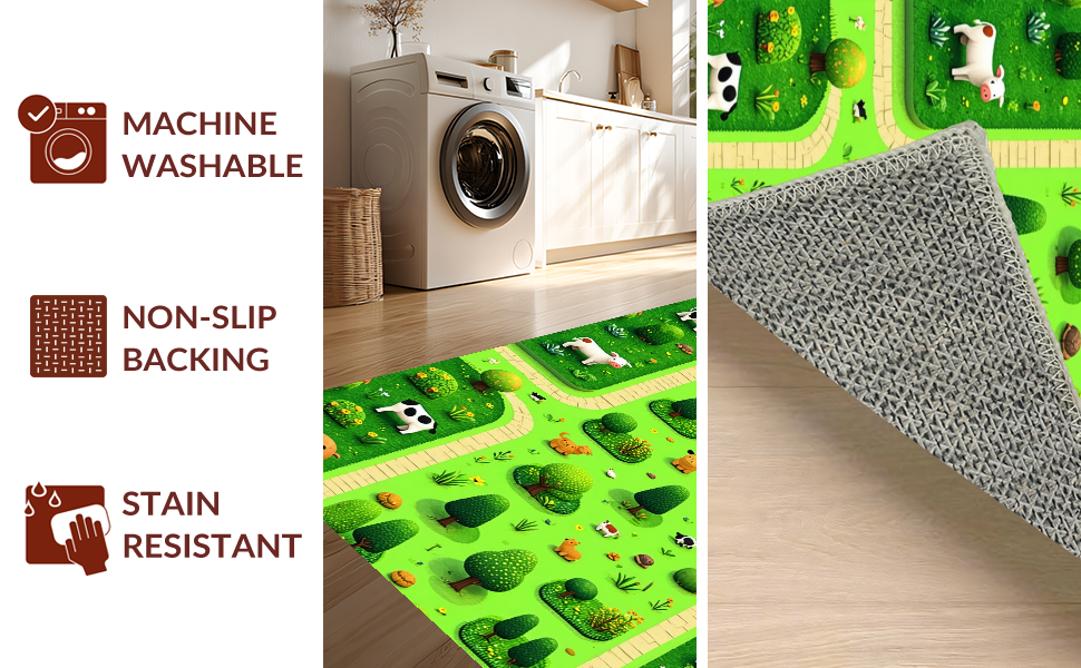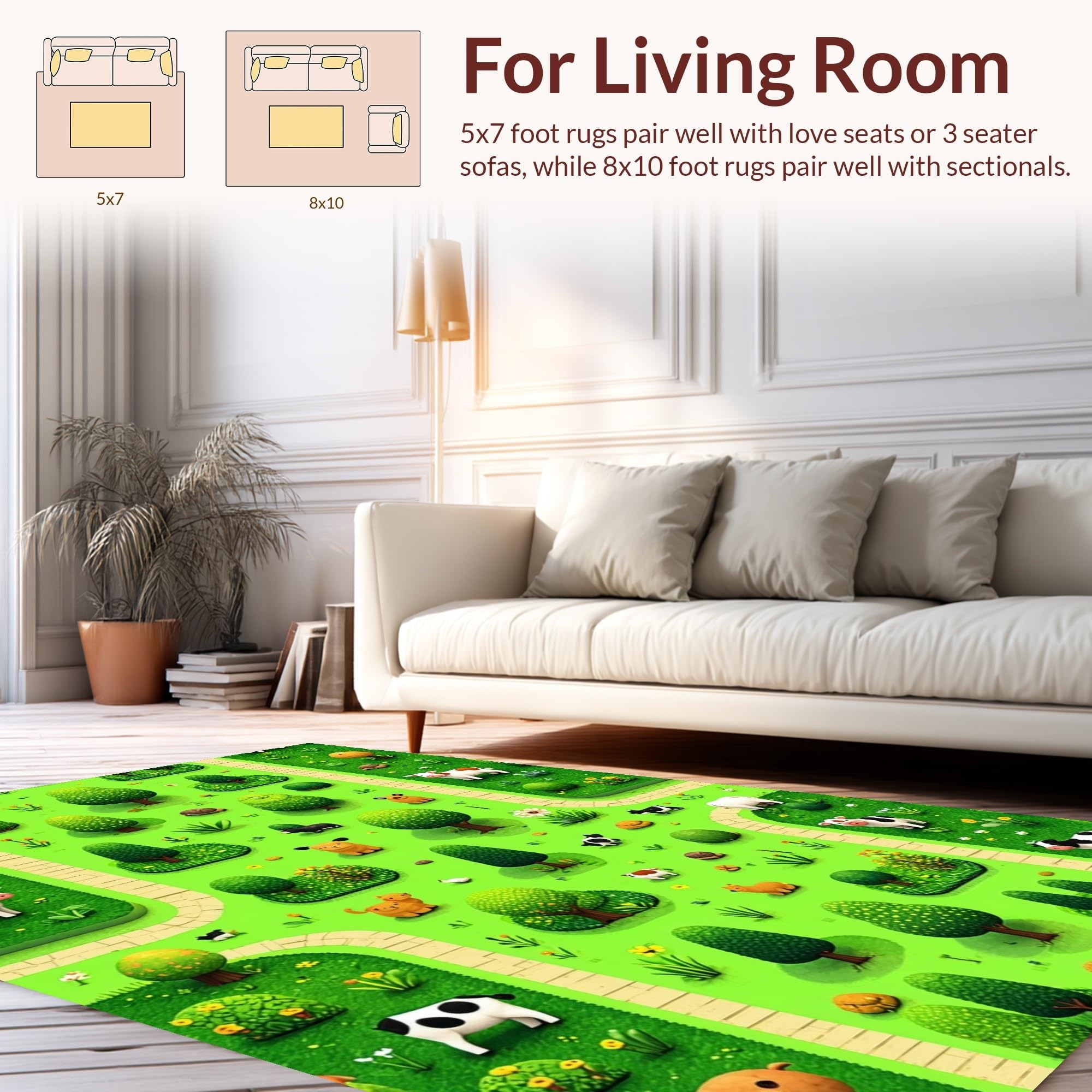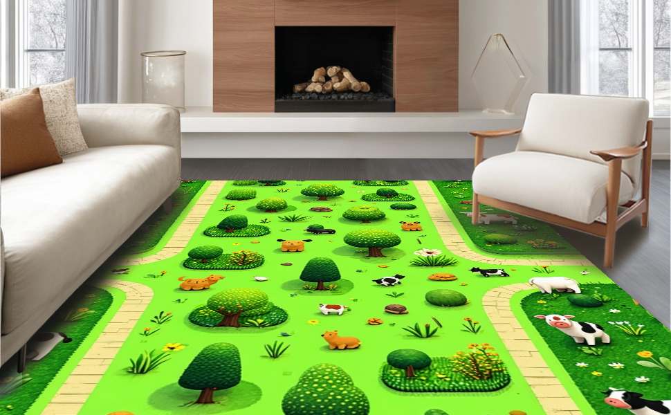 Ultra Soft Area Rug, Non Slip, Stain Resistant, Washable Area Rugs for Living Room, Bedroom, Playful Pastel Farmhouse Inspiration(Green) Overview:
