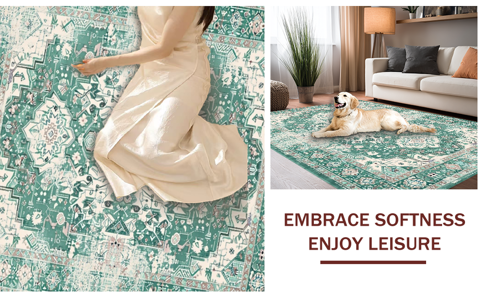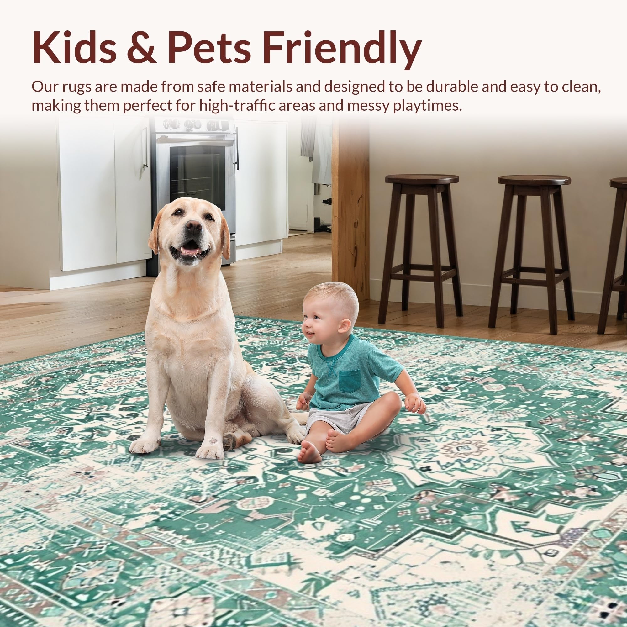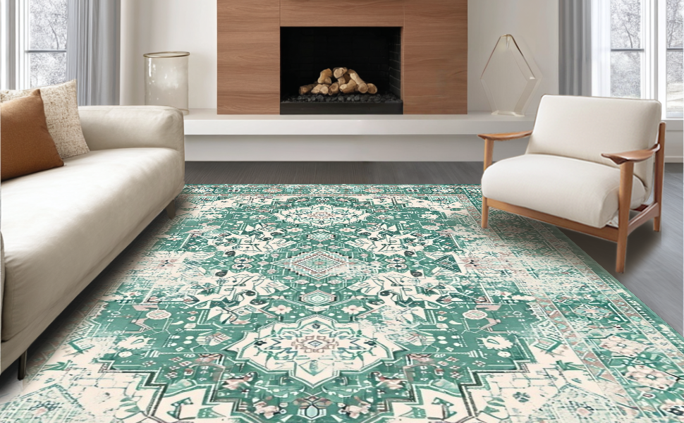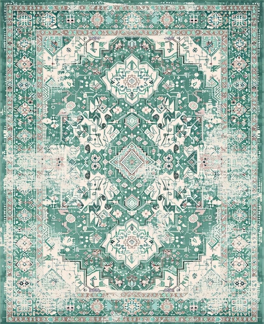 Ultra Soft Area Rug, Non Slip, Stain Resistant, Washable Area Rugs for Living Room, Bedroom, Playful Pastel Lattice Composition(Green) Overview:
