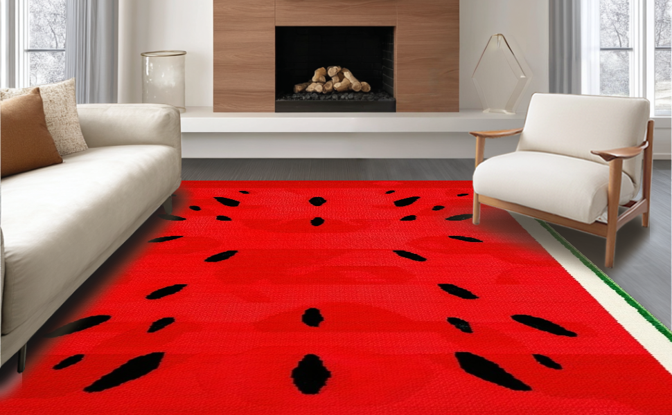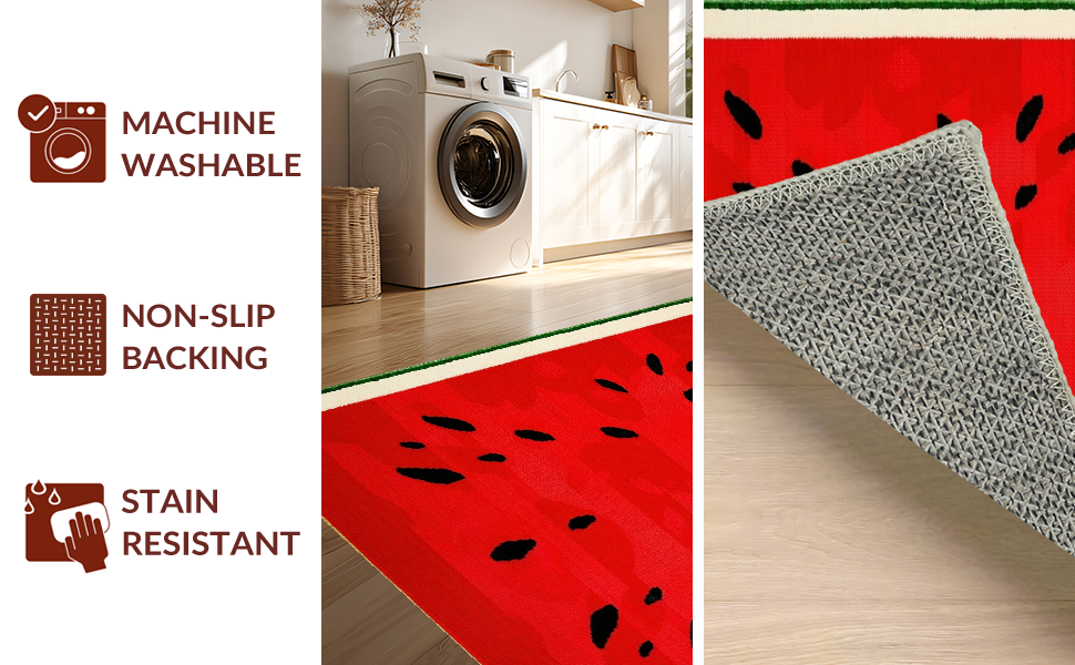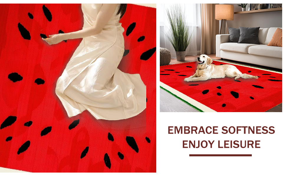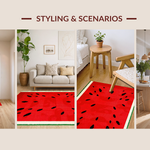 Ultra Soft Area Rug, Non Slip, Stain Resistant, Washable Area Rugs for Living Room, Bedroom, Playful Retro Citrus Motif(Red) Overview: