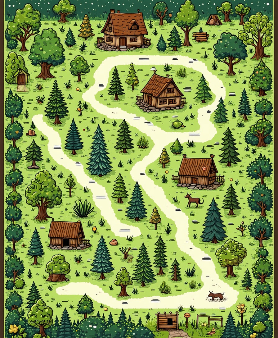 Playful Retro Forest Map Design(Green)