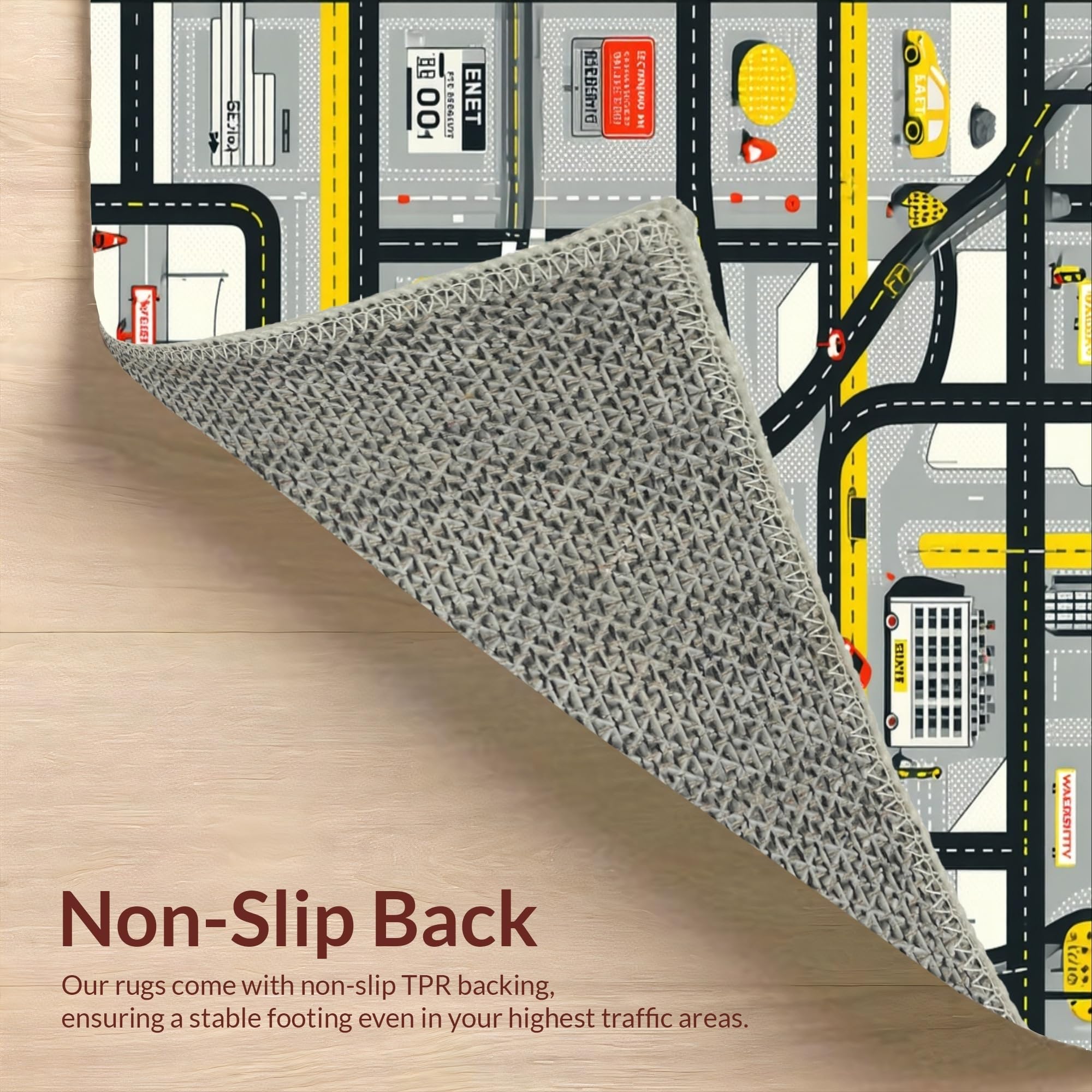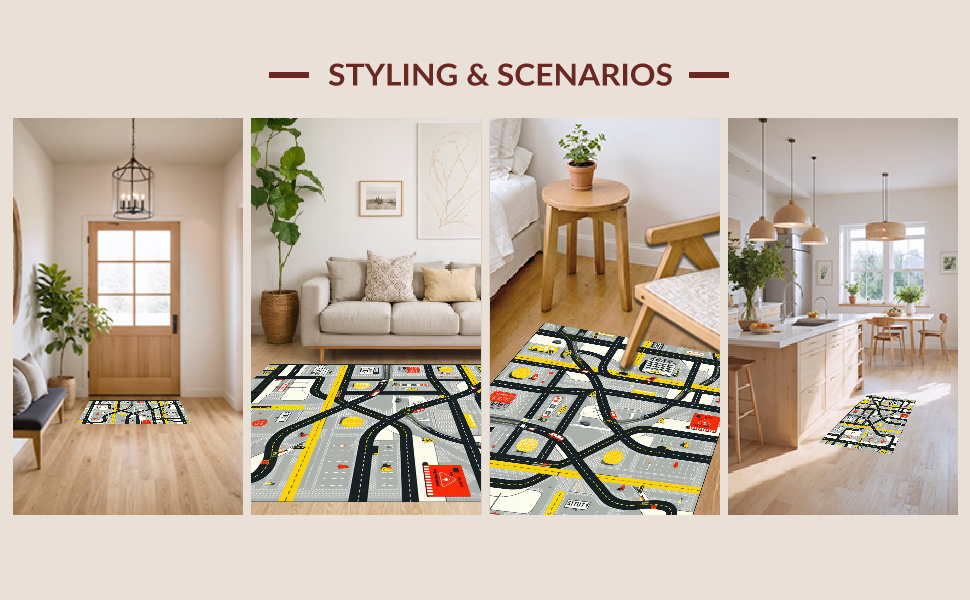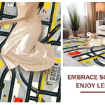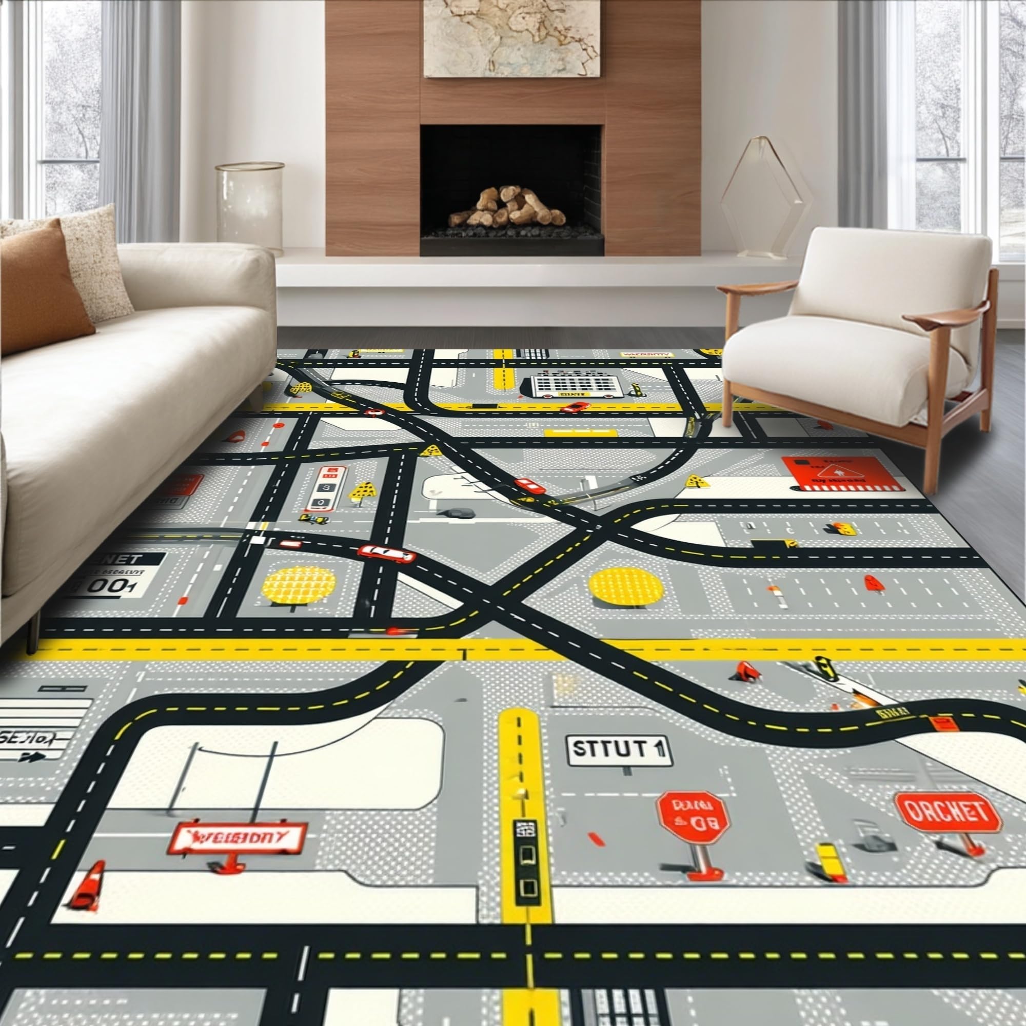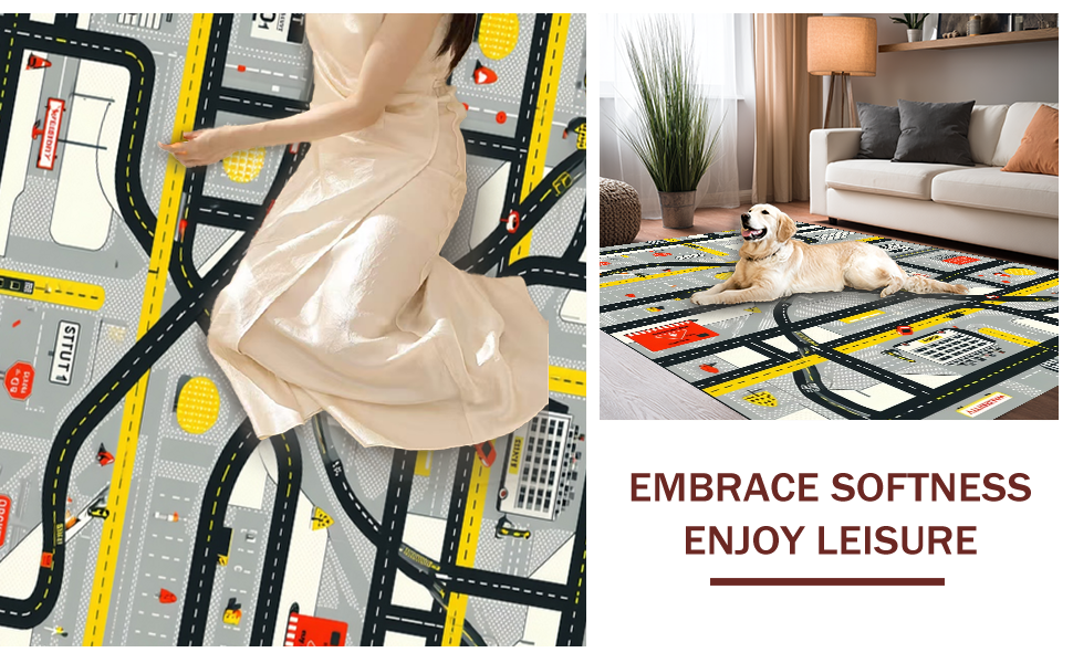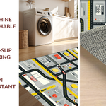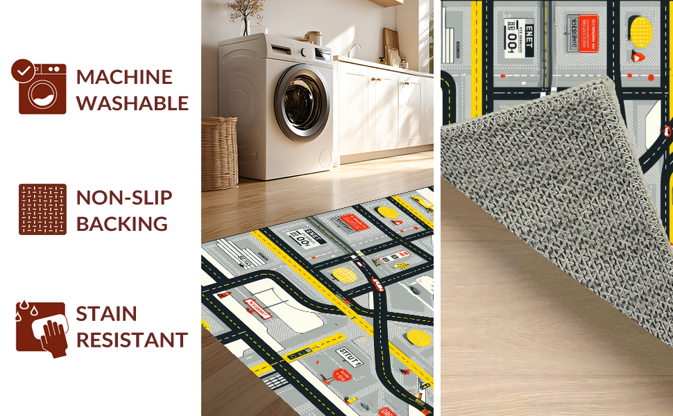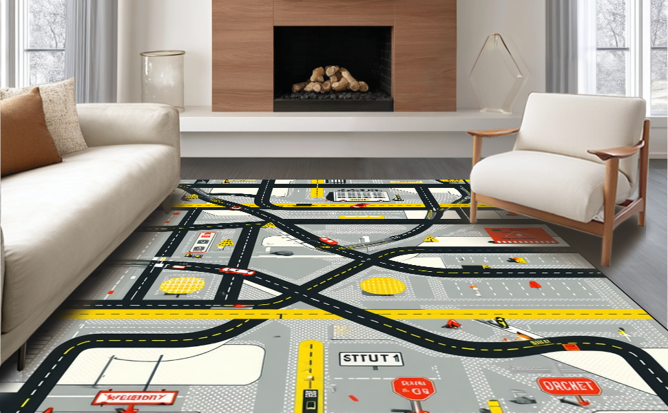 Ultra Soft Area Rug, Non Slip, Stain Resistant, Washable Area Rugs for Living Room, Bedroom, Playful Roadway Adventure Design(Black) Overview: