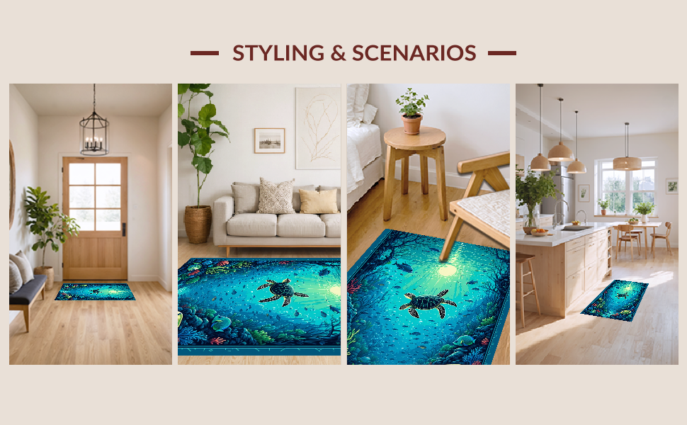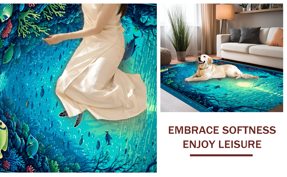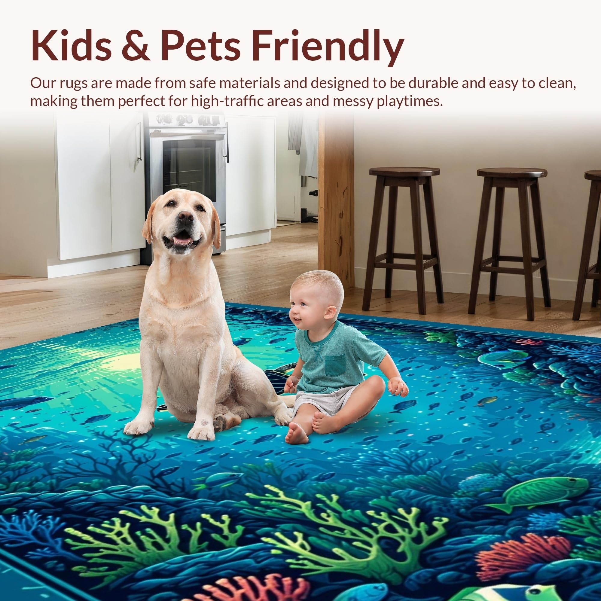 Ultra Soft Area Rug, Non Slip, Stain Resistant, Washable Area Rugs for Living Room, Bedroom, Playful Sea Creature Pattern(Blue) Overview: